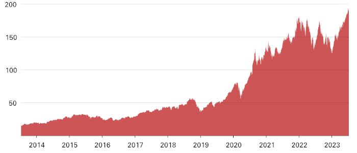 The following graph sets forth the historical performance of AAPL based on the daily historical closing values from July 11, 2013 through July 11, 2023. We obtained the closing values below from the Bloomberg Professional® service. We have not undertaken any independent review of, or made any due diligence inquiry with respect to, the information obtained from the Bloomberg Professional® service.![]() |