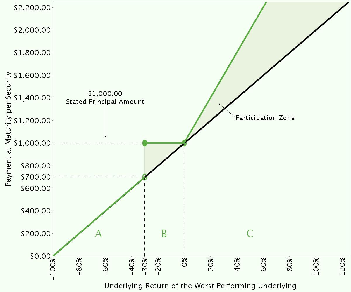 $1,000 + ($1,000 × the underlying return of the worst performer on the final valuation date)