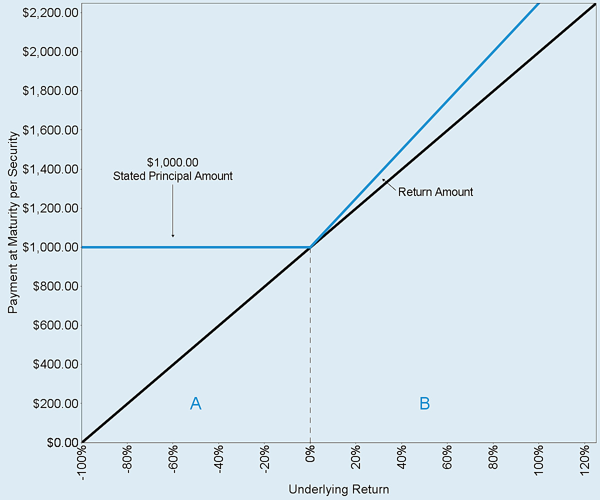 You will receive at maturity for each security you then hold, the stated principal amount plus the return amount, which will be either zero or positive |