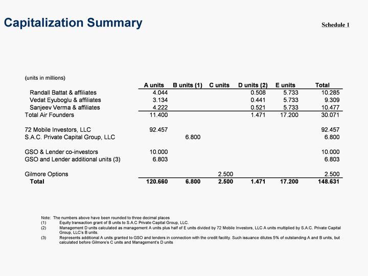 The femtocell business will be separated into a separate subsidiary following closing (Femtocell). New Femtocell option plan will be established post-merger, reserving 5%-7% of the fully diluted common stock of Femtocell for new option grants following the merger. The CEO of Femtocell will determine the allocation of option grants under the plan, subject to the approval of the Femtocell board of directors; provided that Femtocell will not issue more than 3% of the fully diluted common stock of Femtocell under the option plan without the prior approval of SAC, on the one hand, and the Executive, Vedat and Sanjeev, on the other hand. The Founders will be eligible to receive option grants under the Femtocell option plan, but only if they are providing significant services to Femtocell. | ||
