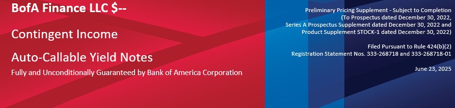 All payments on the Notes are subject to the credit risk of BofA Finance LLC (“BofA Finance” or the “Issuer”), as issuer of the Notes, and Bank of America Corporation (“BAC” or the “Guarantor”), as guarantor of the Notes.