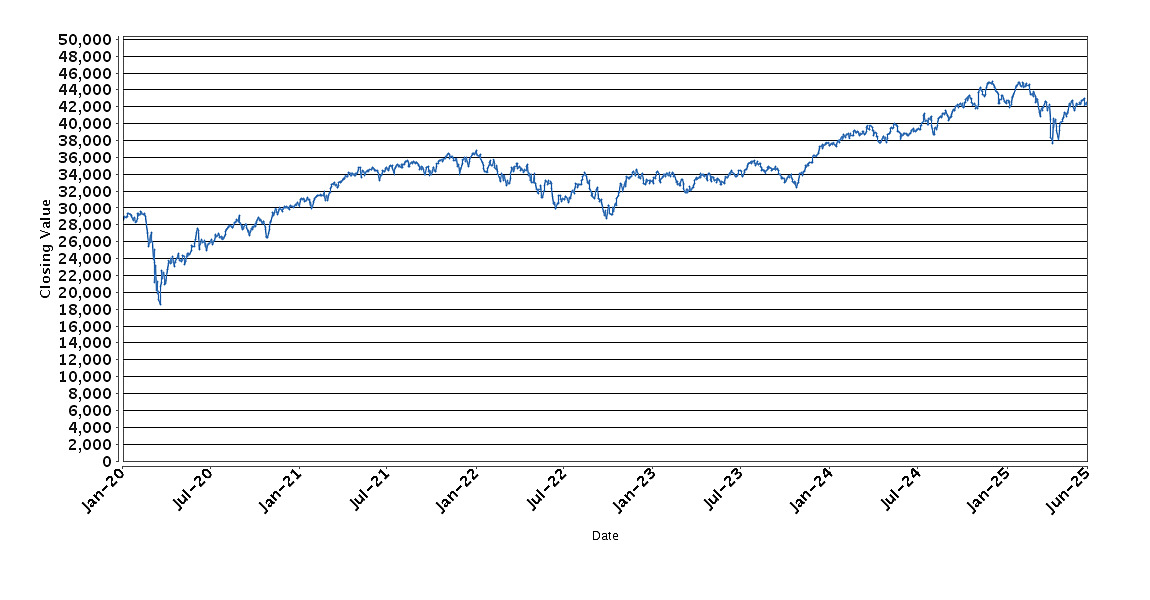 The graph below sets forth the historical performance of the INDU Index based on the daily Closing Value from January 6, 2020 through June 18, 2025. We obtained the Closing Values shown in the graph below from Bloomberg Professional® service (“Bloomberg”). We have not independently verified the accuracy or completeness of the information obtained from Bloomberg.