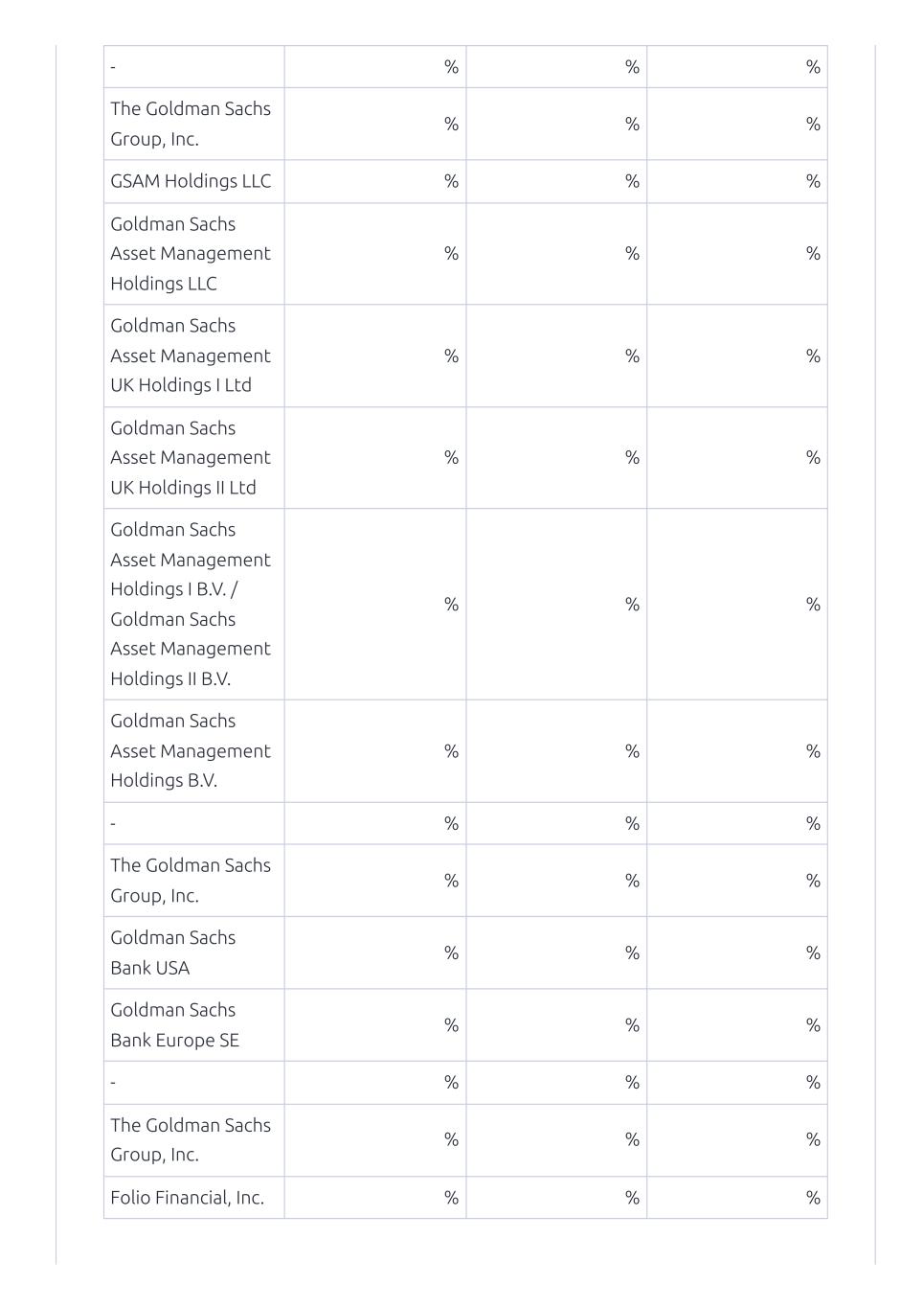 - % % % The Goldman Sachs Group, Inc. % % % GSAM Holdings LLC % % % Goldman Sachs Asset Management Holdings LLC % % % Goldman Sachs Asset Management UK Holdings I Ltd % % % Goldman Sachs Asset Management UK Holdings II Ltd % % % Goldman Sachs Asset Management Holdings I B.V. / Goldman Sachs Asset Management Holdings II B.V. % % % Goldman Sachs Asset Management Holdings B.V. % % % - % % % The Goldman Sachs Group, Inc. % % % Goldman Sachs Bank USA % % % Goldman Sachs Bank Europe SE % % % - % % % The Goldman Sachs Group, Inc. % % % Folio Financial, Inc. % % %