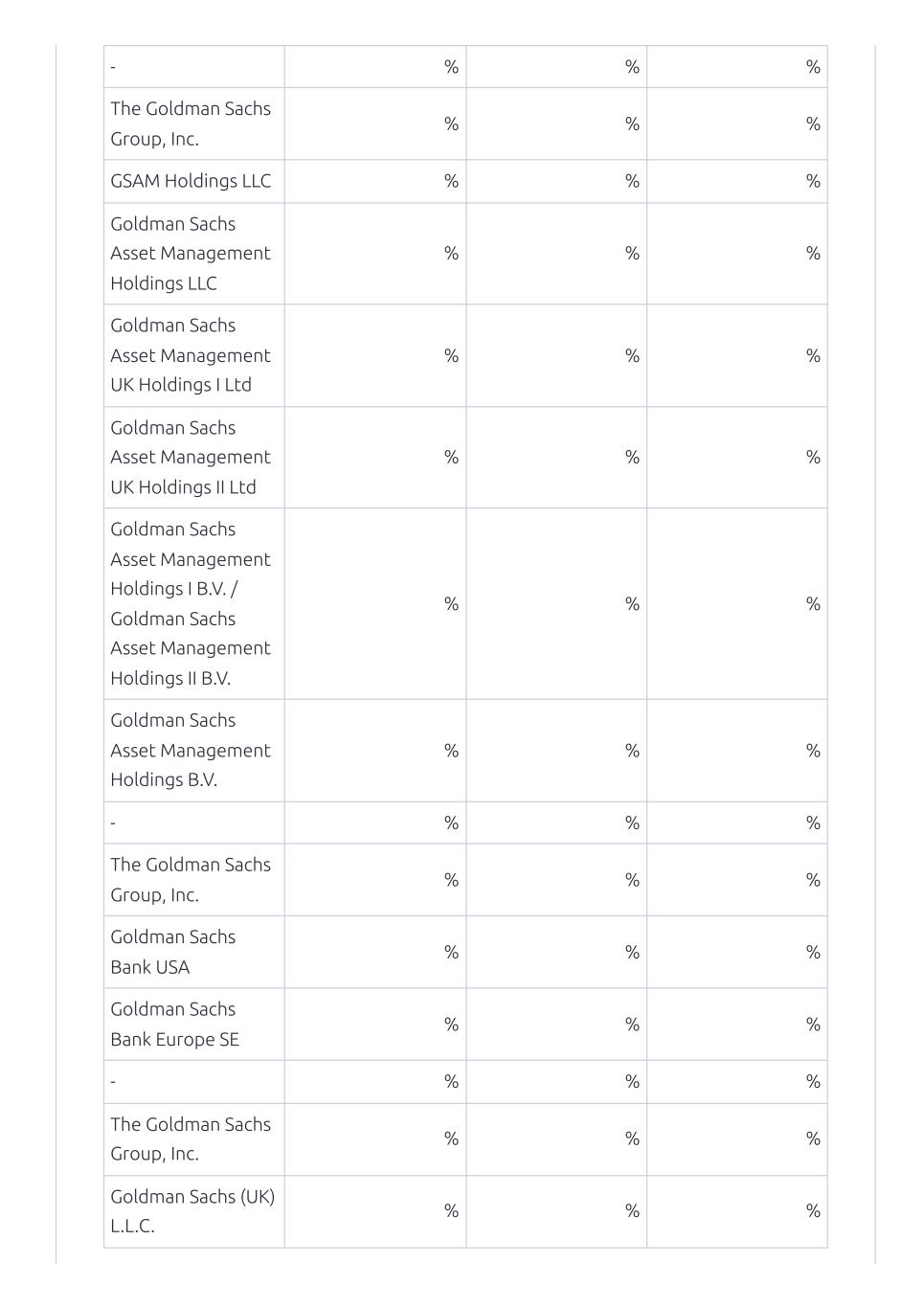 - % % % The Goldman Sachs Group, Inc. % % % GSAM Holdings LLC % % % Goldman Sachs Asset Management Holdings LLC % % % Goldman Sachs Asset Management UK Holdings I Ltd % % % Goldman Sachs Asset Management UK Holdings II Ltd % % % Goldman Sachs Asset Management Holdings I B.V. / Goldman Sachs Asset Management Holdings II B.V. % % % Goldman Sachs Asset Management Holdings B.V. % % % - % % % The Goldman Sachs Group, Inc. % % % Goldman Sachs Bank USA % % % Goldman Sachs Bank Europe SE % % % - % % % The Goldman Sachs Group, Inc. % % % Goldman Sachs (UK) L.L.C. % % %