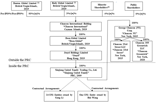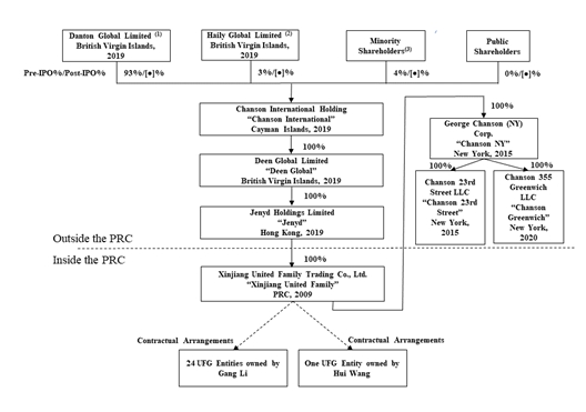 | ● | “Chanson NY” are to George Chanson (NY) Corp., a New York corporation, which is wholly owned by Xinjiang United Family (as defined below); | |