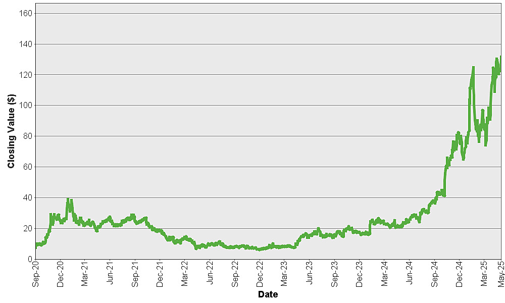 The closing value of Palantir Technologies Inc. on May 30, 2025 was $131.78.