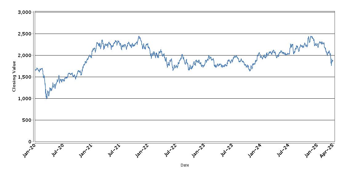 The graph below sets forth the historical performance of the RTY Index based on the daily Closing Value from January 6, 2020 through April 17, 2025. We obtained the Closing Values shown in the graph below from Bloomberg Professional® service (“Bloomberg”). We have not independently verified the accuracy or completeness of the information obtained from Bloomberg.