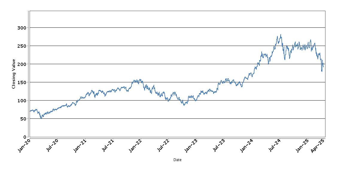 The graph below sets forth the historical performance of the NDX Index based on the daily Closing Value from January 6, 2020 through April 17, 2025. We obtained the Closing Values shown in the graph below from Bloomberg. We have not independently verified the accuracy or completeness of the information obtained from Bloomberg.