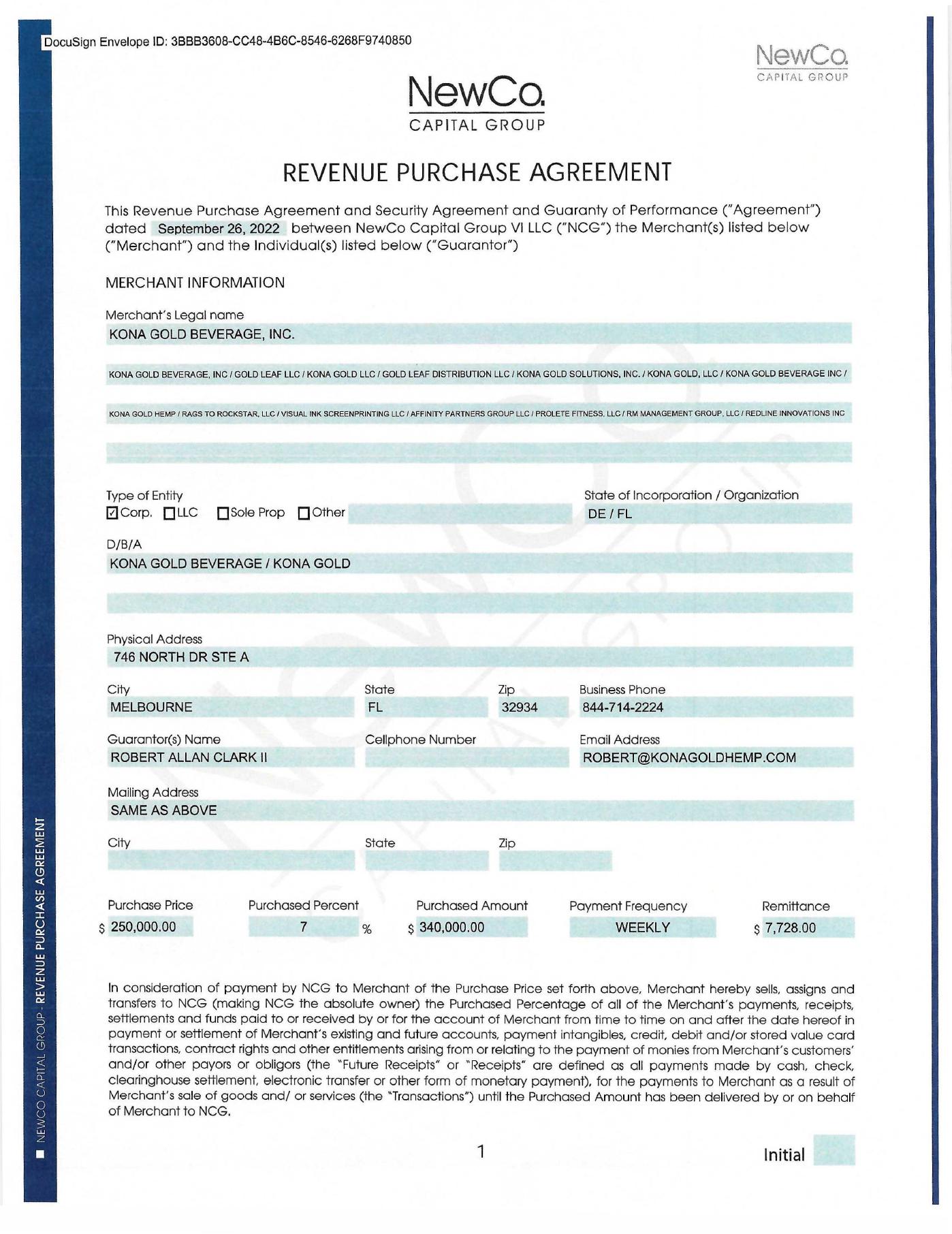 Except as otherwise indicated, references in this prospectus to “KGKG,” the “Company,” “we,” “us” and “our” refer to Kona Gold Beverage, Inc. and its consolidated subsidiaries.