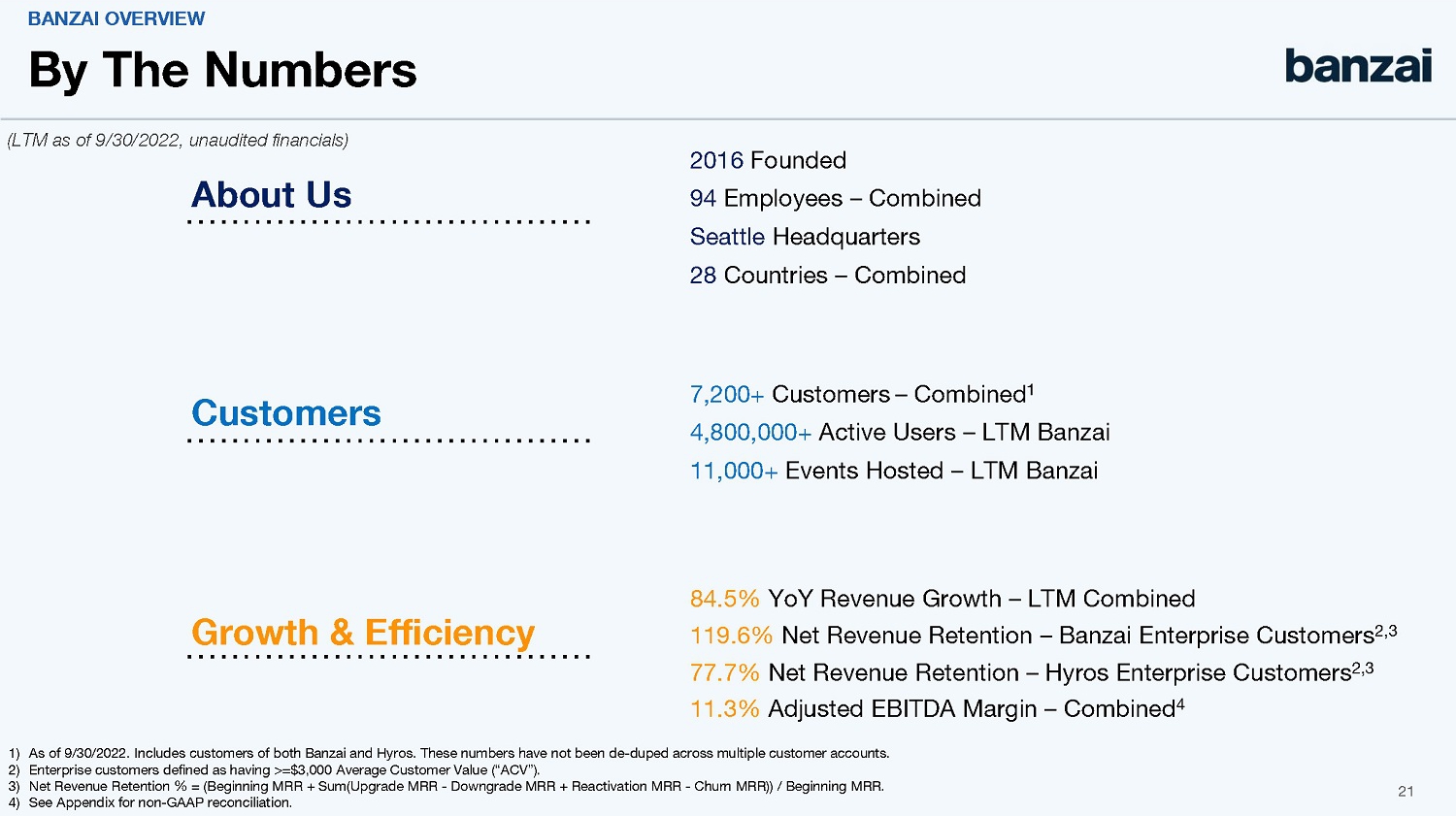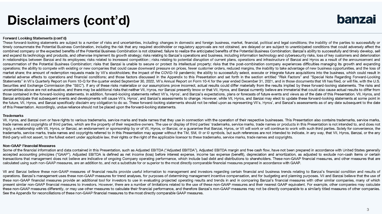 The consummation of the Transactions is subject to customary closing conditions for transactions involving special purpose acquisition companies, including, among others: (i) approval of the 7GC Stockholder Matters by 7GC’s stockholders, (ii) the expiration or termination of the waiting period under the Hart-Scott-Rodino Antitrust Improvements Act of 1976, as amended, (iii) no order, statute, rule or regulation enjoining or prohibiting the consummation of the Transactions being in force, (iv) the Registration Statement/Proxy Statement having become effective, (v) the 7GC New Class A Shares (including the Earn Out Shares) to be issued pursuant to the Merger Agreement having been approved for listing on NASDAQ, (vi) 7GC having at least $5,000,001 of net tangible assets remaining after redemptions by 7GC stockholders, (vii) consummation of the acquisition by the Company of Hyros, pursuant to the terms and subject to the conditions set forth in that certain Agreement and Plan of Merger, dated as of December 8, 2022 (the “Hyros Purchase Agreement”), by and among the Company, Hero Merger Sub, Inc., a Delaware corporation and a direct, wholly owned subsidiary of the Company (the “Hyros Merger Sub”), Hyros and the stockholder representative party thereto (the “Stockholder Representative”), and (vii) customary bring-down conditions. Additionally, the obligations of the Company and its subsidiaries to consummate the Transactions are also conditioned upon, among others, (A) 7GC having delivered to the Company executed copies of the Registration Rights Agreement (as defined below) and the Exchange Agent Agreement (as defined in the Merger Agreement), and evidence that the second amended and restated certificate of incorporation of 7GC has been filed with the Secretary of State of Delaware, and (B) the sum of (i) the cash proceeds to be received by 7GC at Closing from the trust account established by 7GC in connection with the Transactions (after, for the avoidance of doubt, giving effect to redemptions by 7GC stockholders), (ii) the $100,000,000 equity commitment by GEM under the GEM Agreement and (iii) the unrestricted cash on the balance sheet of the Company as of immediately prior to the Closing equaling or exceeding $100,000,000.