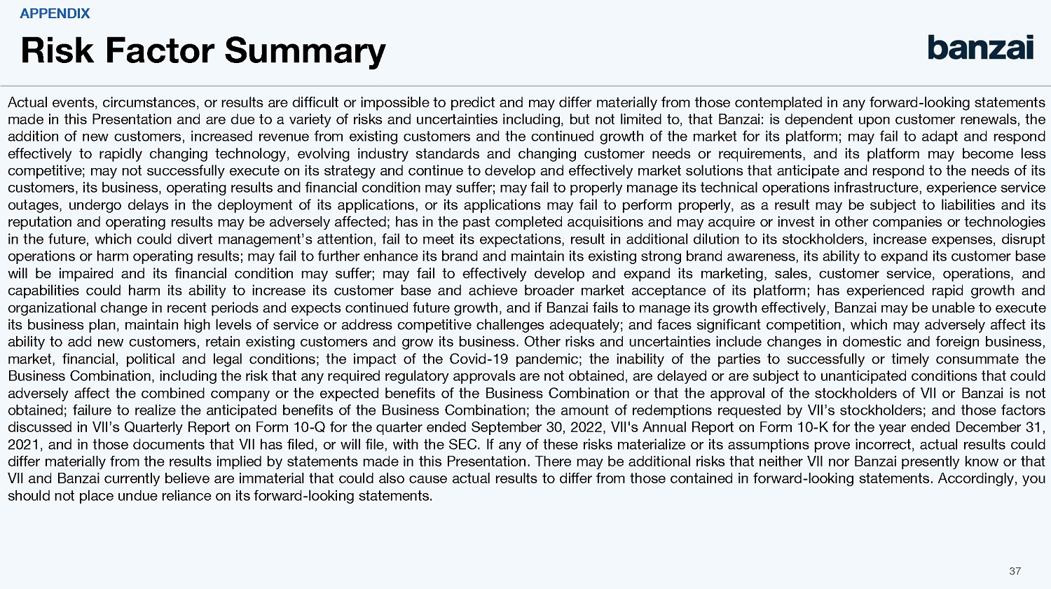 | (ii) | prior to the Closing, by written notice to the Company from 7GC if (i) there is any breach of any representation, warranty, covenant or agreement on the part of the Company set forth in the Merger Agreement, such that certain closing conditions would not be satisfied at the Closing, subject to a 30-day cure period, (ii) the Closing has not occurred on or before June 8, 2023 (the “Termination Date”), subject to certain conditions set forth in the Merger Agreement, (iii) the consummation of the Mergers is permanently enjoined or prohibited by the terms of a final, non-appealable governmental order or a statute, rule or regulation, or (iv) the 7GC Stockholder Matters are not approved by the 7GC stockholders at the special meeting (subject to any adjournment, postponement or recess of the meeting); |