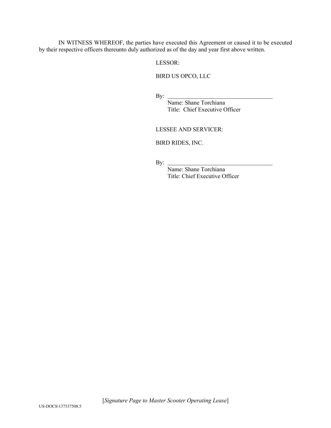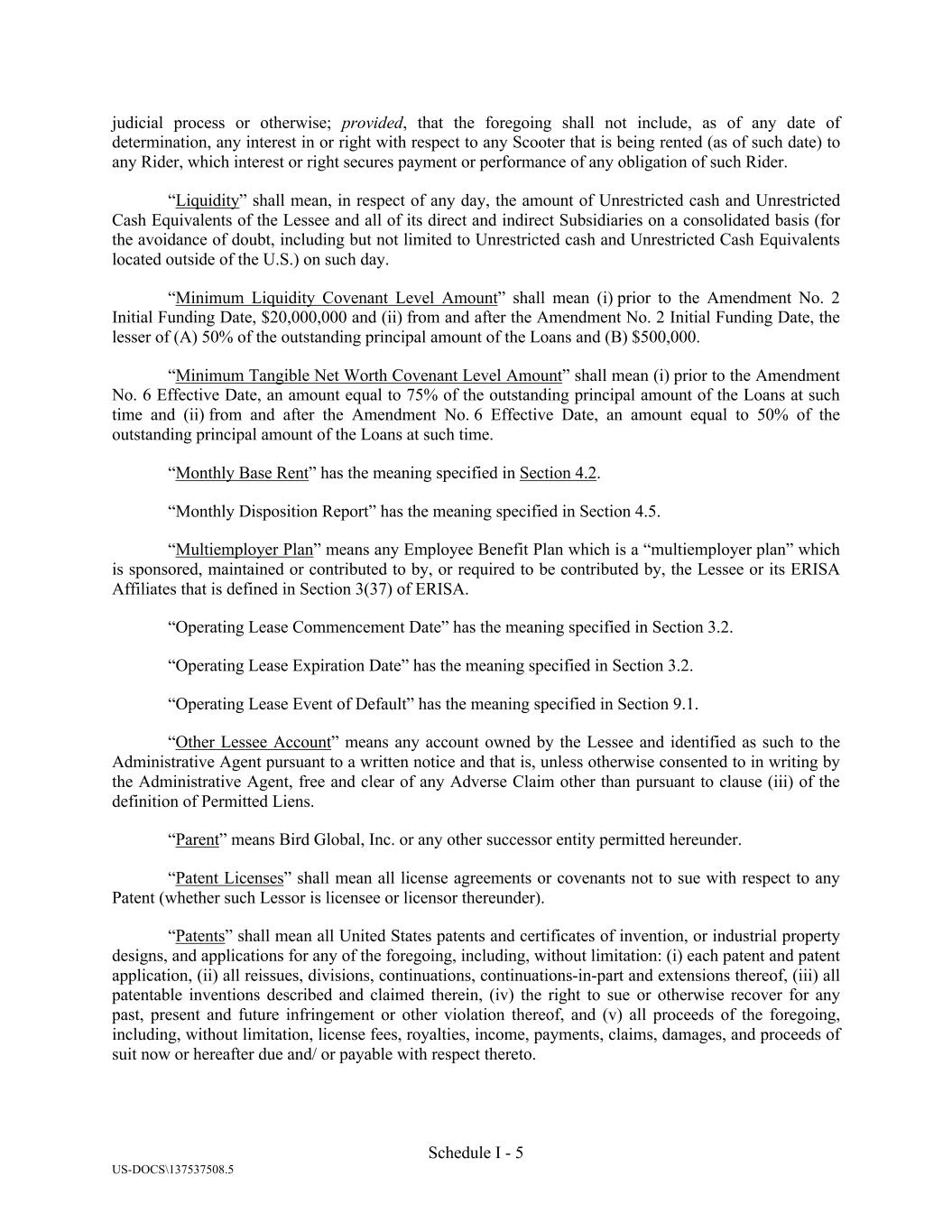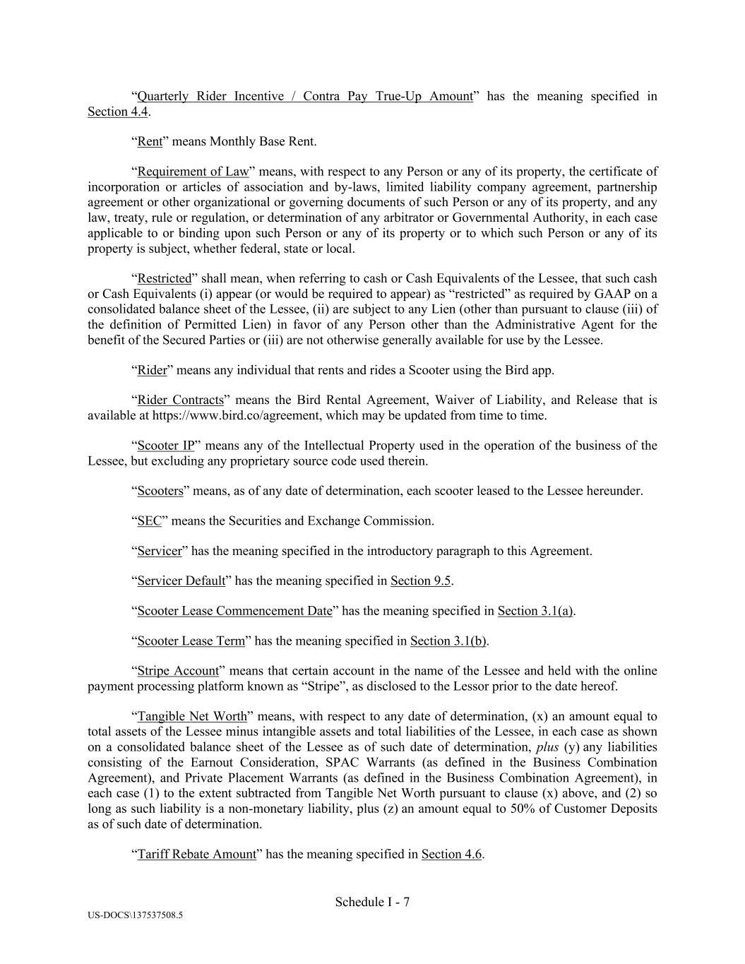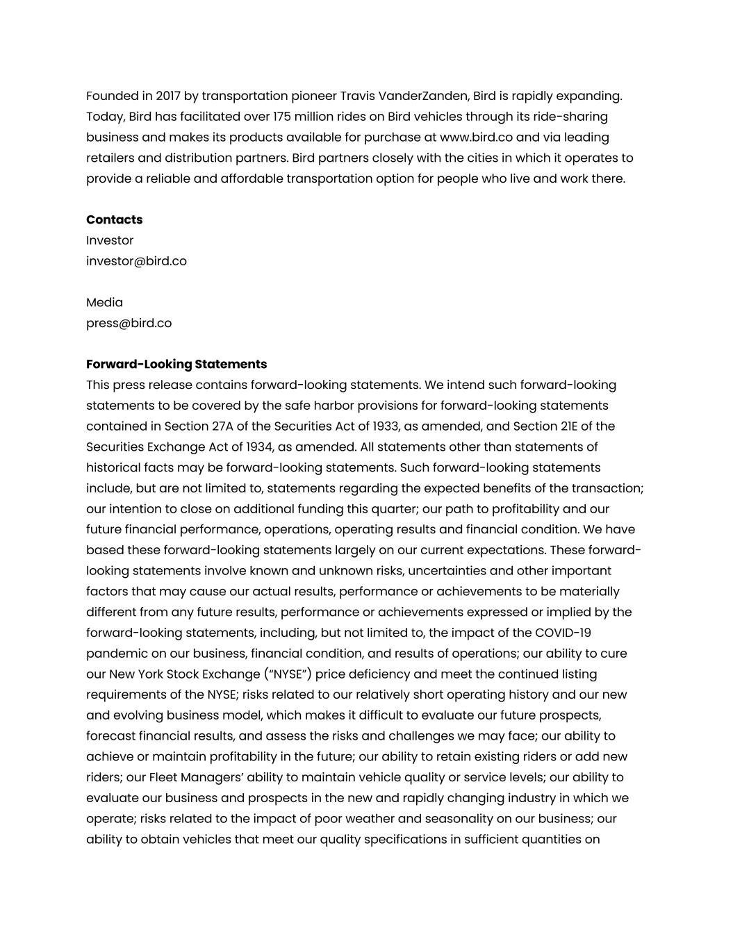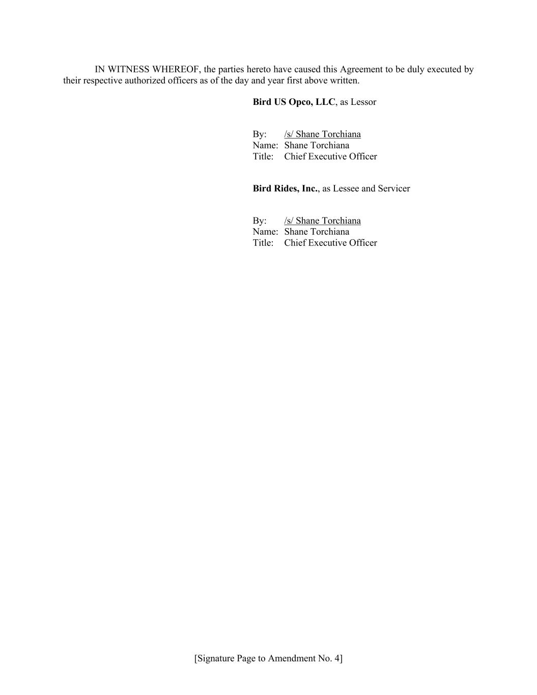 among other things, (a) eliminates the supplemental portion of lease payments tied to revenue generation by vehicles on lease by Bird Opco to Bird Rides and (b) amends certain restrictive covenants.