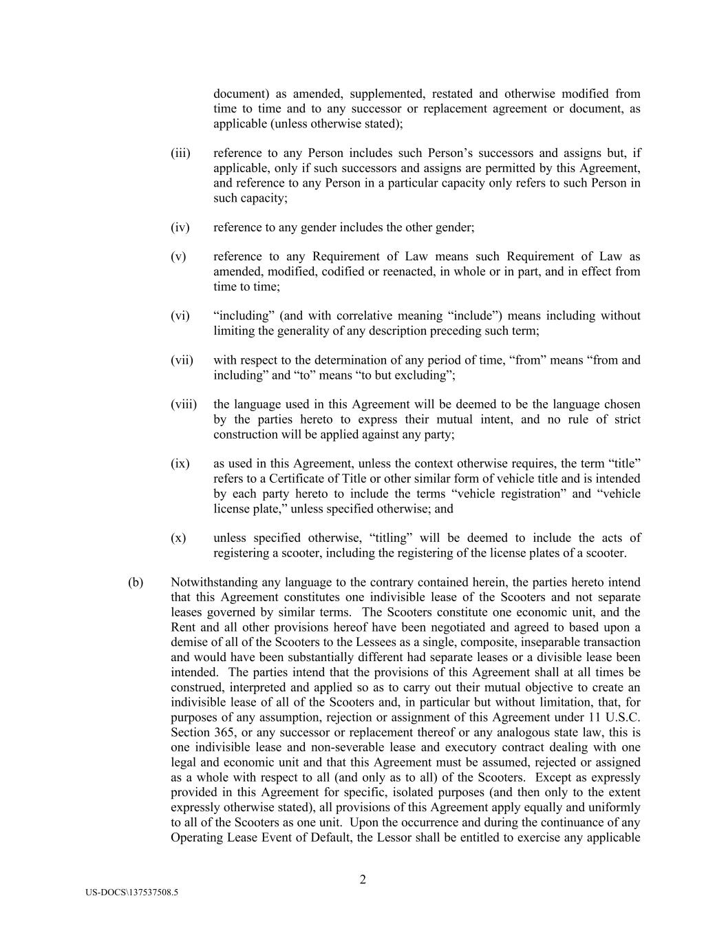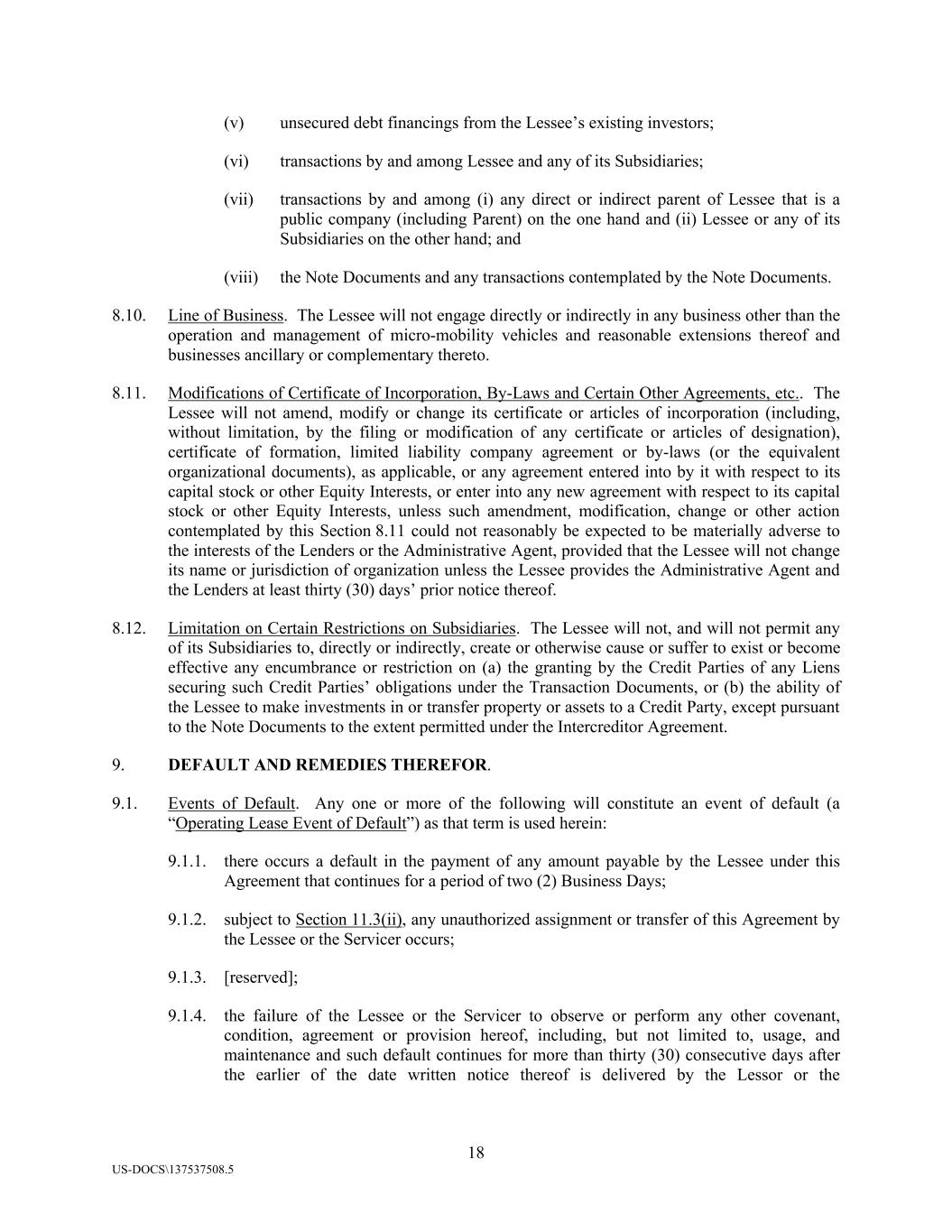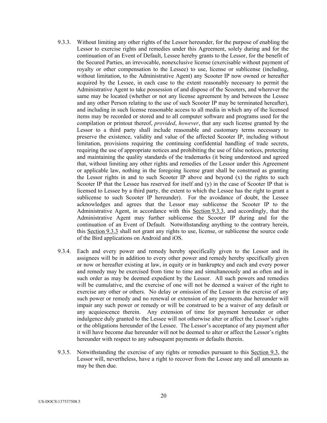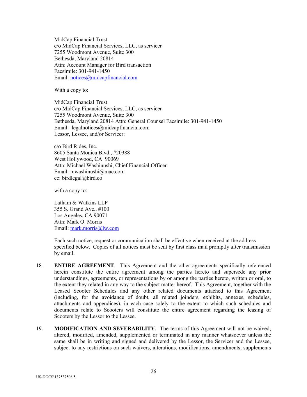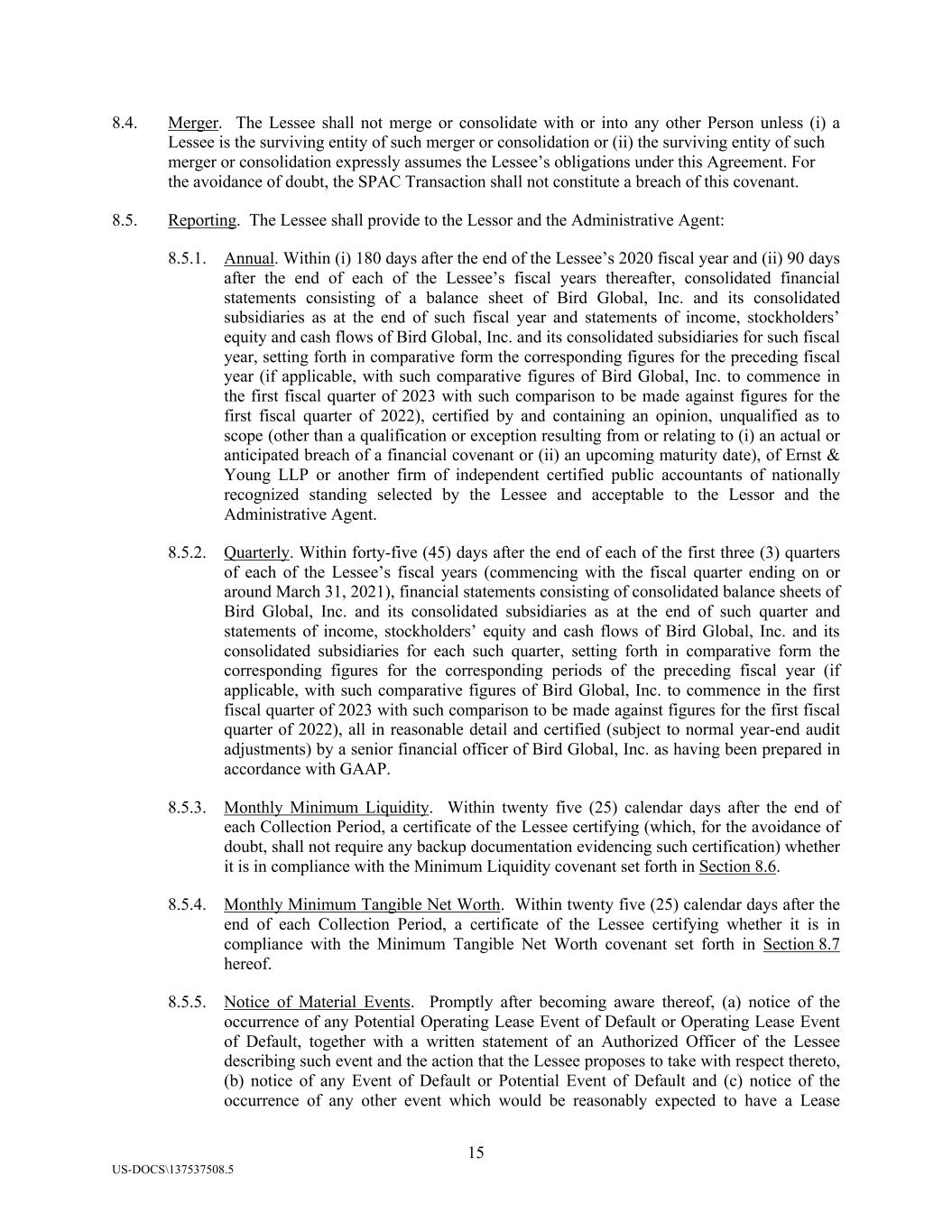among other things, (a) eliminates the supplemental portion of lease payments tied to revenue generation by vehicles on lease by Bird Opco to Bird Rides and (b) amends certain restrictive covenants.