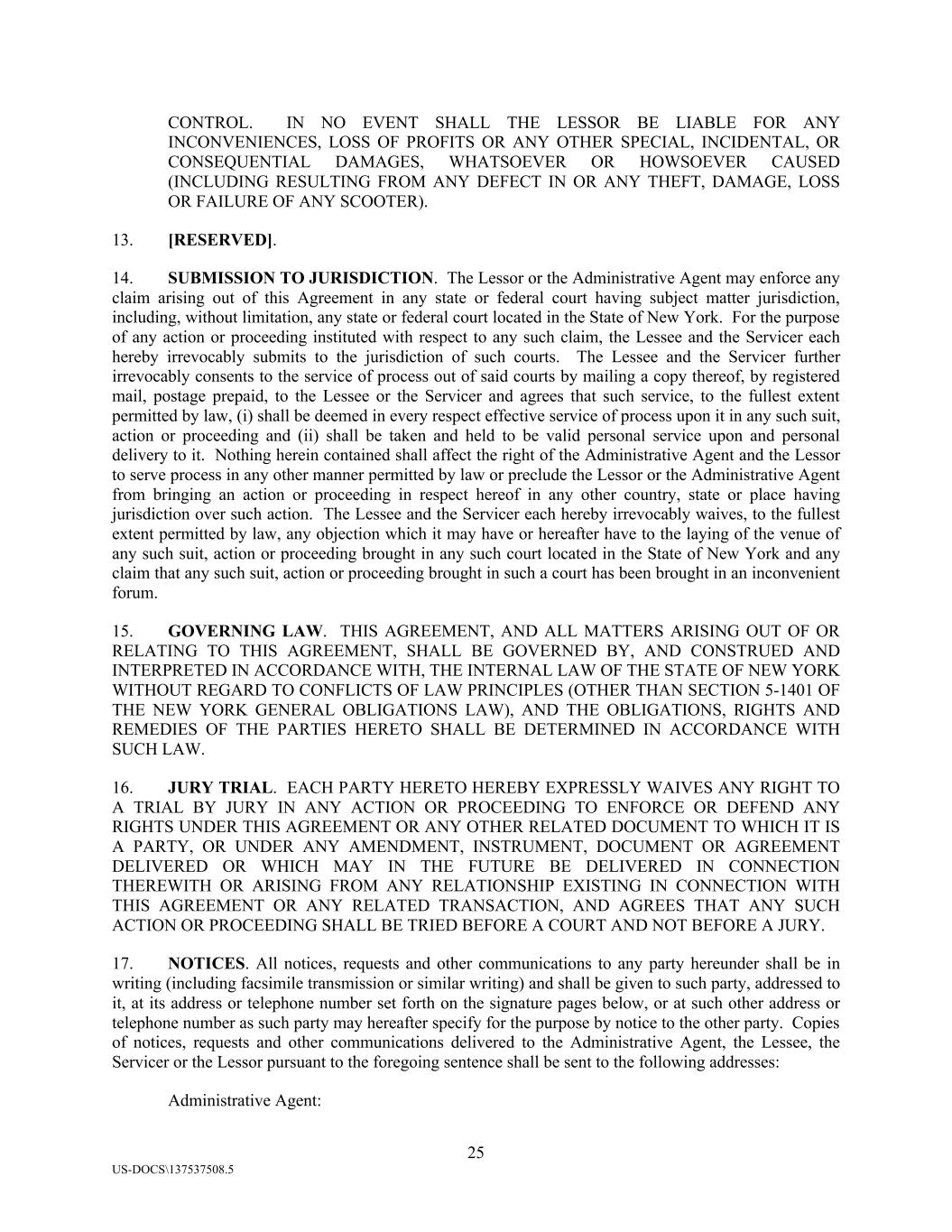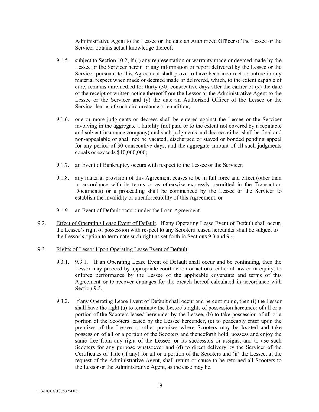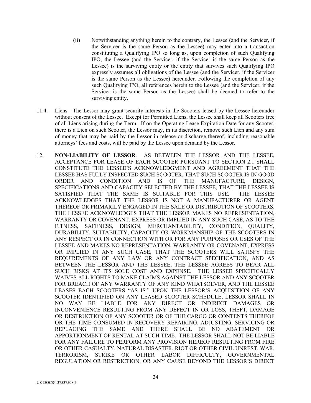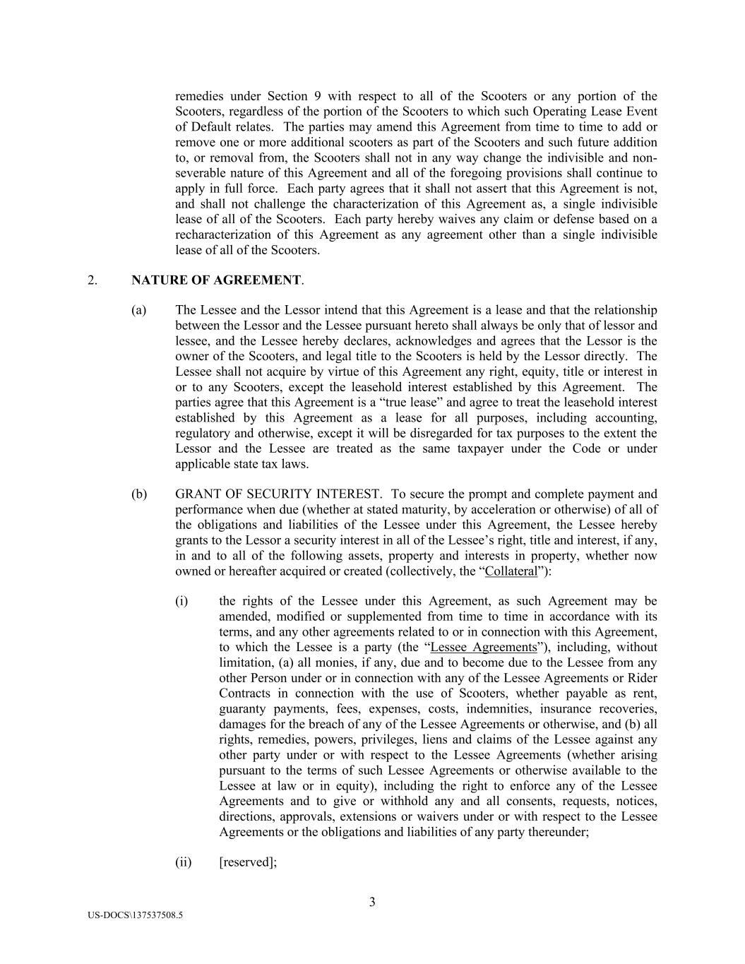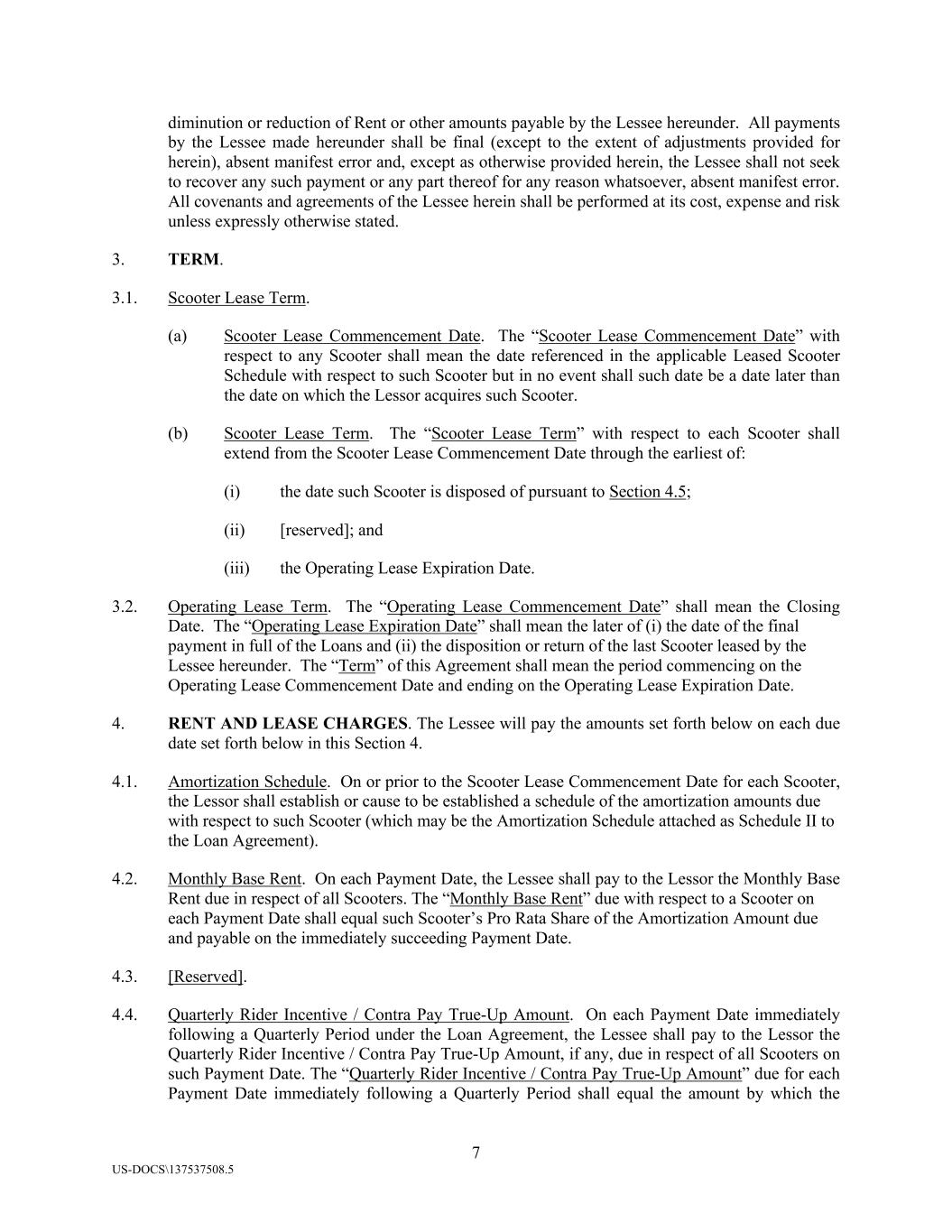 among other things, (a) eliminates the supplemental portion of lease payments tied to revenue generation by vehicles on lease by Bird Opco to Bird Rides and (b) amends certain restrictive covenants.