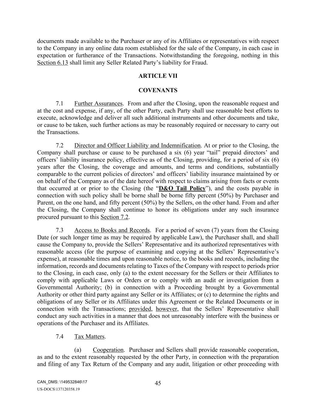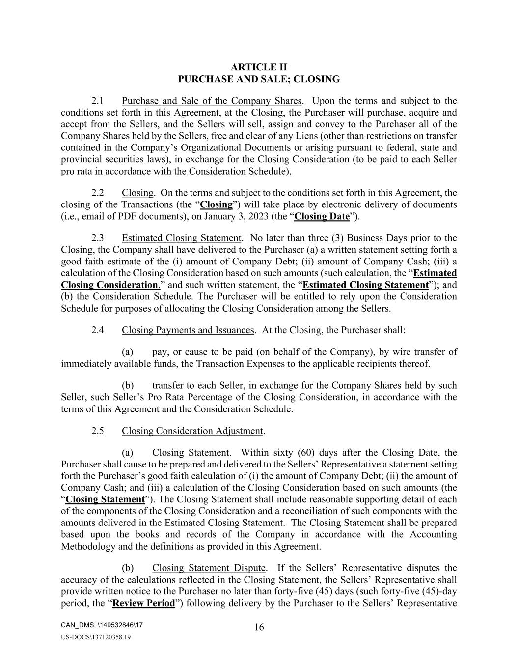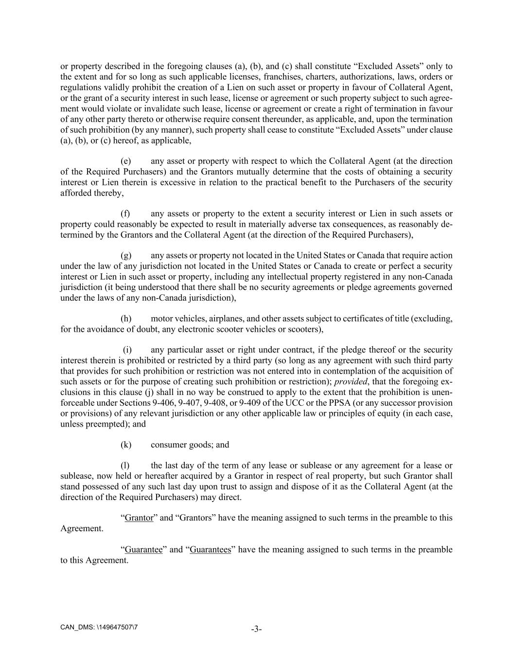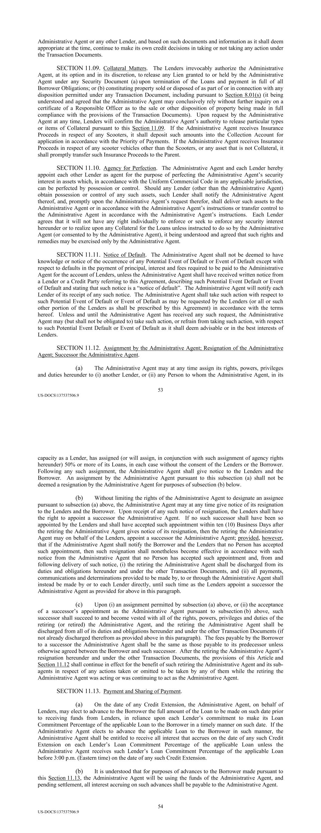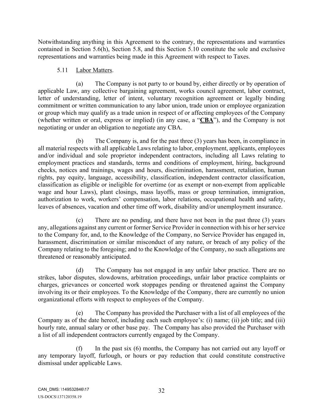 The Share Purchase Agreement contains customary representations and warranties related to Bird Canada, the BC Sellers, the Purchaser and the Company. The Share Purchase Agreement contains customary indemnification provisions by the Purchaser, the Company and the BC Sellers with respect to breaches of representations and warranties and the performance of post-closing covenants. Indemnification claims will survive the closing for (i) with respect to breaches of general representations and warranties, 18 months, (ii) with respect to breaches of fundamental representations and warrants, 24 months, and (iii) with respect to post-closing covenants, in accordance with their terms or until fully performed.