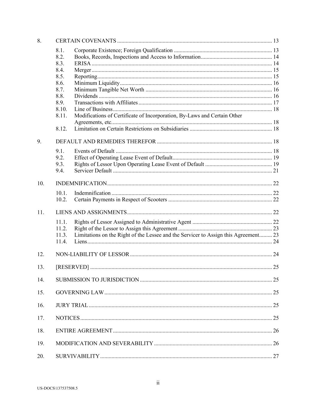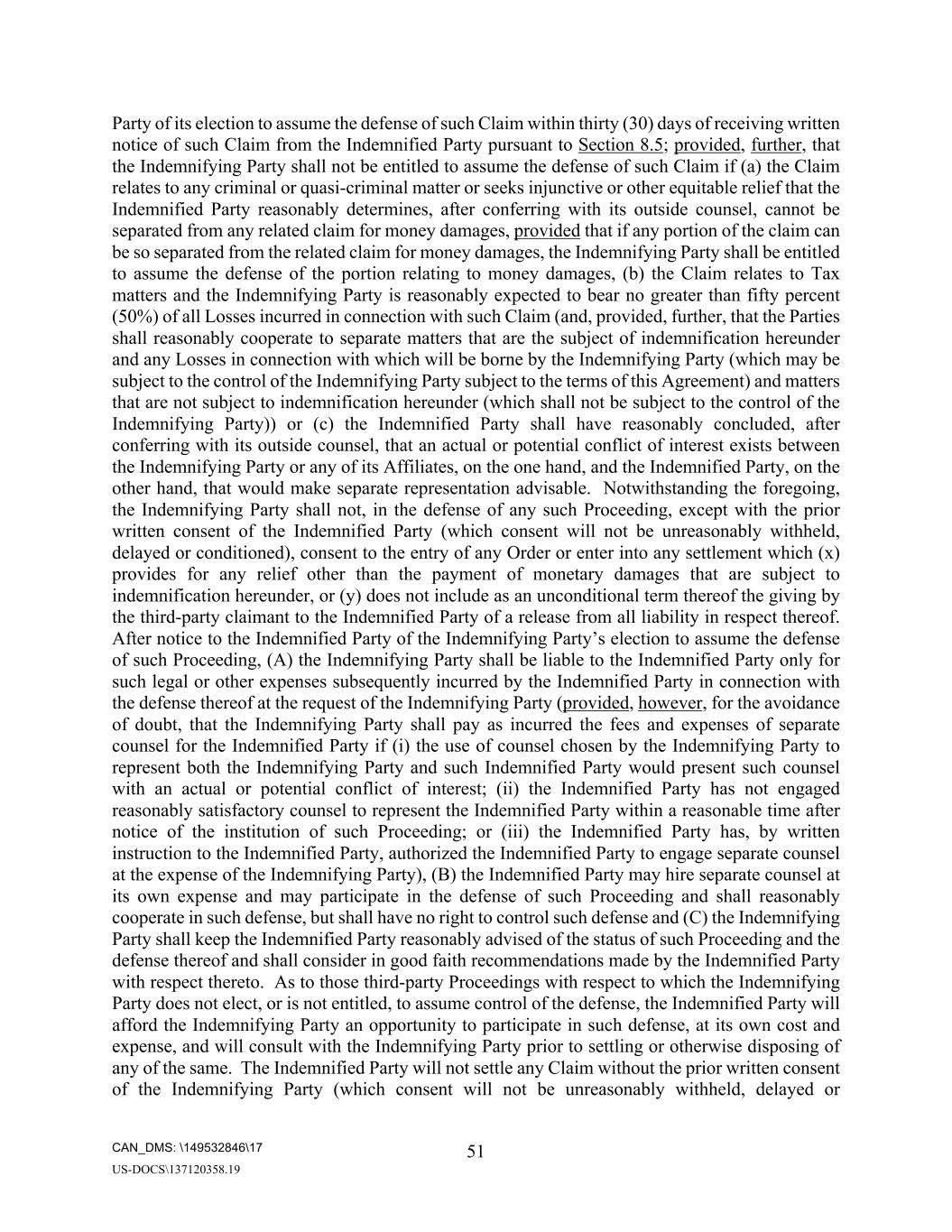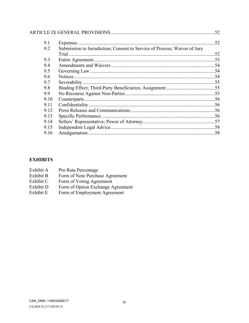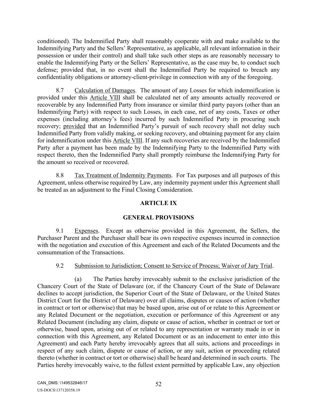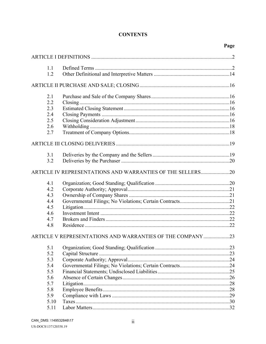 The Share Purchase Agreement contains customary representations and warranties related to Bird Canada, the BC Sellers, the Purchaser and the Company. The Share Purchase Agreement contains customary indemnification provisions by the Purchaser, the Company and the BC Sellers with respect to breaches of representations and warranties and the performance of post-closing covenants. Indemnification claims will survive the closing for (i) with respect to breaches of general representations and warranties, 18 months, (ii) with respect to breaches of fundamental representations and warrants, 24 months, and (iii) with respect to post-closing covenants, in accordance with their terms or until fully performed.