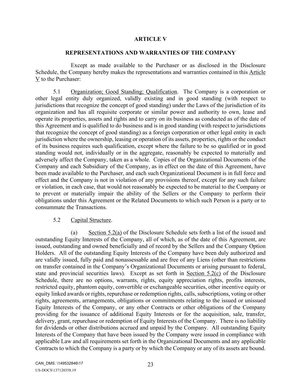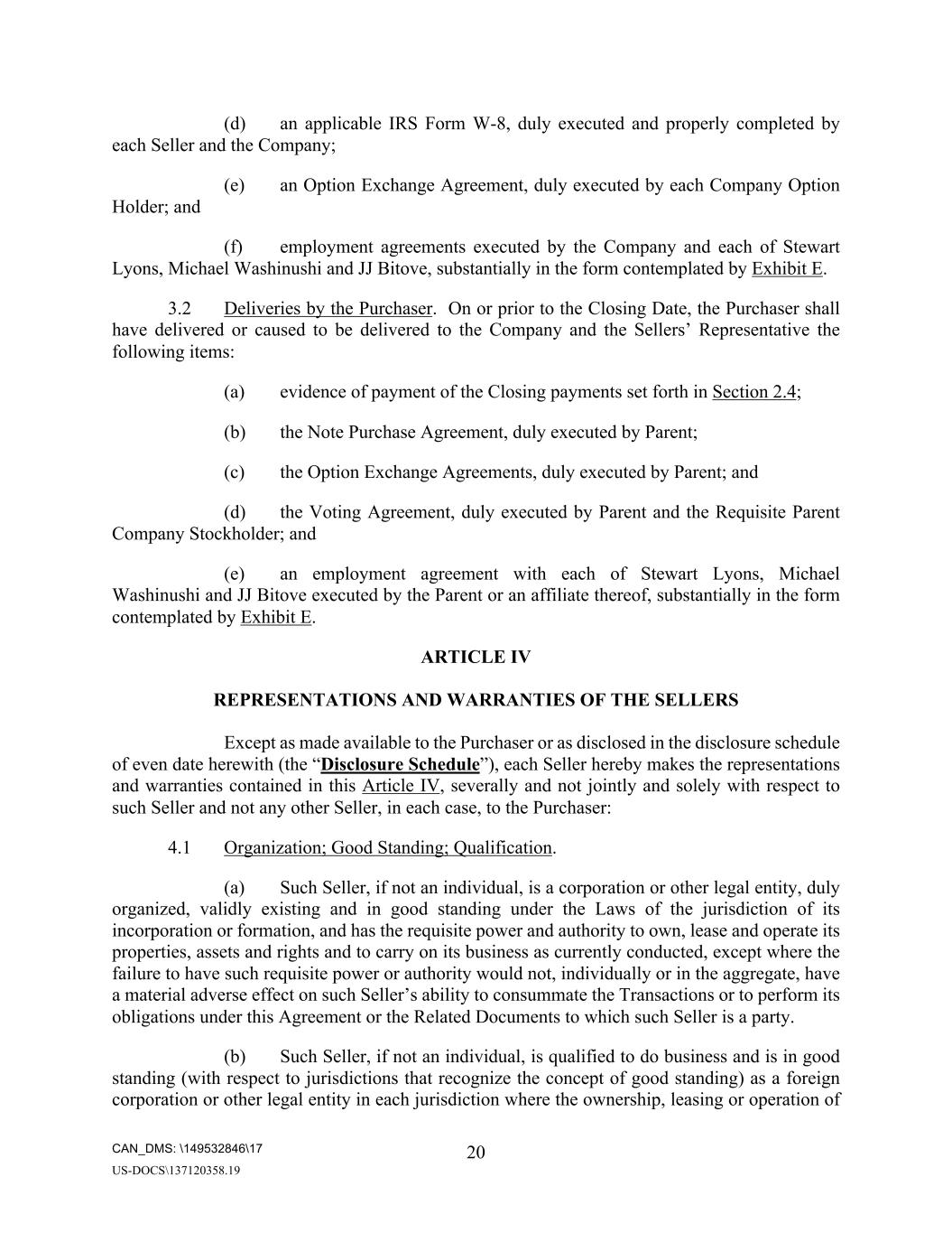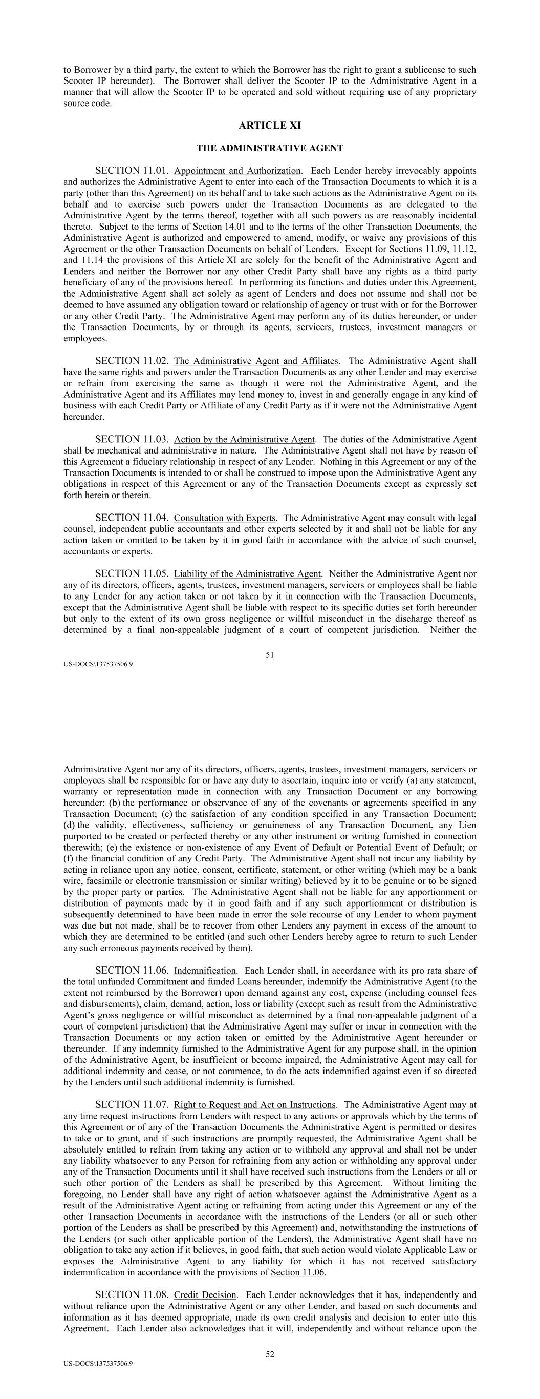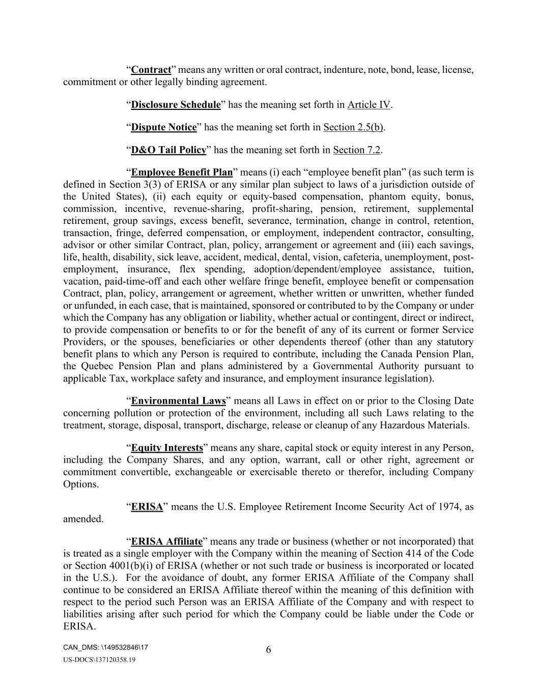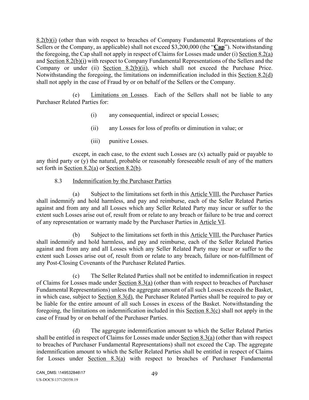 The Share Purchase Agreement contains customary representations and warranties related to Bird Canada, the BC Sellers, the Purchaser and the Company. The Share Purchase Agreement contains customary indemnification provisions by the Purchaser, the Company and the BC Sellers with respect to breaches of representations and warranties and the performance of post-closing covenants. Indemnification claims will survive the closing for (i) with respect to breaches of general representations and warranties, 18 months, (ii) with respect to breaches of fundamental representations and warrants, 24 months, and (iii) with respect to post-closing covenants, in accordance with their terms or until fully performed.