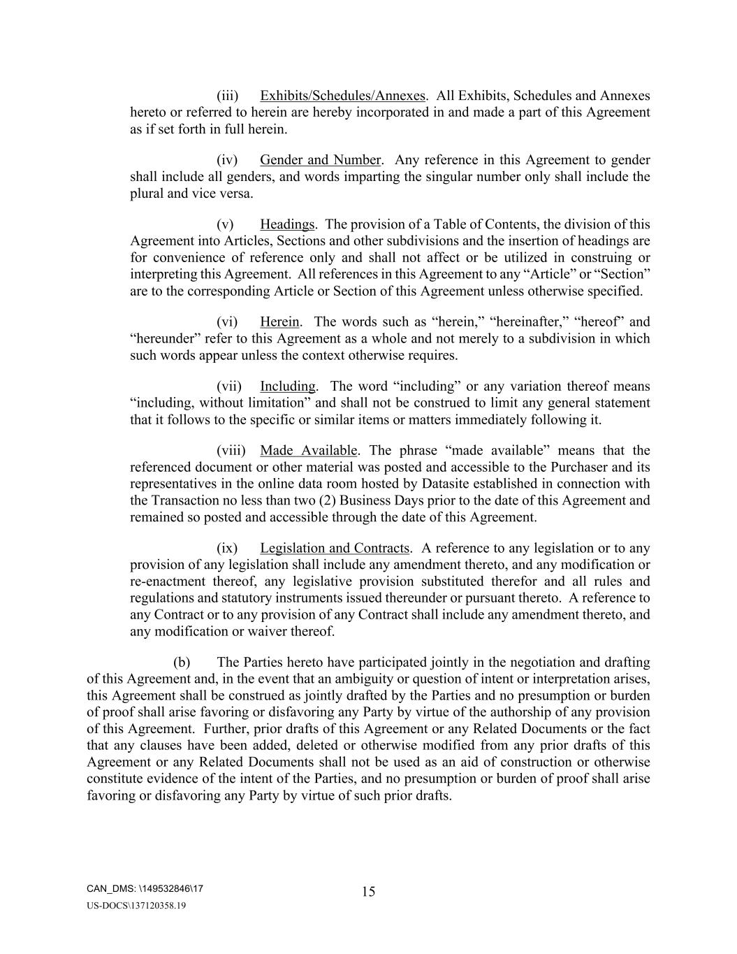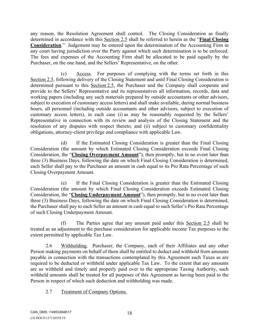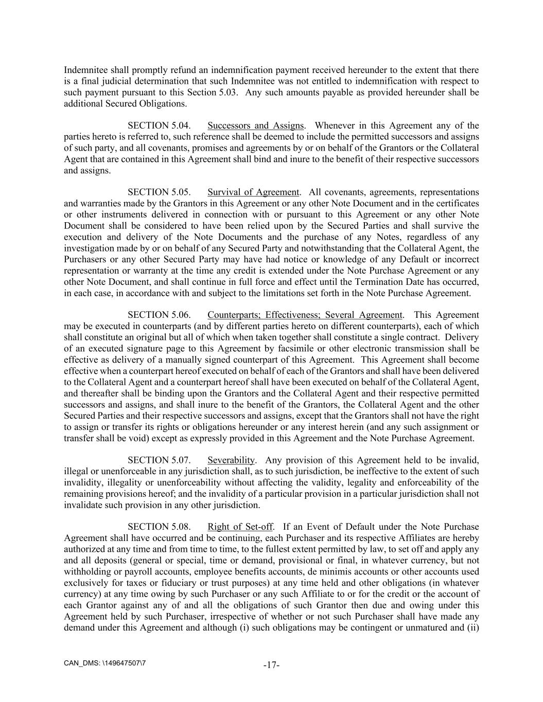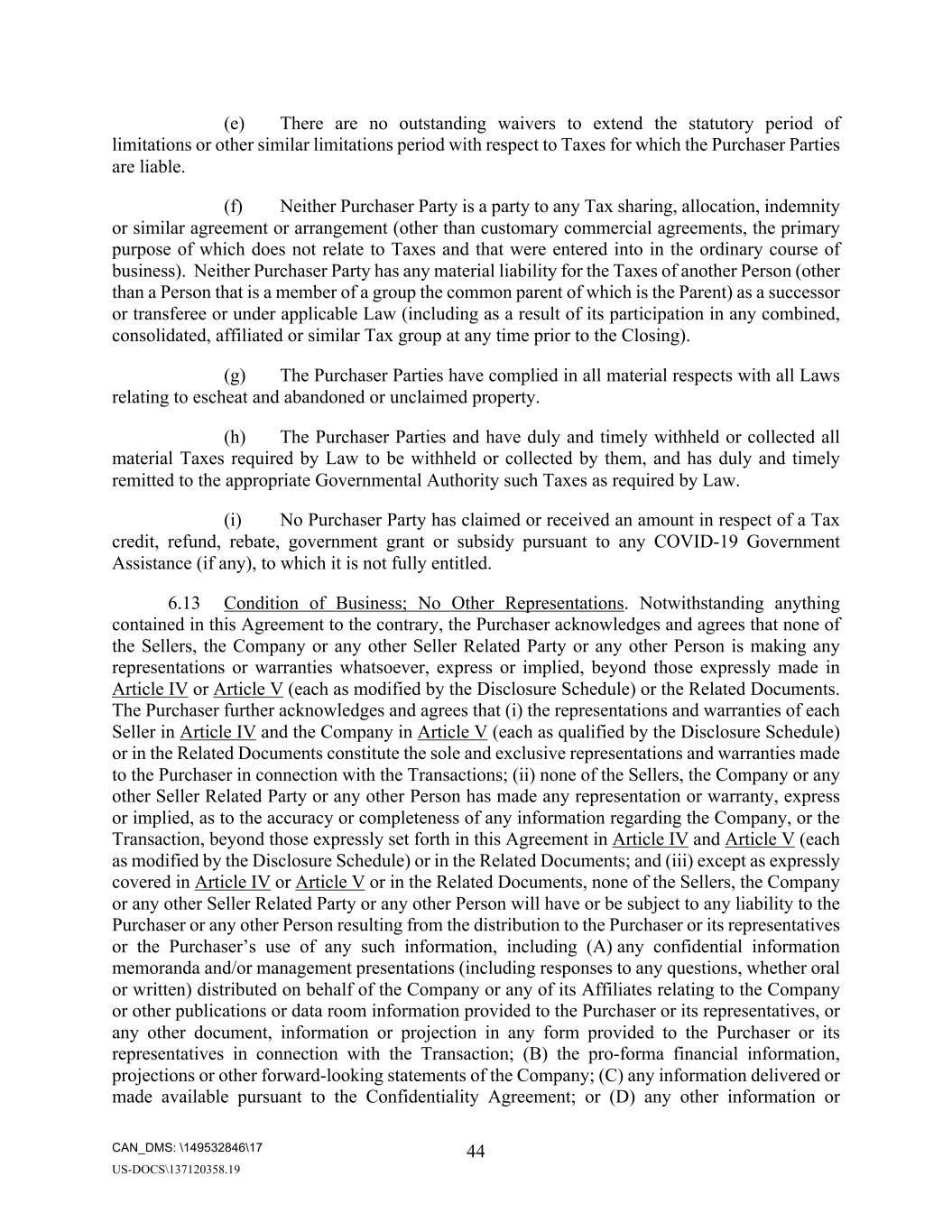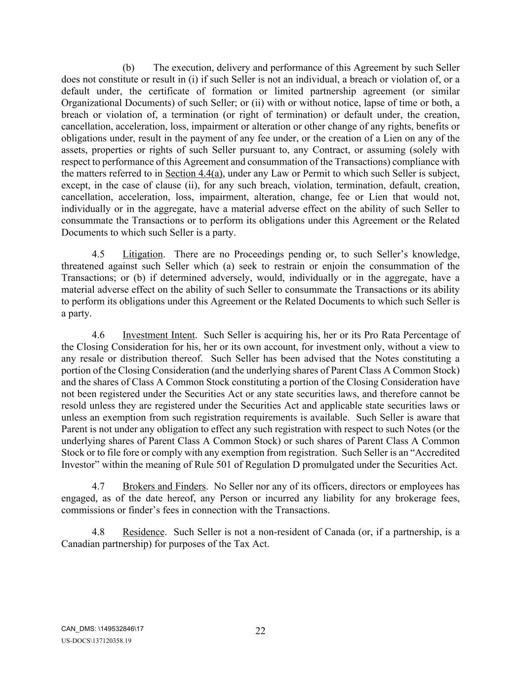 The Share Purchase Agreement contains customary representations and warranties related to Bird Canada, the BC Sellers, the Purchaser and the Company. The Share Purchase Agreement contains customary indemnification provisions by the Purchaser, the Company and the BC Sellers with respect to breaches of representations and warranties and the performance of post-closing covenants. Indemnification claims will survive the closing for (i) with respect to breaches of general representations and warranties, 18 months, (ii) with respect to breaches of fundamental representations and warrants, 24 months, and (iii) with respect to post-closing covenants, in accordance with their terms or until fully performed.