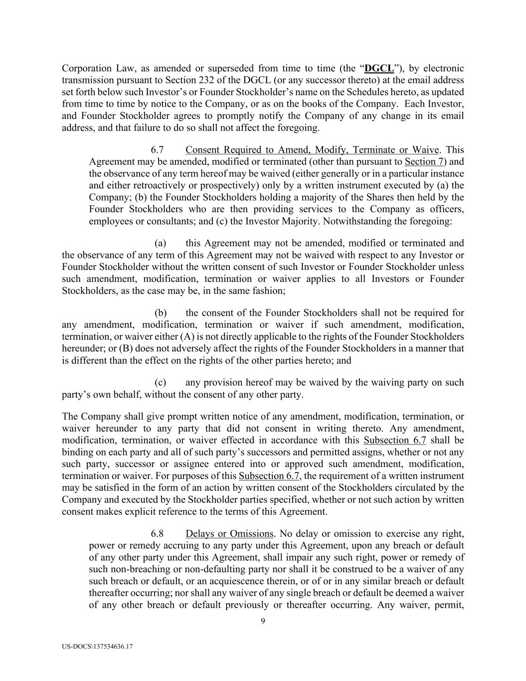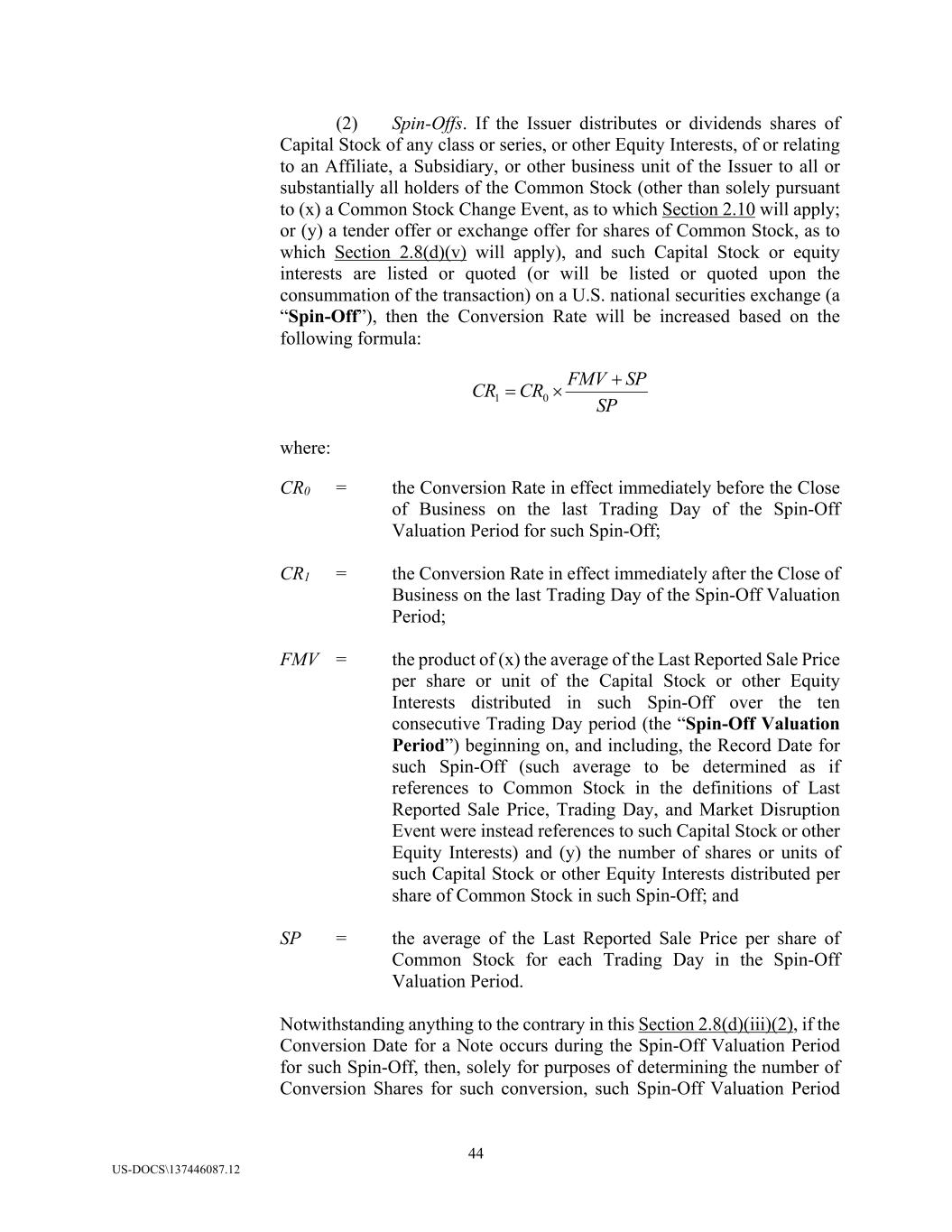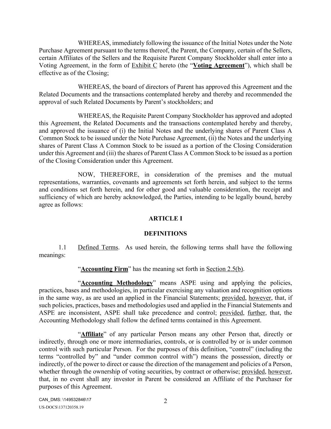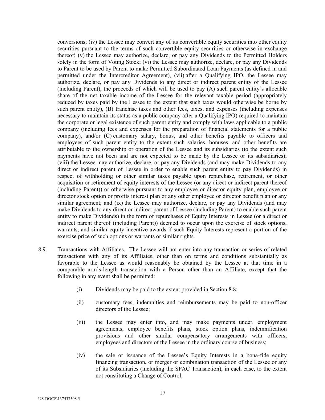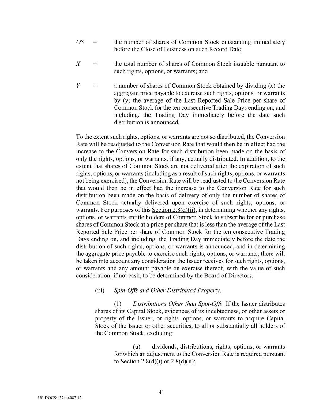 In addition, under the Voting Agreement, the Founder Stockholder agreed that he will voluntarily convert (in accordance with the terms of the Company’s Amended and Restated Certificate of Incorporation) into Class A Common Stock all of the shares of the Company’s Class X common stock, par value $0.0001 per share, that as of such time he beneficially owns, directly or indirectly, upon the conversion of all or a portion of the Notes into Class A Common Stock in accordance with their terms and, pursuant to which, immediately following such conversion, the Investors collectively beneficially own, directly or indirectly (but excluding from such calculation any shares of Class A Common Stock issuable in respect of Notes that have not been converted as of such time), at least 88,960,960 shares of Class A Common Stock, subject to appropriate adjustment for any stock splits, stock dividends, combinations, recapitalizations and the like.