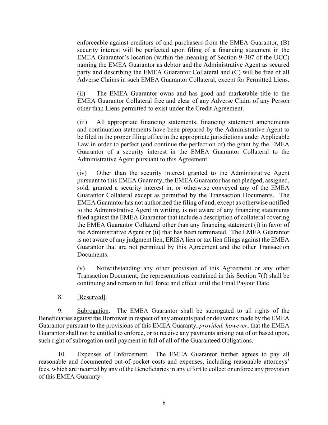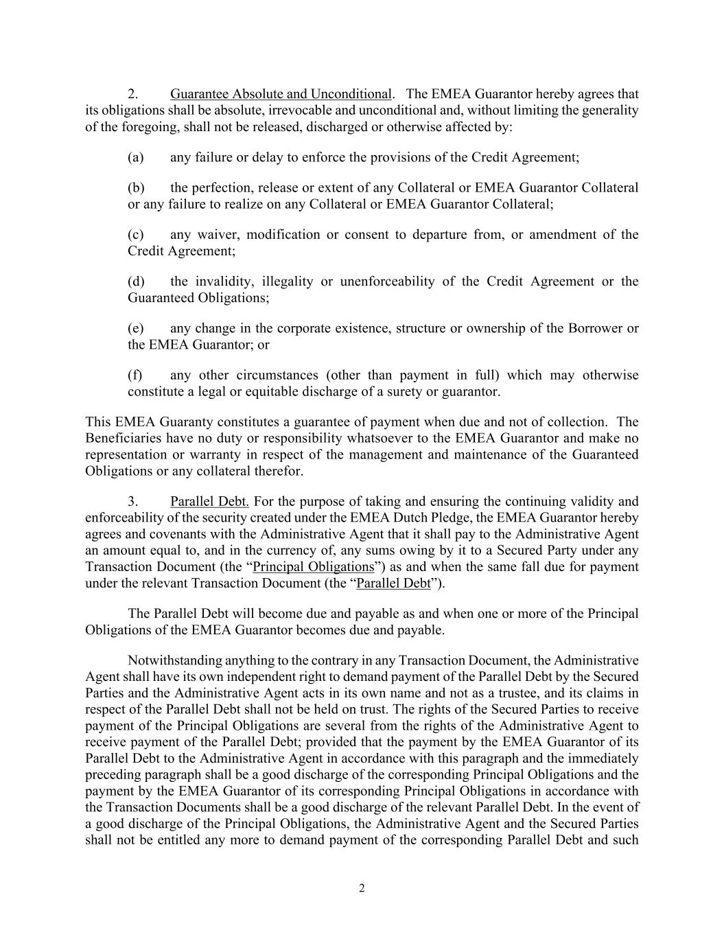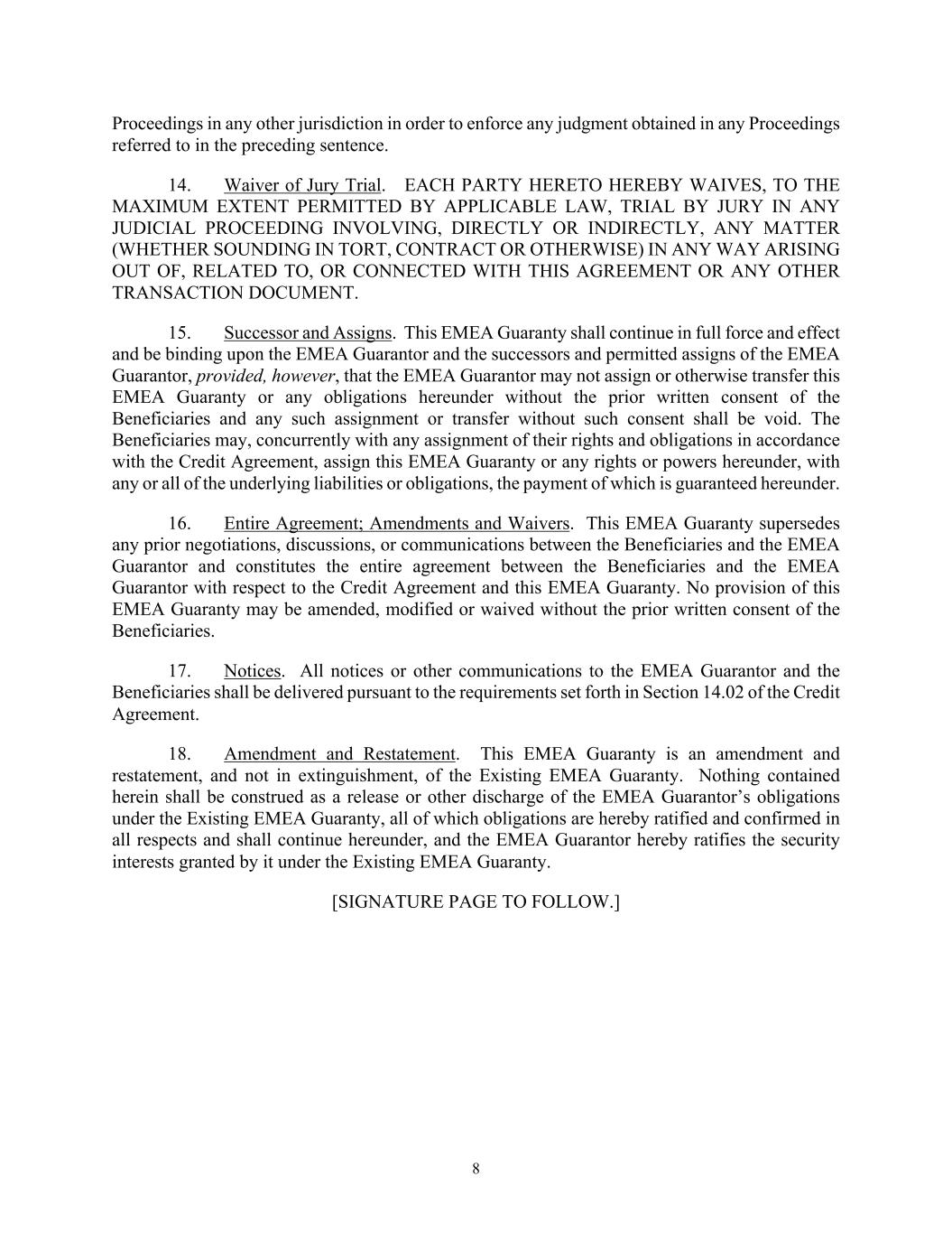 The foregoing descriptions of Amendment No. 8, Amendment No. 4 and the Amended EMEA Guaranty are not complete and are qualified in their entirety by reference to the full text of such agreements, copies of which are filed as Exhibits 10.9, 10.10 and 10.11, respectively, to this Current Report and are incorporated by reference herein.