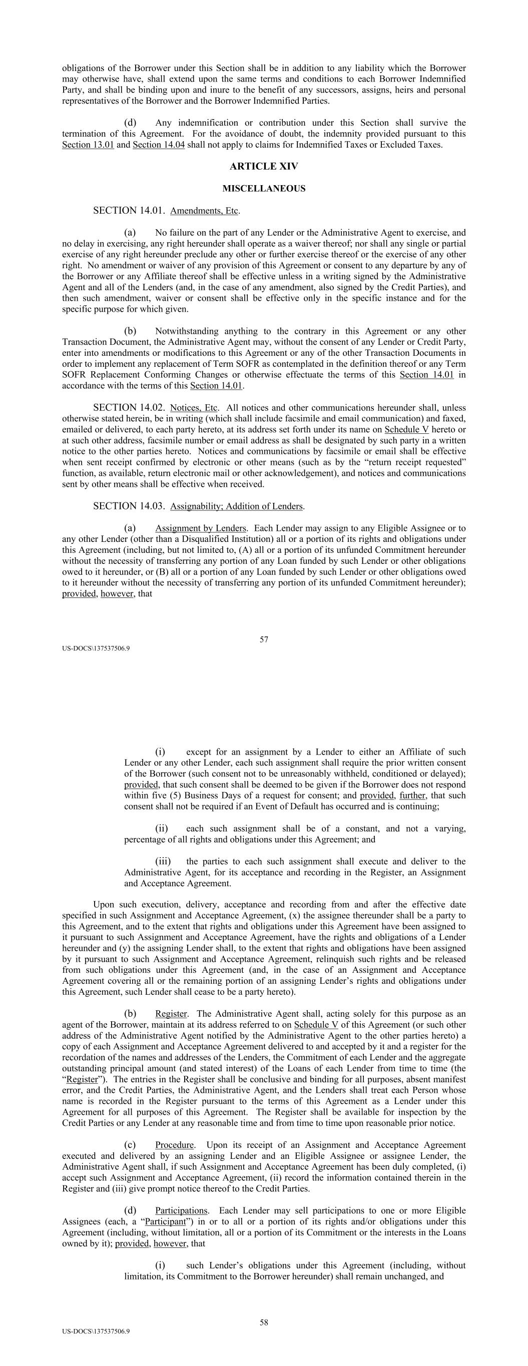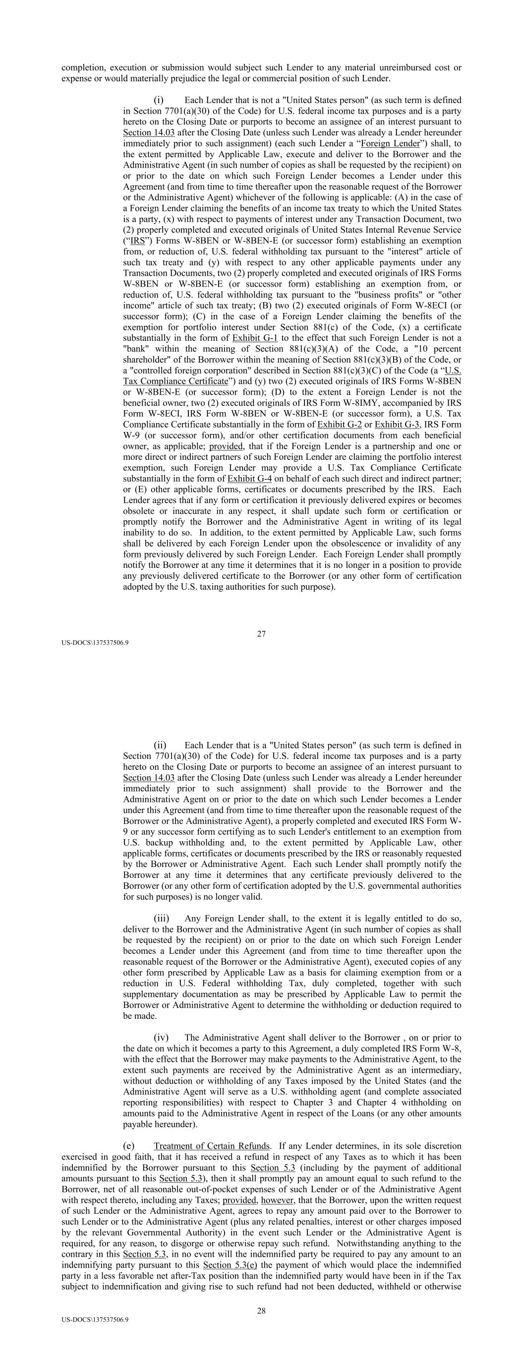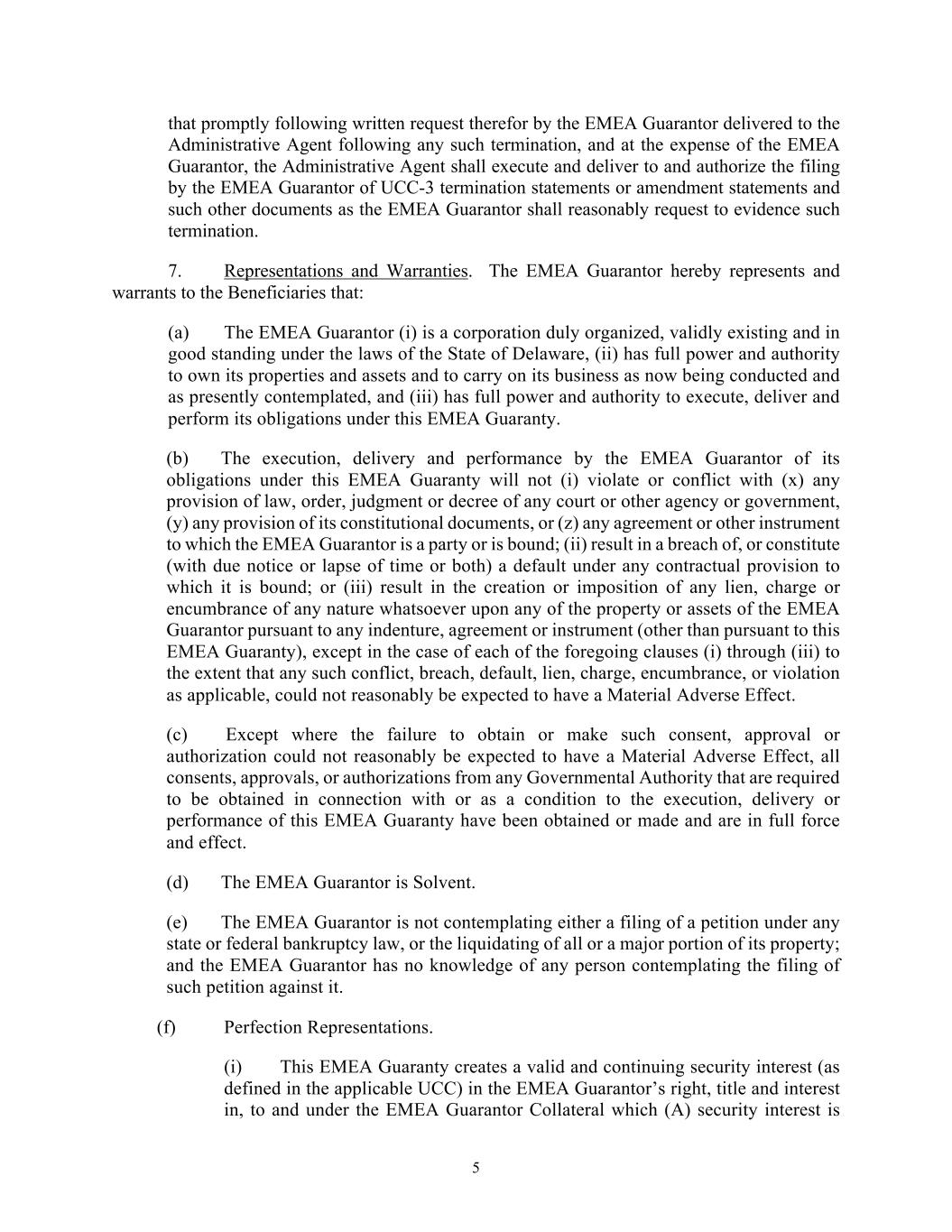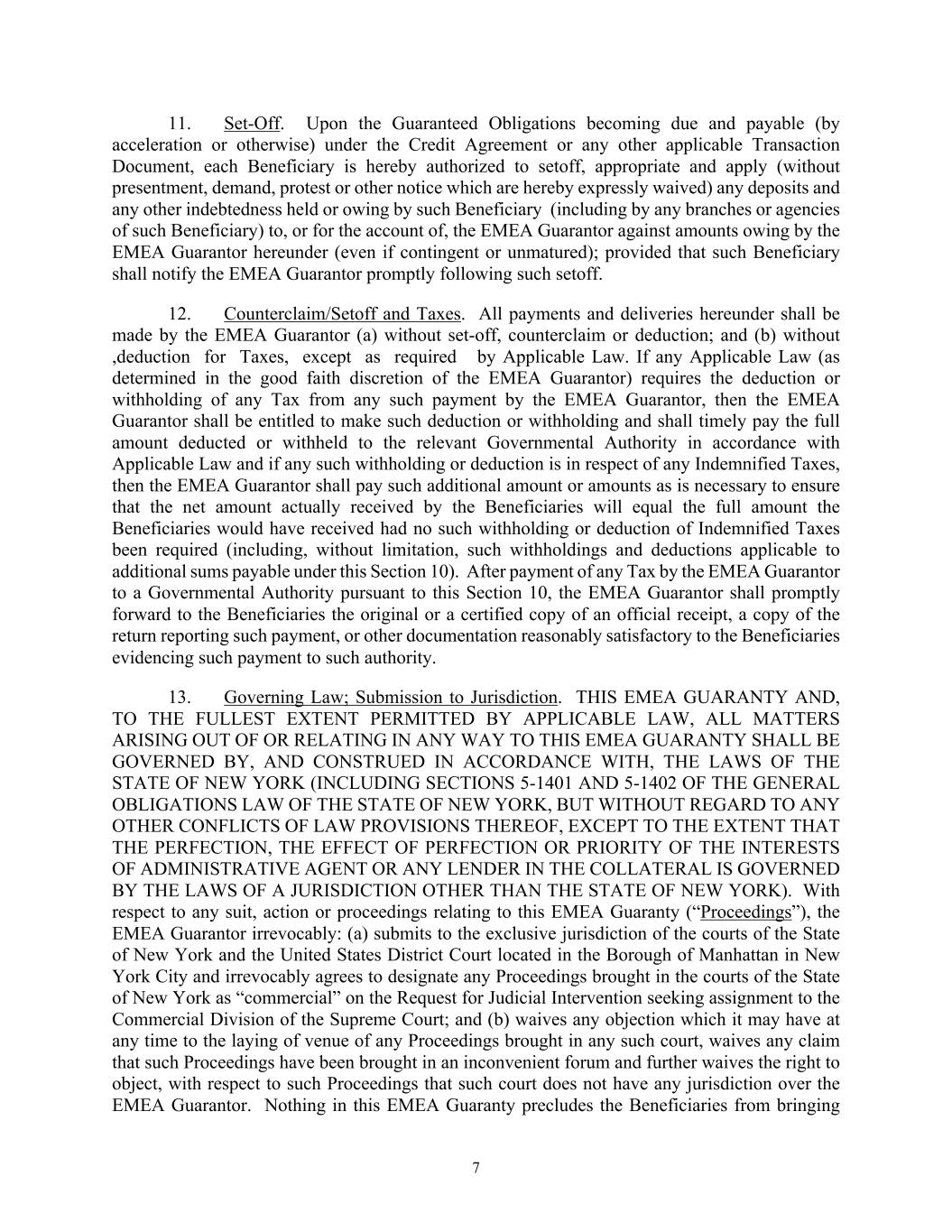 The foregoing descriptions of Amendment No. 8, Amendment No. 4 and the Amended EMEA Guaranty are not complete and are qualified in their entirety by reference to the full text of such agreements, copies of which are filed as Exhibits 10.9, 10.10 and 10.11, respectively, to this Current Report and are incorporated by reference herein.