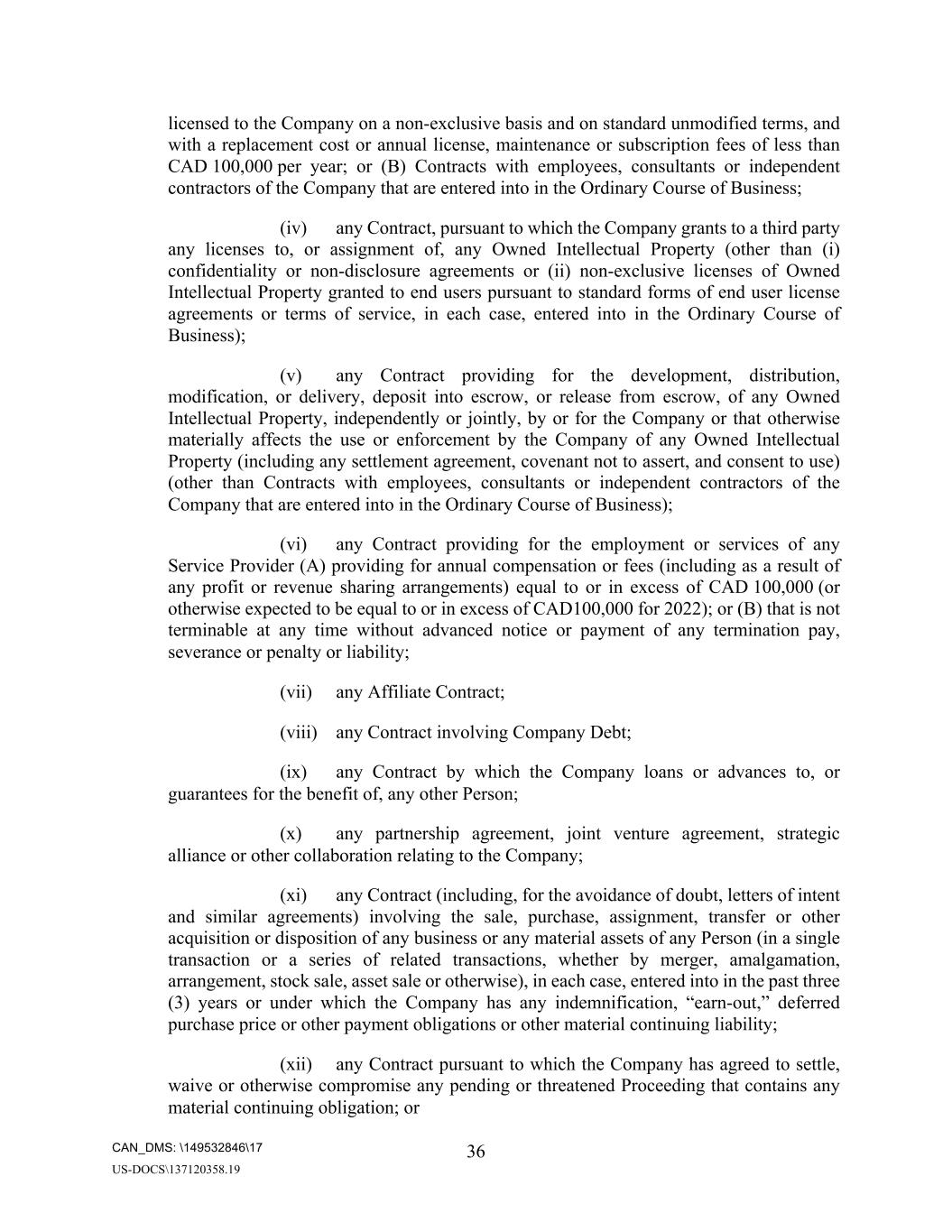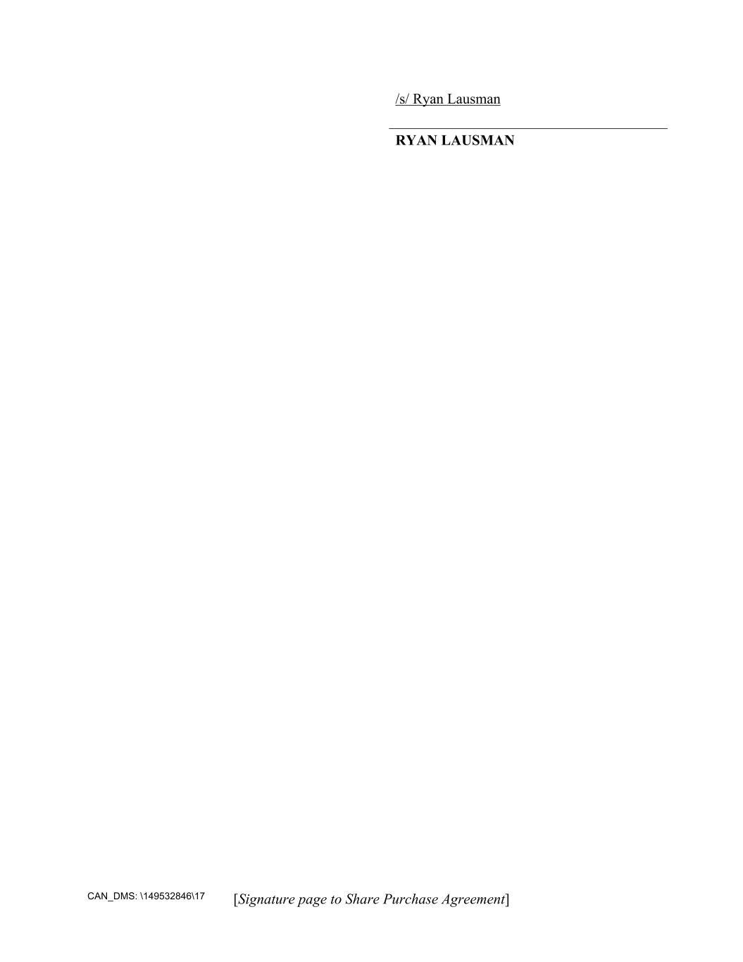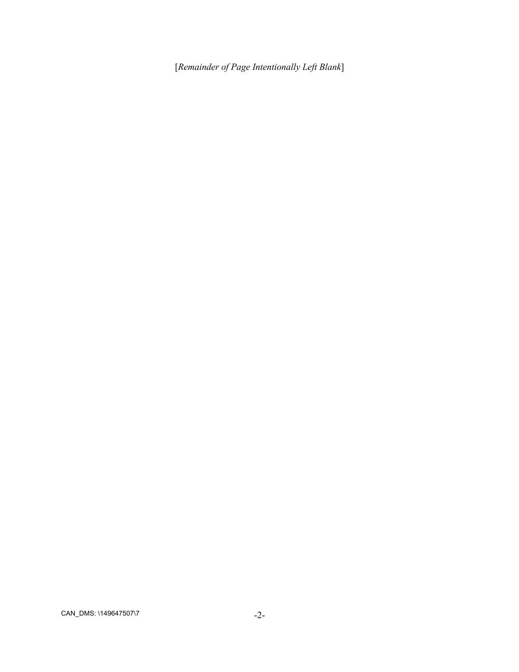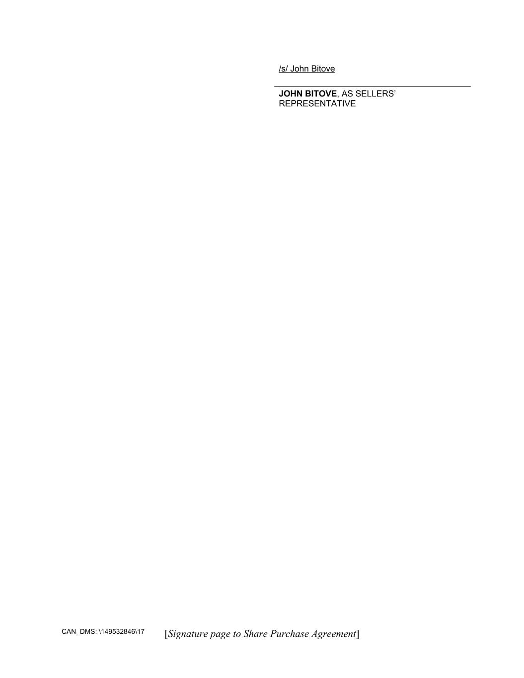 Under the Letter Agreements, each executive is entitled to receive an annual base salary of $682,000 CAD, pro-rated for any partial year of employment. In addition, during calendar years 2023 and 2024, the executives are eligible to earn annual and quarterly cash performance bonuses (each, a “performance bonus”) based on the achievement of adjusted EBITDA, free cash flow and net revenue goals. The maximum potential bonus opportunity for Messrs. Lyons and Washinushi for a single calendar year is equal to $550,400 CAD (for each of 2023 and 2024). In addition, Mr. Washinushi is entitled to receive a $100,000 CAD signing bonus, which must be repaid, in whole or in part, in connection with a termination for “cause” or without “good reason” (as defined in the applicable Letter Agreement) prior to the second anniversary of his employment start date.
