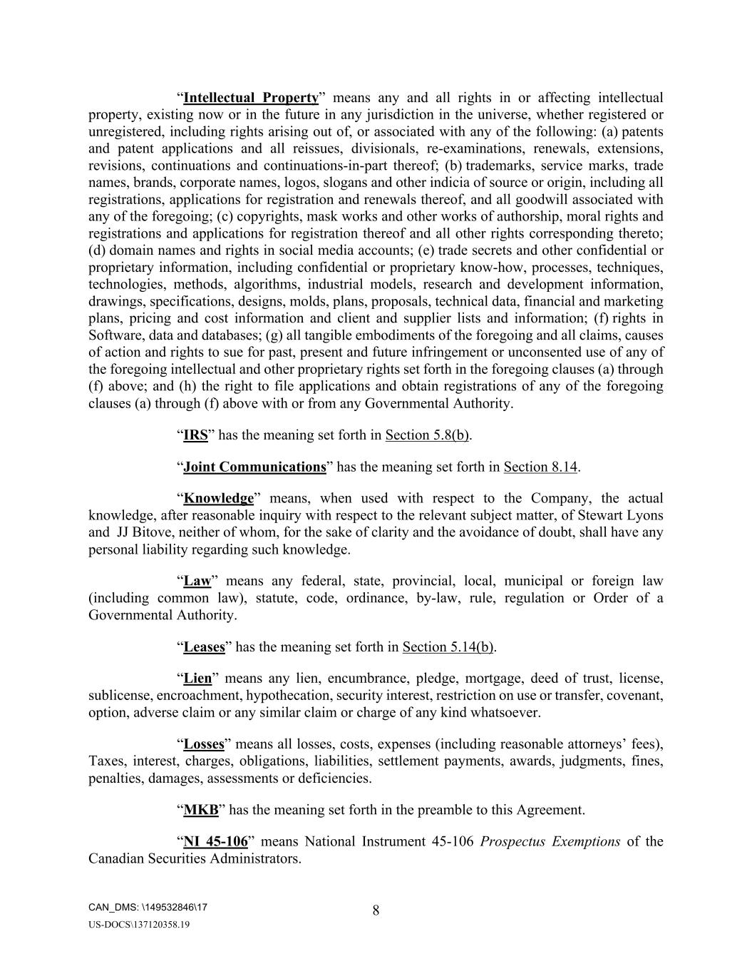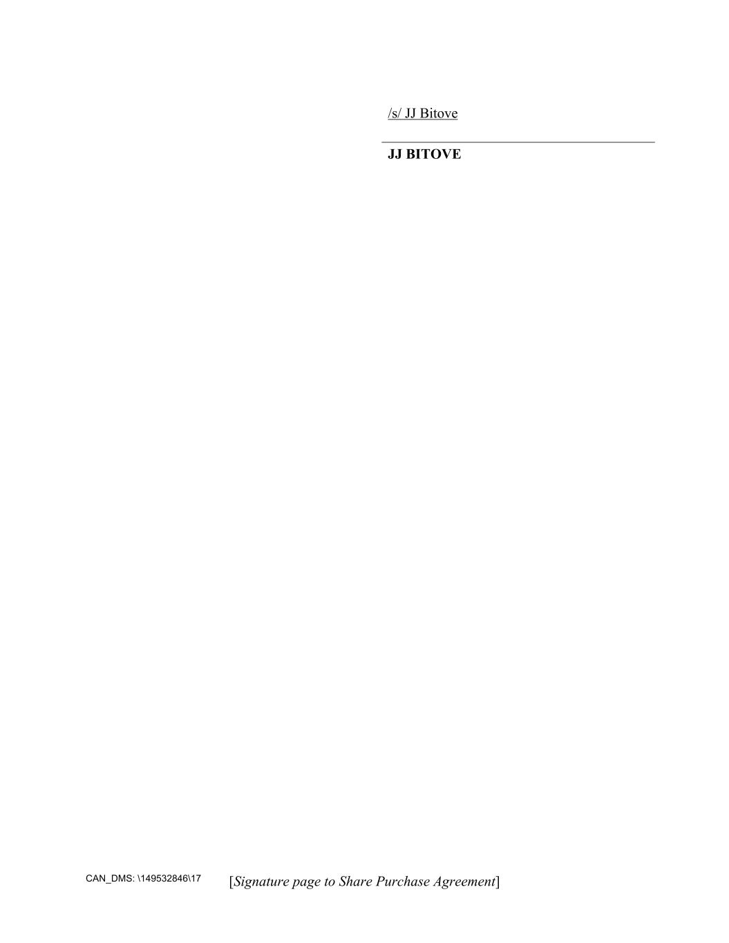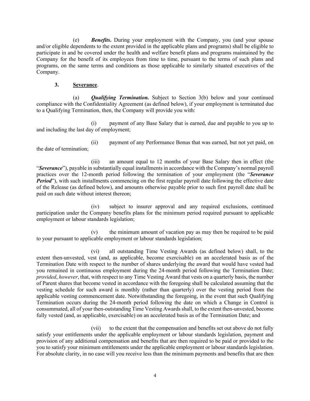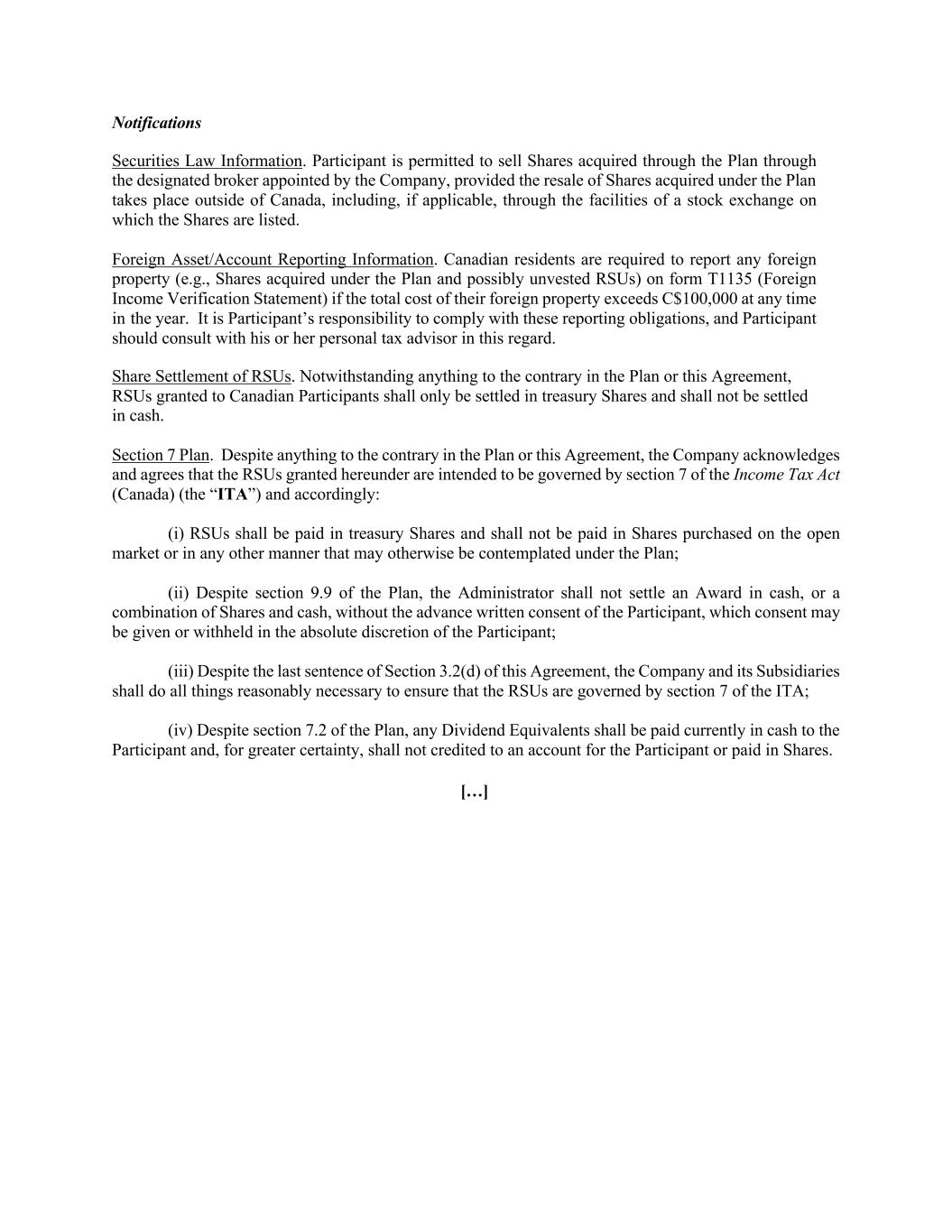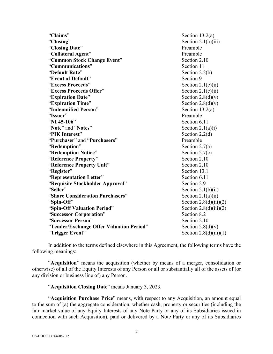 Under the Letter Agreements, each executive is entitled to receive an annual base salary of $682,000 CAD, pro-rated for any partial year of employment. In addition, during calendar years 2023 and 2024, the executives are eligible to earn annual and quarterly cash performance bonuses (each, a “performance bonus”) based on the achievement of adjusted EBITDA, free cash flow and net revenue goals. The maximum potential bonus opportunity for Messrs. Lyons and Washinushi for a single calendar year is equal to $550,400 CAD (for each of 2023 and 2024). In addition, Mr. Washinushi is entitled to receive a $100,000 CAD signing bonus, which must be repaid, in whole or in part, in connection with a termination for “cause” or without “good reason” (as defined in the applicable Letter Agreement) prior to the second anniversary of his employment start date.