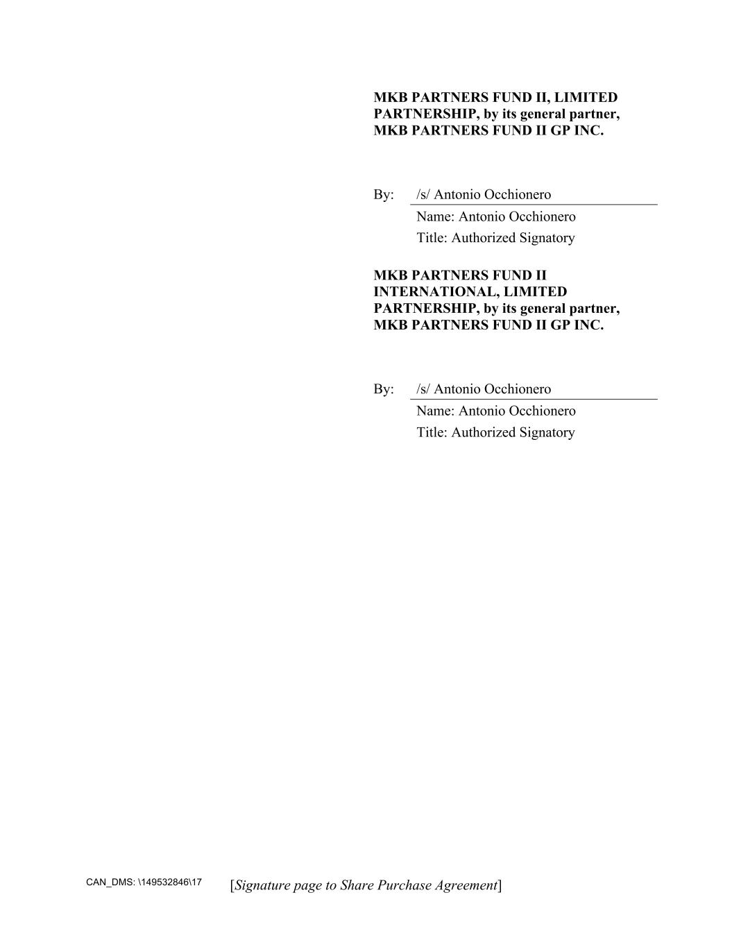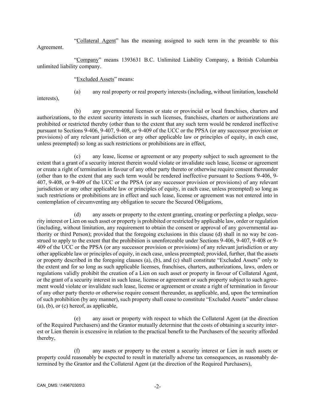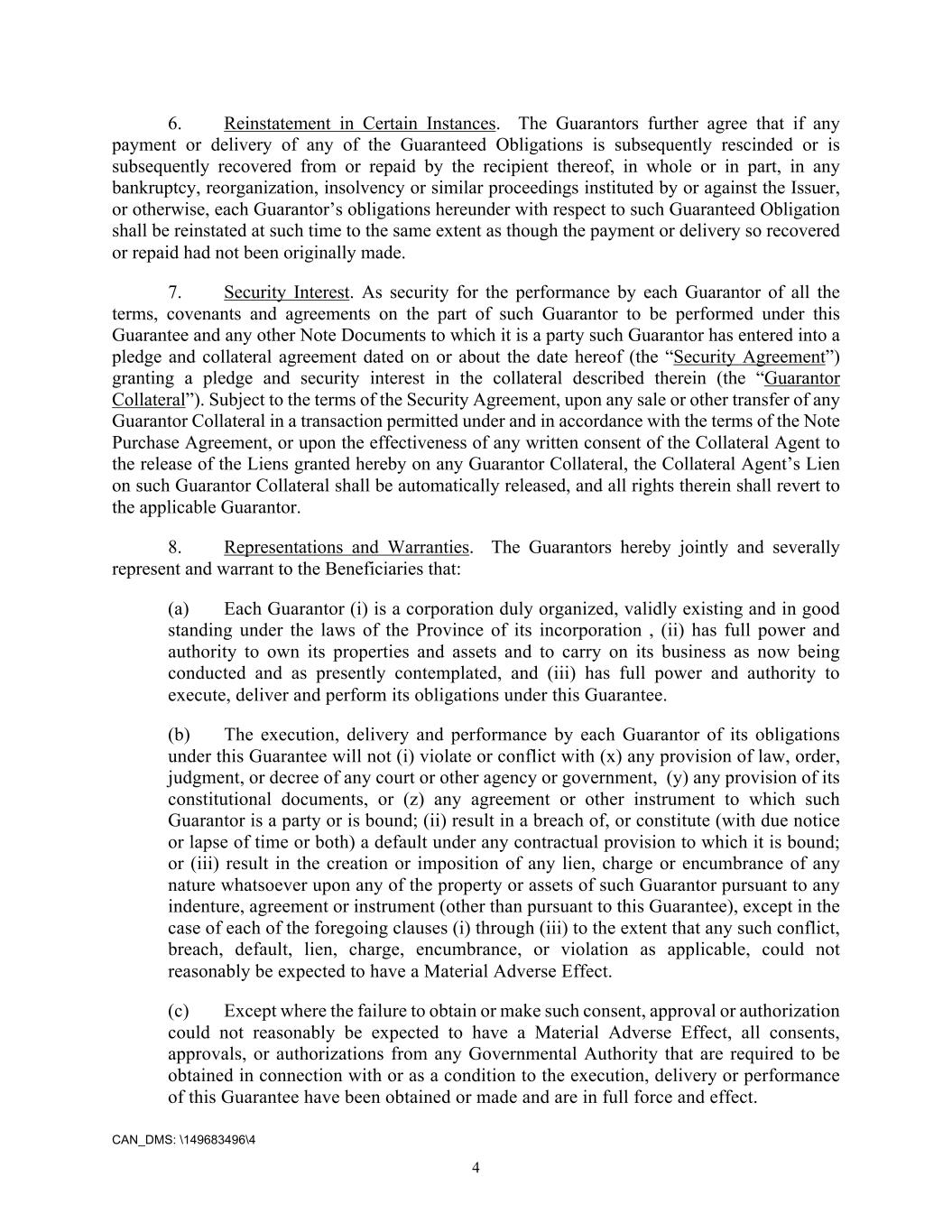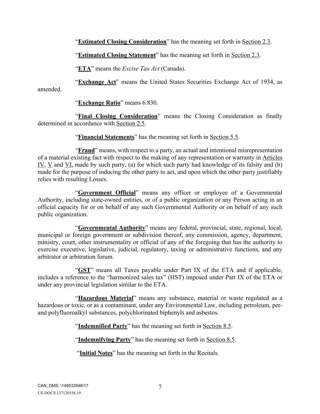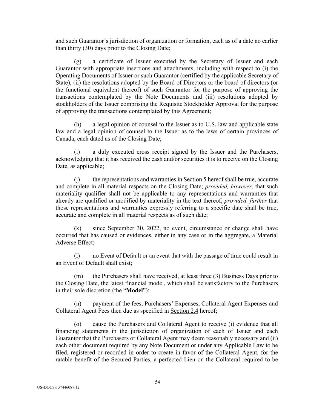 Under the Letter Agreements, each executive is entitled to receive an annual base salary of $682,000 CAD, pro-rated for any partial year of employment. In addition, during calendar years 2023 and 2024, the executives are eligible to earn annual and quarterly cash performance bonuses (each, a “performance bonus”) based on the achievement of adjusted EBITDA, free cash flow and net revenue goals. The maximum potential bonus opportunity for Messrs. Lyons and Washinushi for a single calendar year is equal to $550,400 CAD (for each of 2023 and 2024). In addition, Mr. Washinushi is entitled to receive a $100,000 CAD signing bonus, which must be repaid, in whole or in part, in connection with a termination for “cause” or without “good reason” (as defined in the applicable Letter Agreement) prior to the second anniversary of his employment start date.