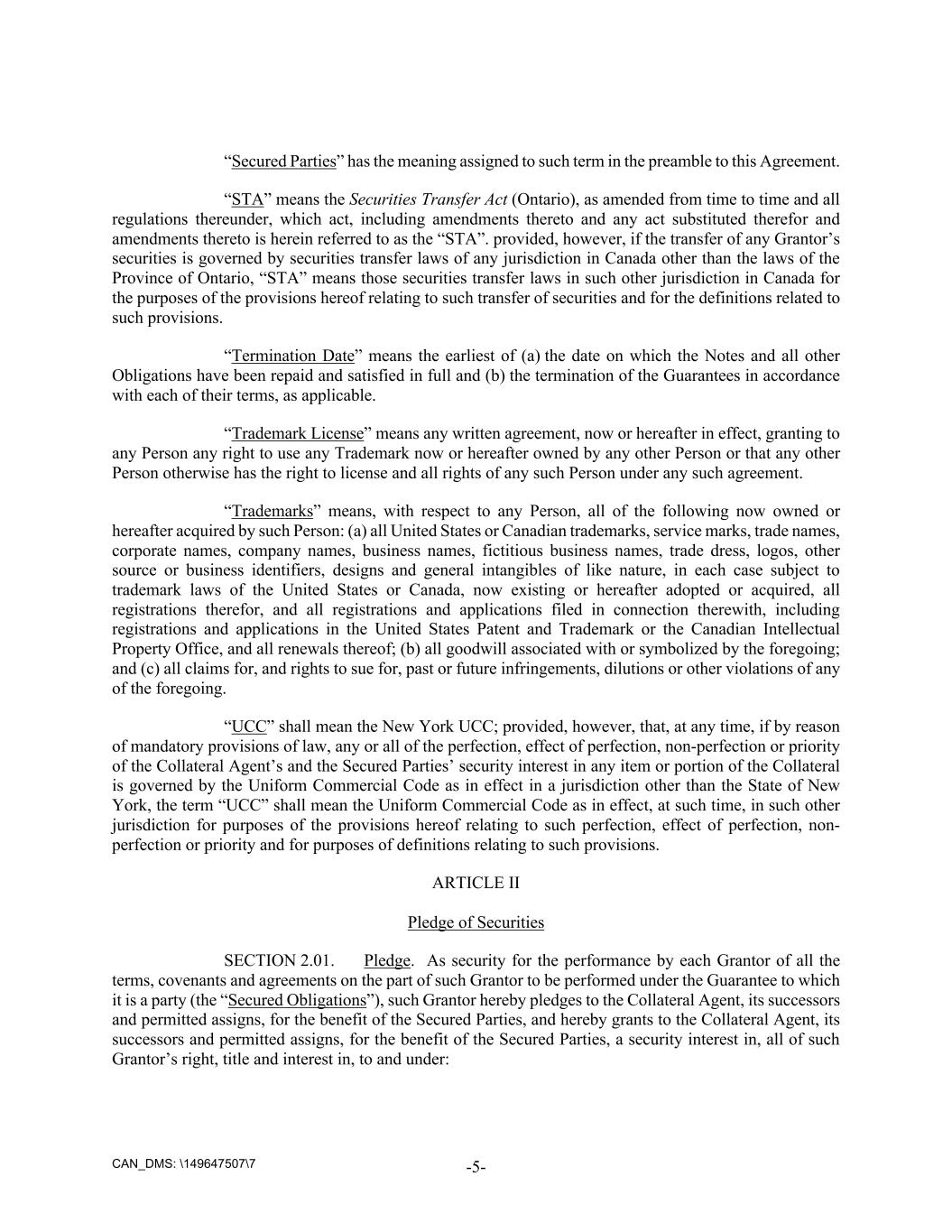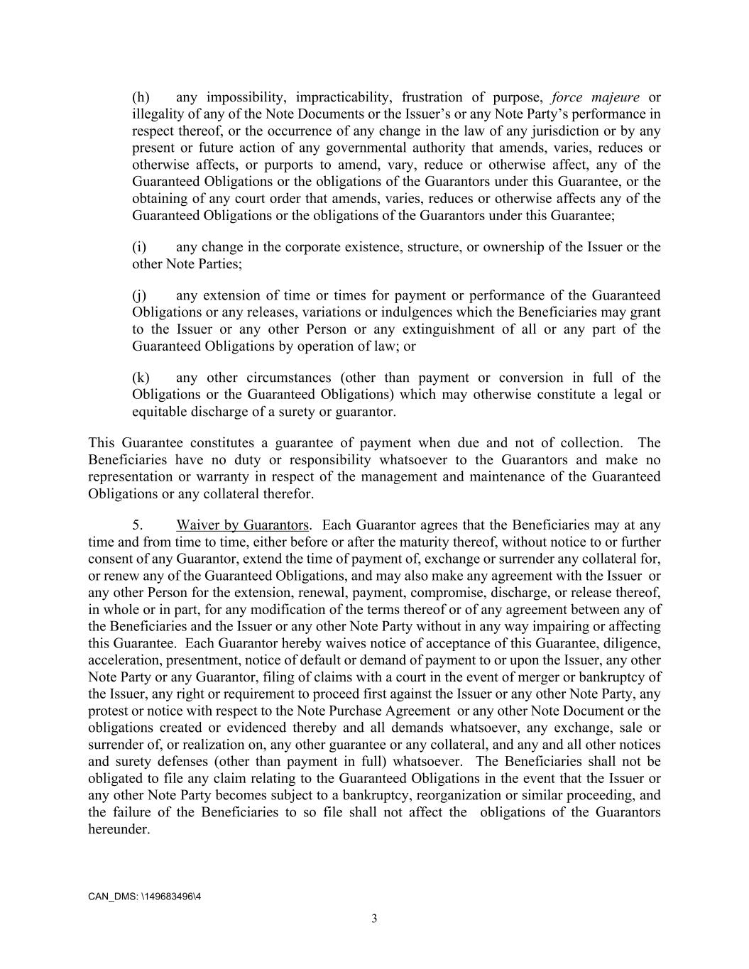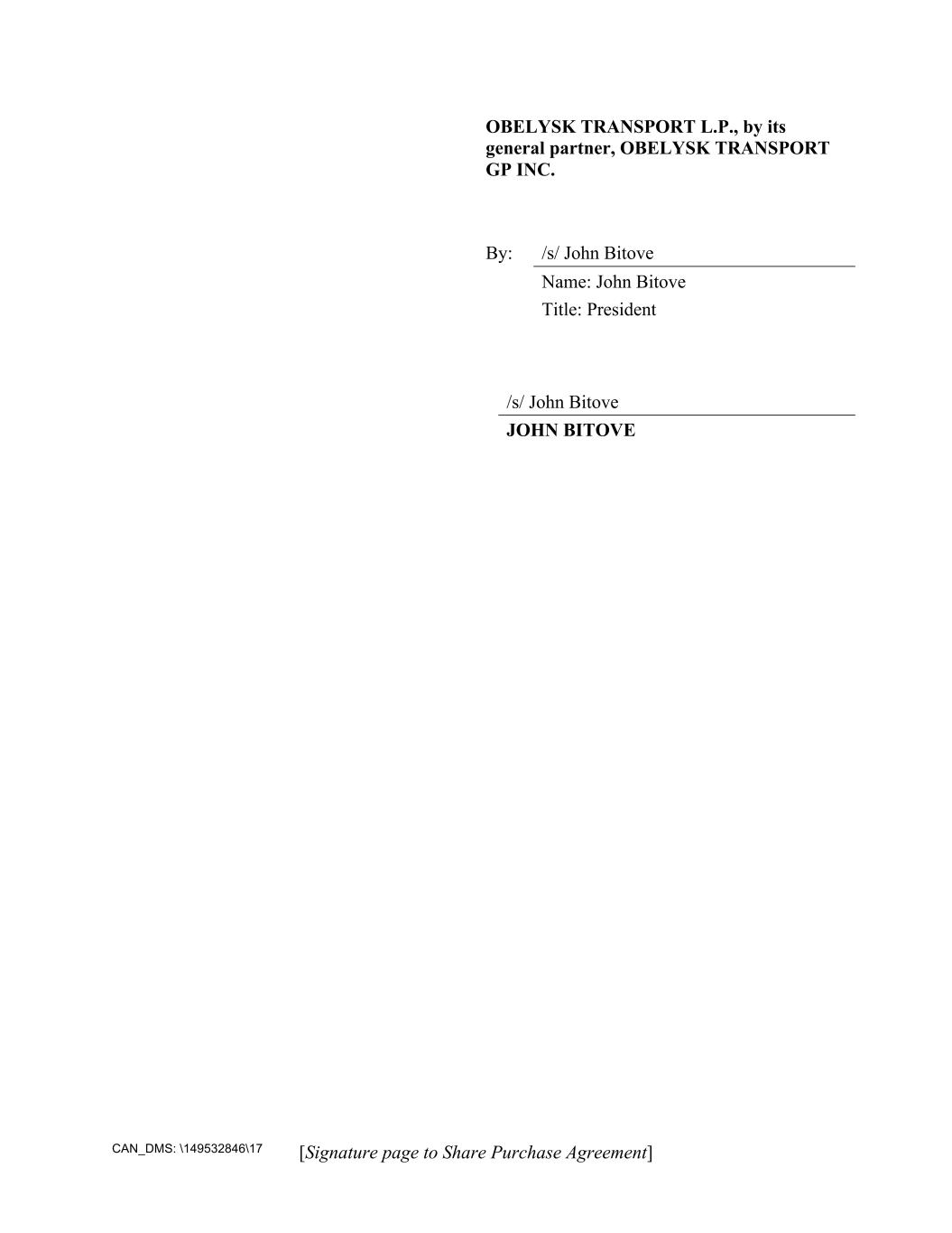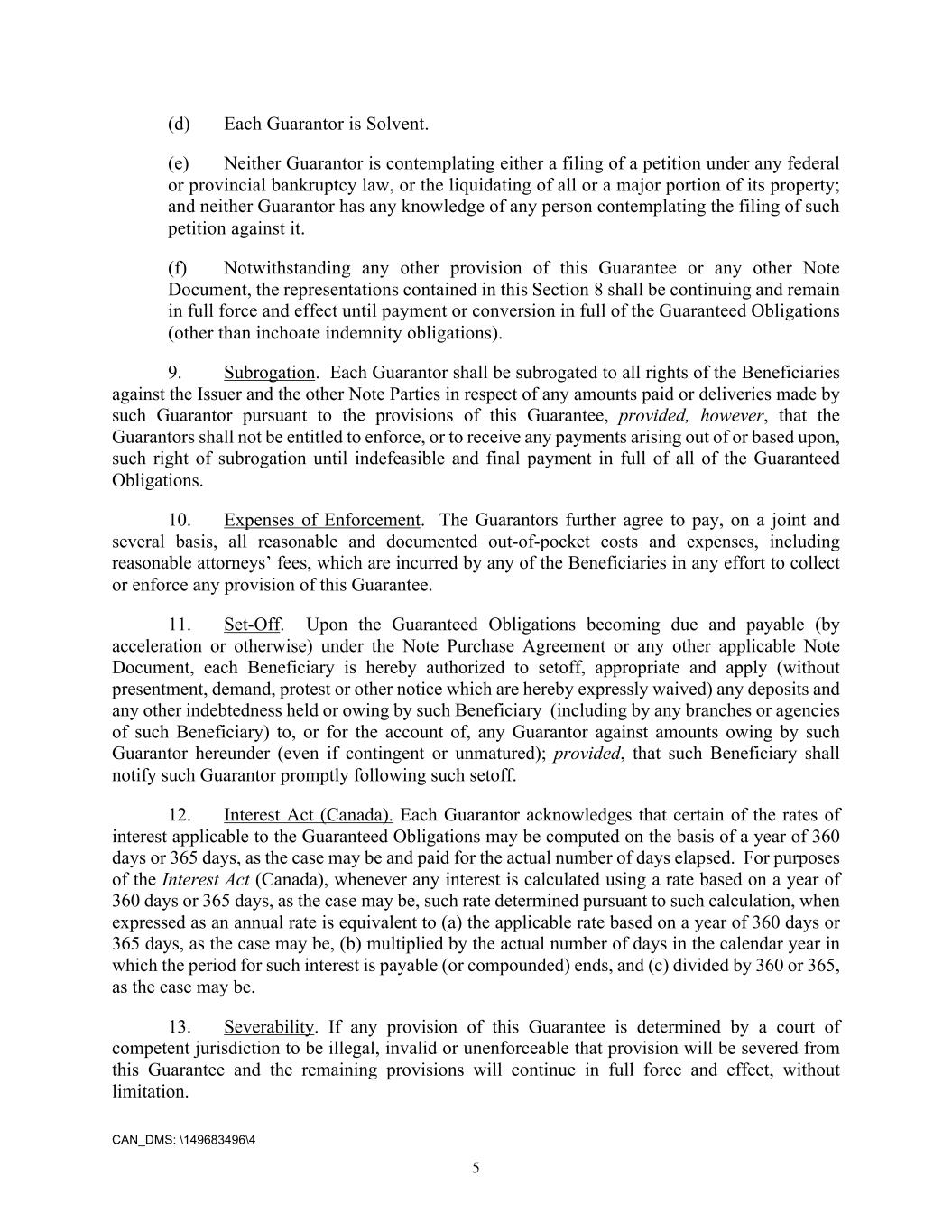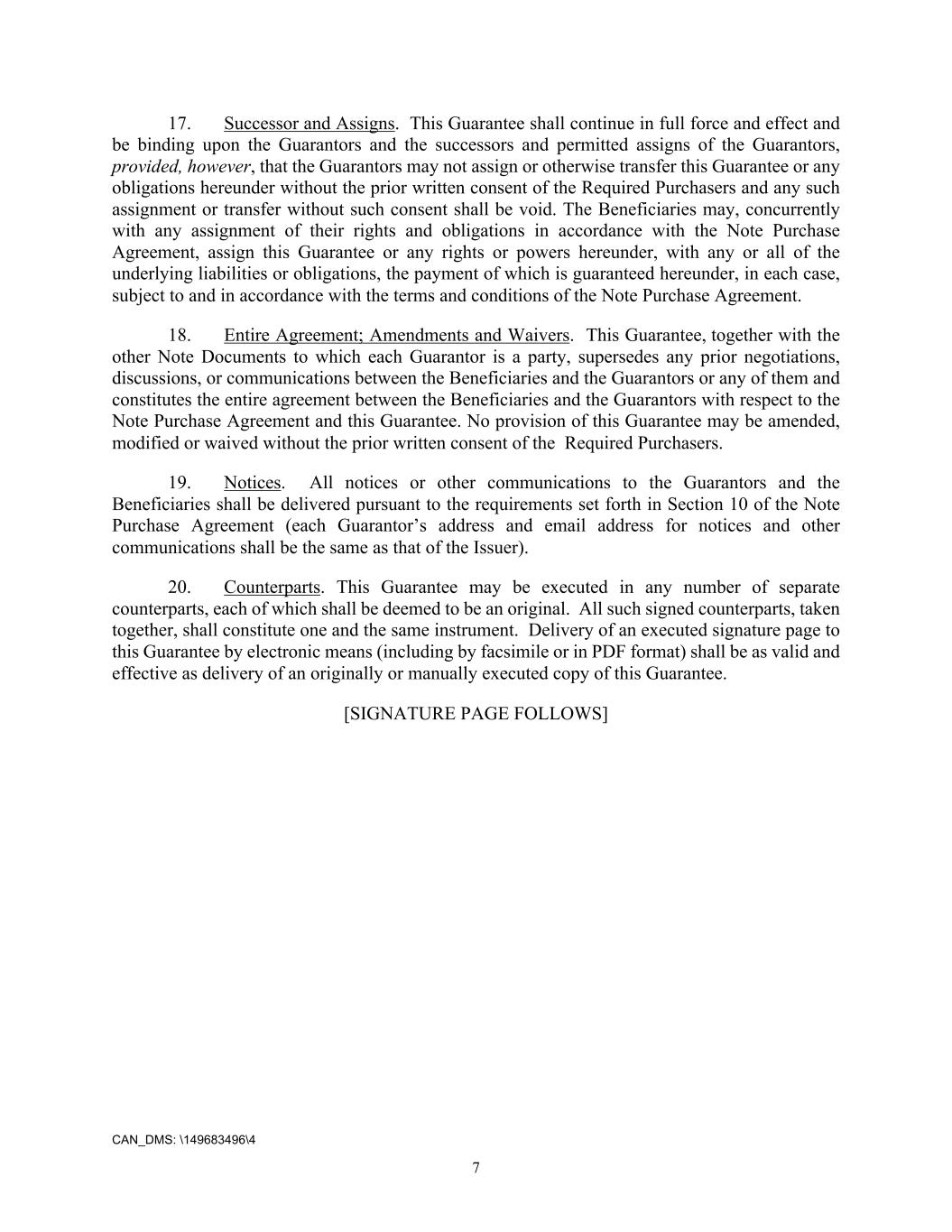 Under the Letter Agreements, each executive is entitled to receive an annual base salary of $682,000 CAD, pro-rated for any partial year of employment. In addition, during calendar years 2023 and 2024, the executives are eligible to earn annual and quarterly cash performance bonuses (each, a “performance bonus”) based on the achievement of adjusted EBITDA, free cash flow and net revenue goals. The maximum potential bonus opportunity for Messrs. Lyons and Washinushi for a single calendar year is equal to $550,400 CAD (for each of 2023 and 2024). In addition, Mr. Washinushi is entitled to receive a $100,000 CAD signing bonus, which must be repaid, in whole or in part, in connection with a termination for “cause” or without “good reason” (as defined in the applicable Letter Agreement) prior to the second anniversary of his employment start date.