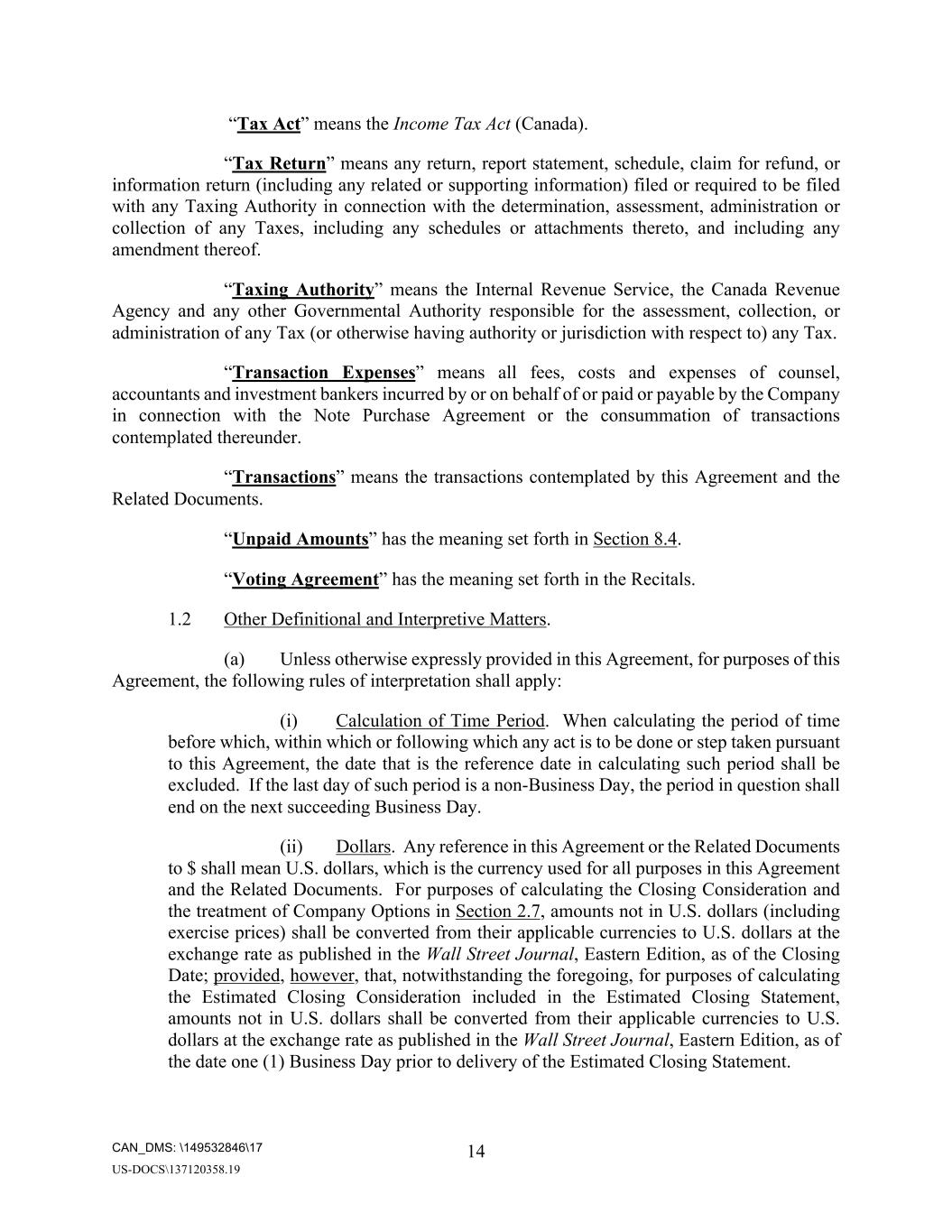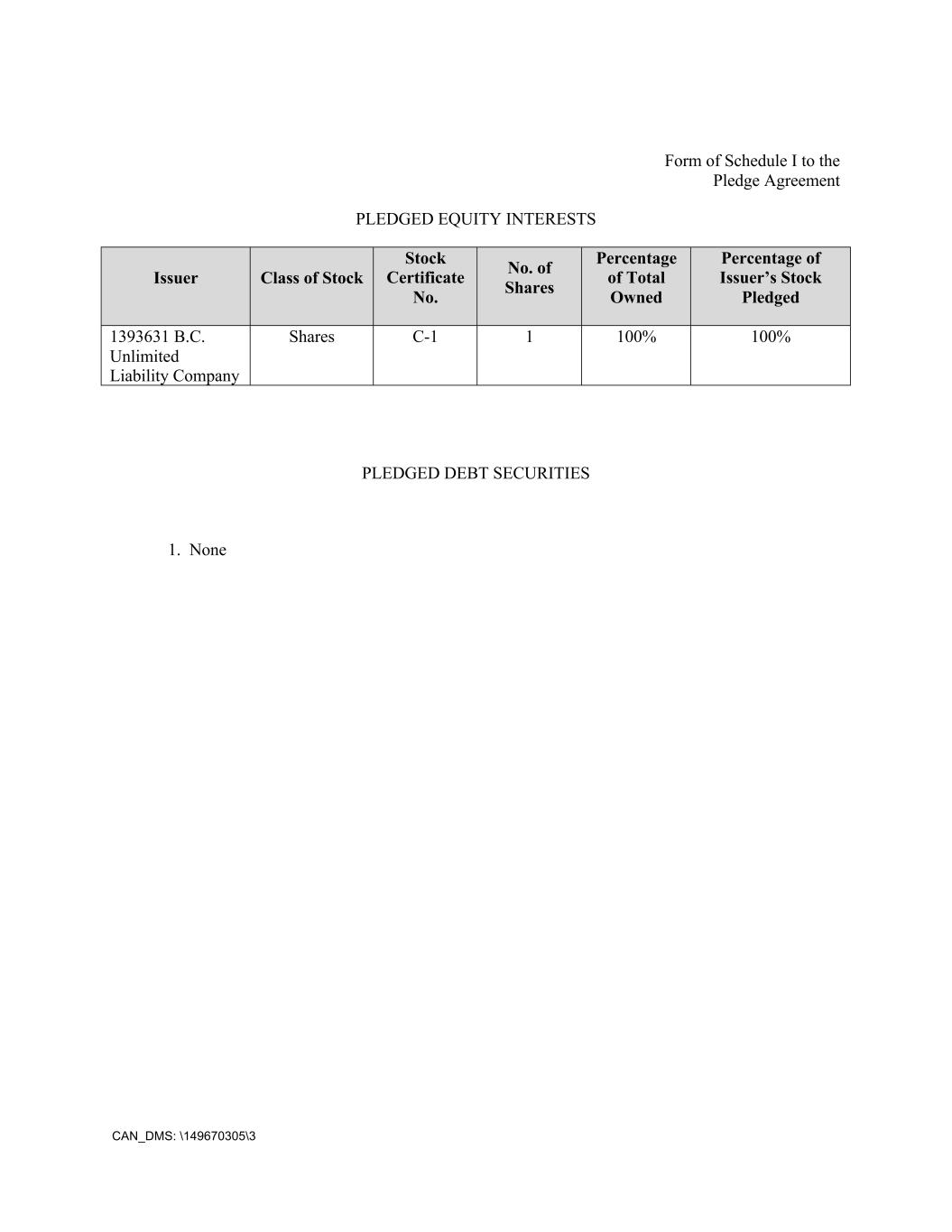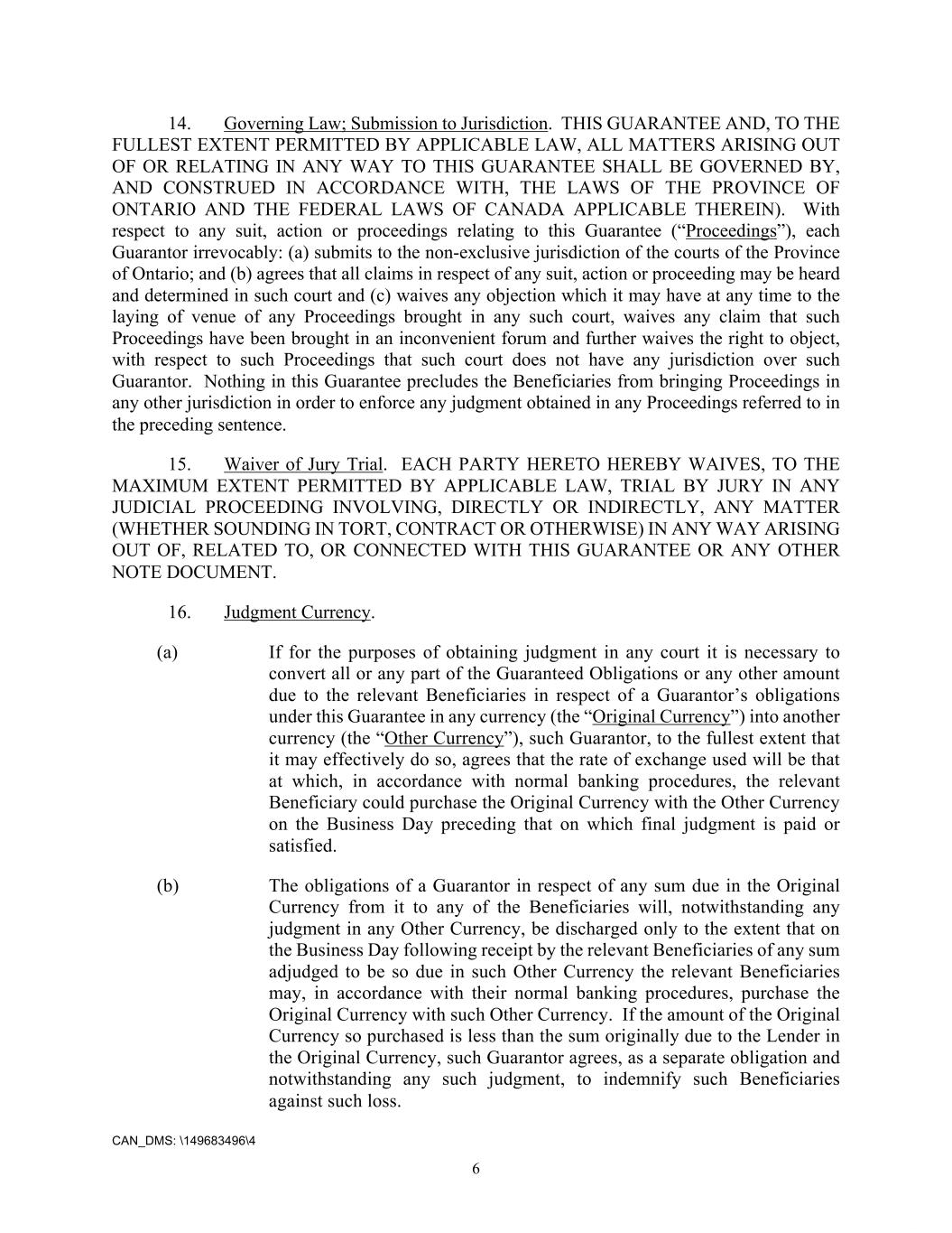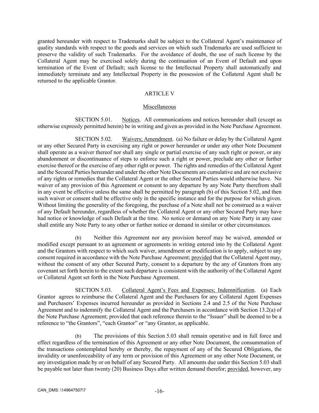 Under the Letter Agreements, each executive is entitled to receive an annual base salary of $682,000 CAD, pro-rated for any partial year of employment. In addition, during calendar years 2023 and 2024, the executives are eligible to earn annual and quarterly cash performance bonuses (each, a “performance bonus”) based on the achievement of adjusted EBITDA, free cash flow and net revenue goals. The maximum potential bonus opportunity for Messrs. Lyons and Washinushi for a single calendar year is equal to $550,400 CAD (for each of 2023 and 2024). In addition, Mr. Washinushi is entitled to receive a $100,000 CAD signing bonus, which must be repaid, in whole or in part, in connection with a termination for “cause” or without “good reason” (as defined in the applicable Letter Agreement) prior to the second anniversary of his employment start date.