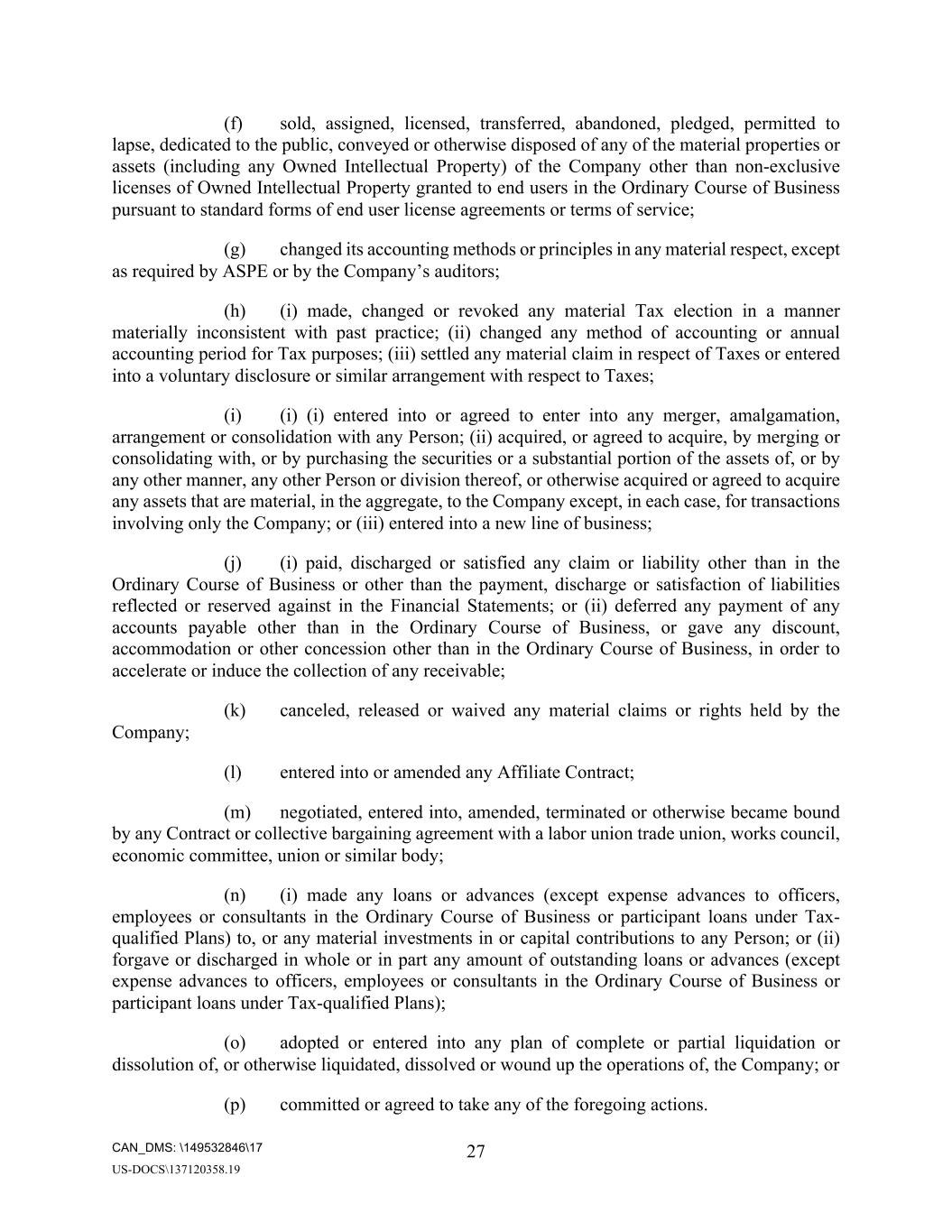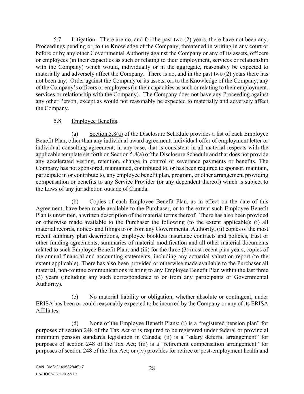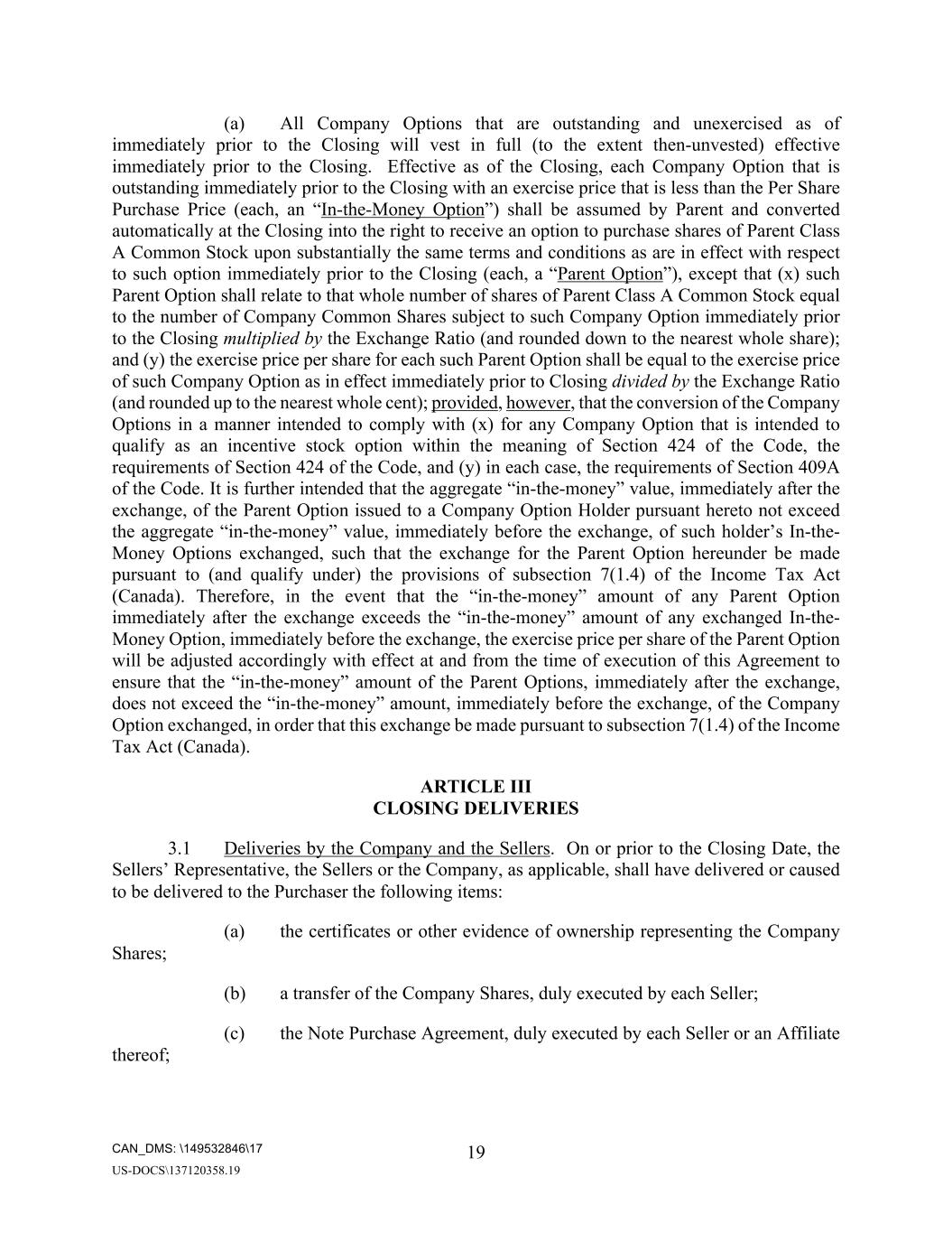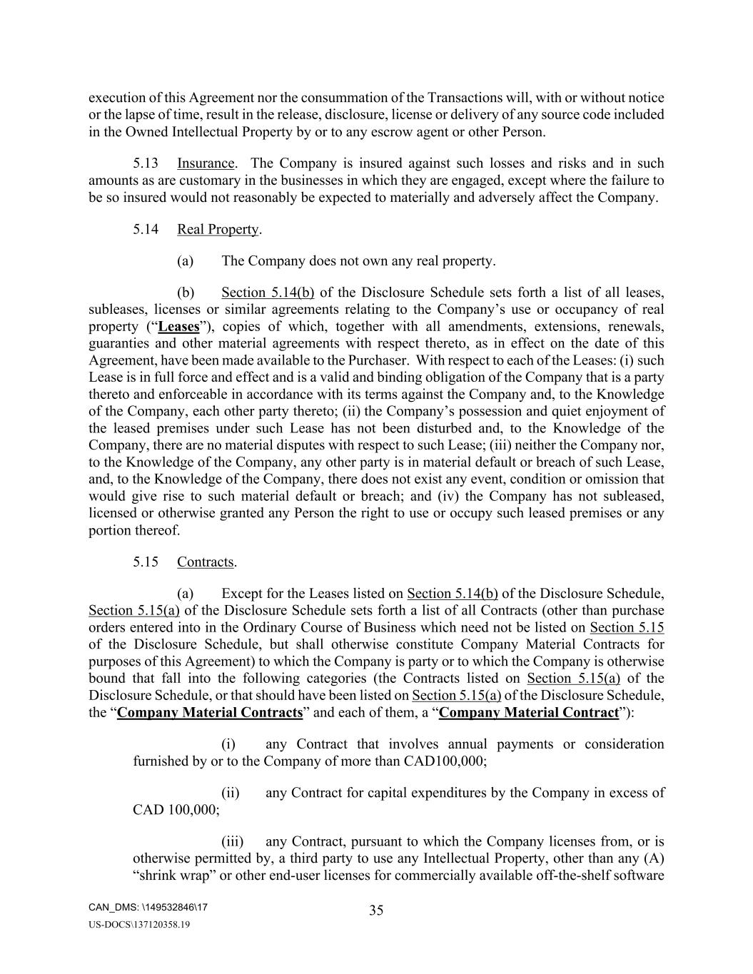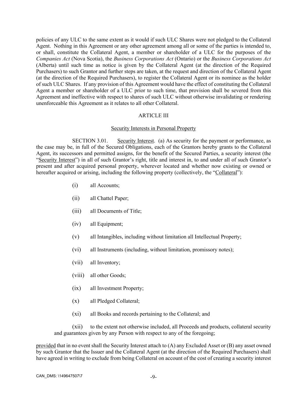 Under the Letter Agreements, each executive is entitled to receive an annual base salary of $682,000 CAD, pro-rated for any partial year of employment. In addition, during calendar years 2023 and 2024, the executives are eligible to earn annual and quarterly cash performance bonuses (each, a “performance bonus”) based on the achievement of adjusted EBITDA, free cash flow and net revenue goals. The maximum potential bonus opportunity for Messrs. Lyons and Washinushi for a single calendar year is equal to $550,400 CAD (for each of 2023 and 2024). In addition, Mr. Washinushi is entitled to receive a $100,000 CAD signing bonus, which must be repaid, in whole or in part, in connection with a termination for “cause” or without “good reason” (as defined in the applicable Letter Agreement) prior to the second anniversary of his employment start date.