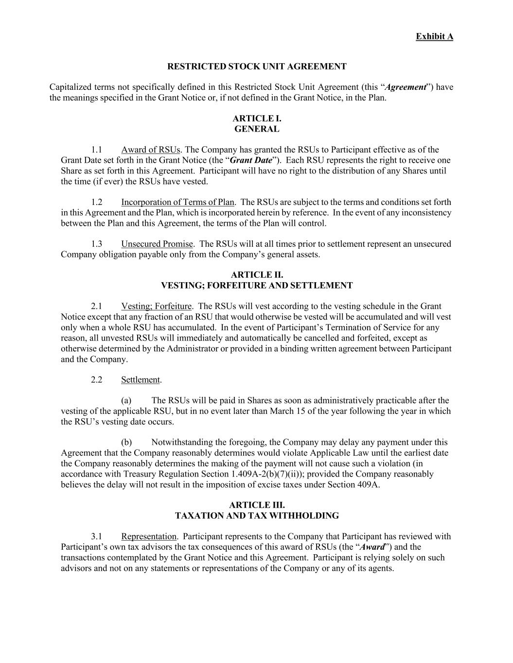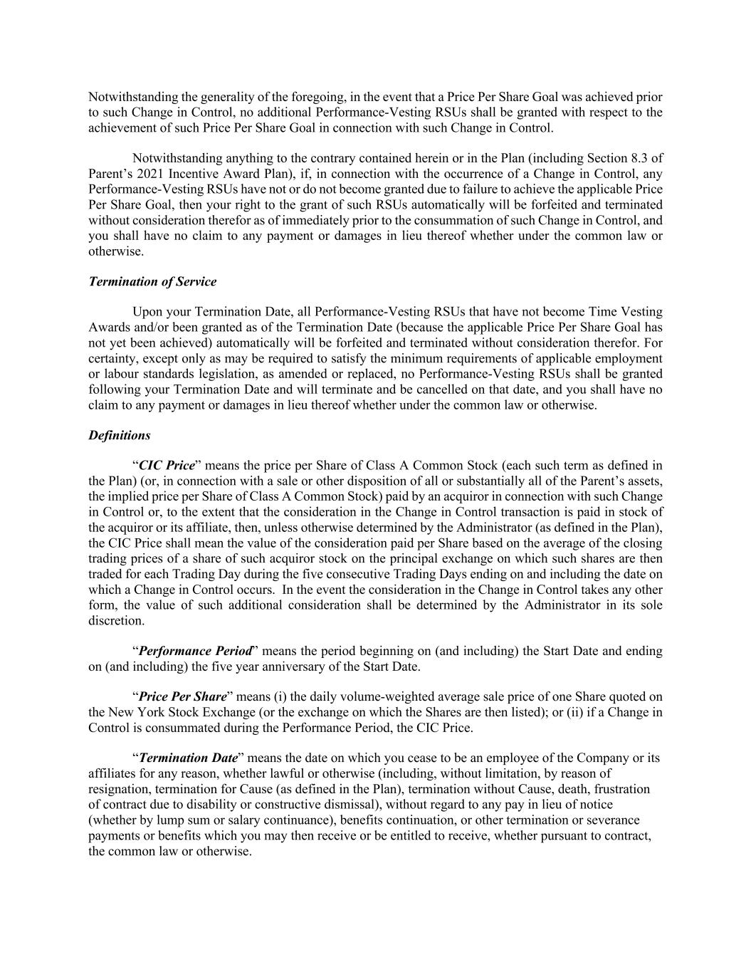 Pursuant to the Letter Agreements, the executives will be granted one or more awards of restricted stock units (“RSUs”) covering shares of Class A Common Stock under the Company’s 2021 Incentive Award Plan or an employment inducement plan, as determined by the Board in its sole discretion (in any case, the “Plan”). The material terms and conditions of such awards are described below.