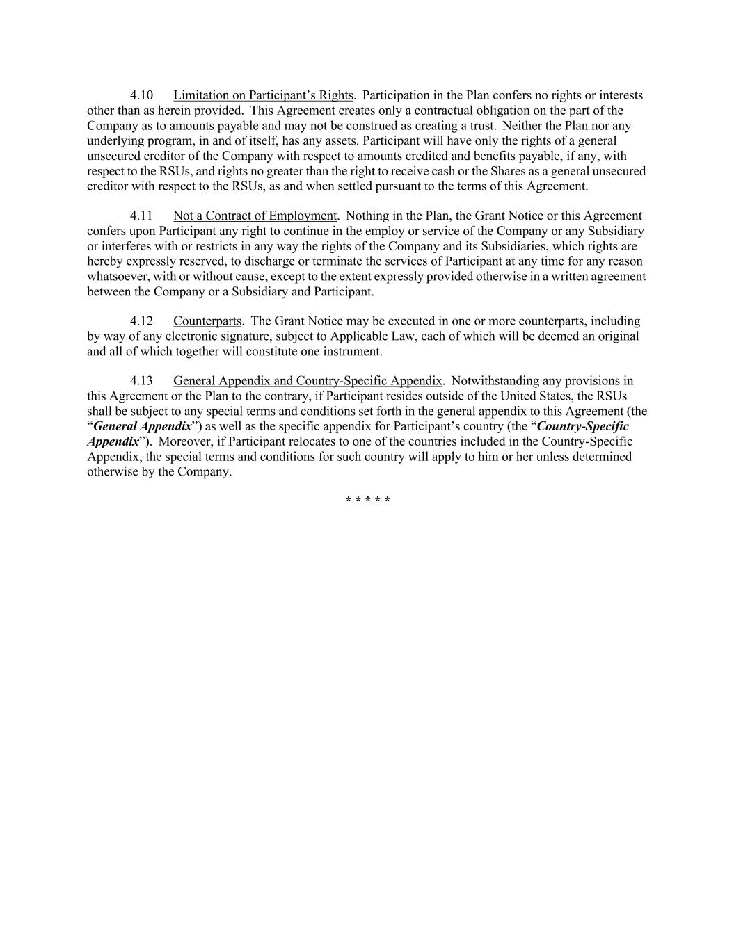 The Preferred Holder is not entitled to vote on any matter on which stockholders of the Company generally are entitled to vote, to receive any dividends on the Series A Preferred Stock, to convert the Preferred Share into any other security of the Company or, subject to certain exceptions, transfer the Preferred Share to any other holder. The Company may redeem the Preferred Share, at its option, for the par value thereof, (i) on or after February 15, 2023 or (ii) upon a breach of certain transfer restrictions.