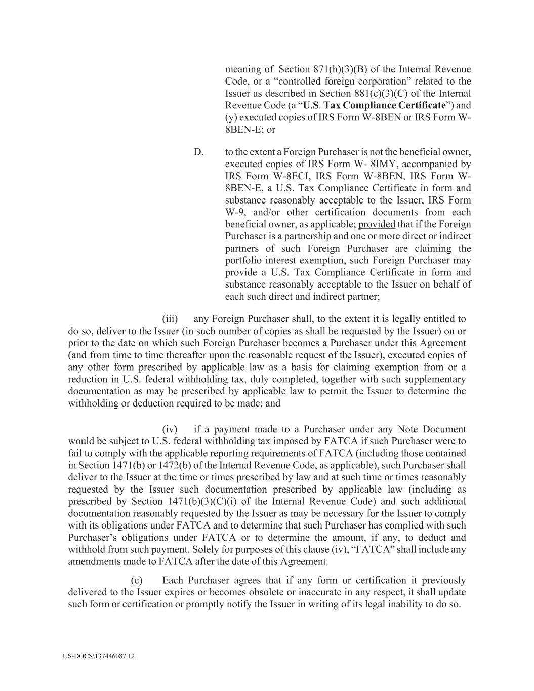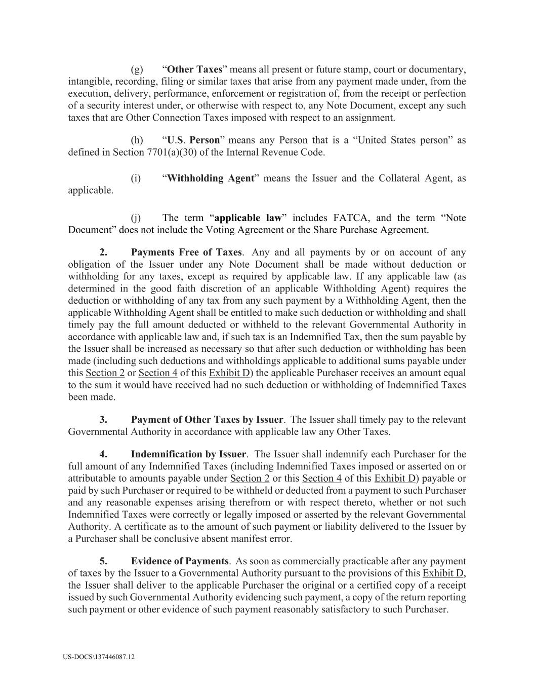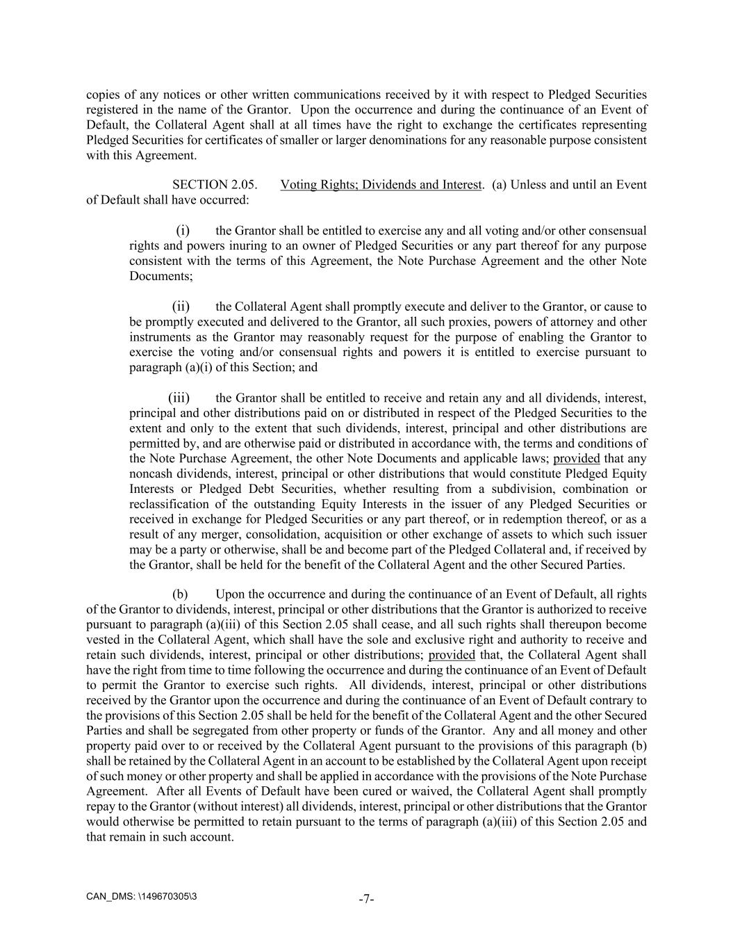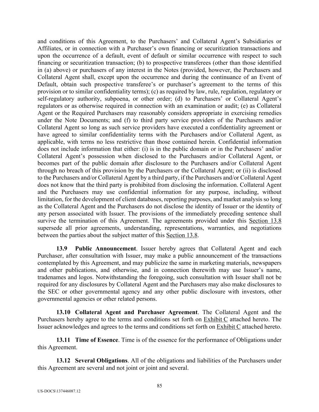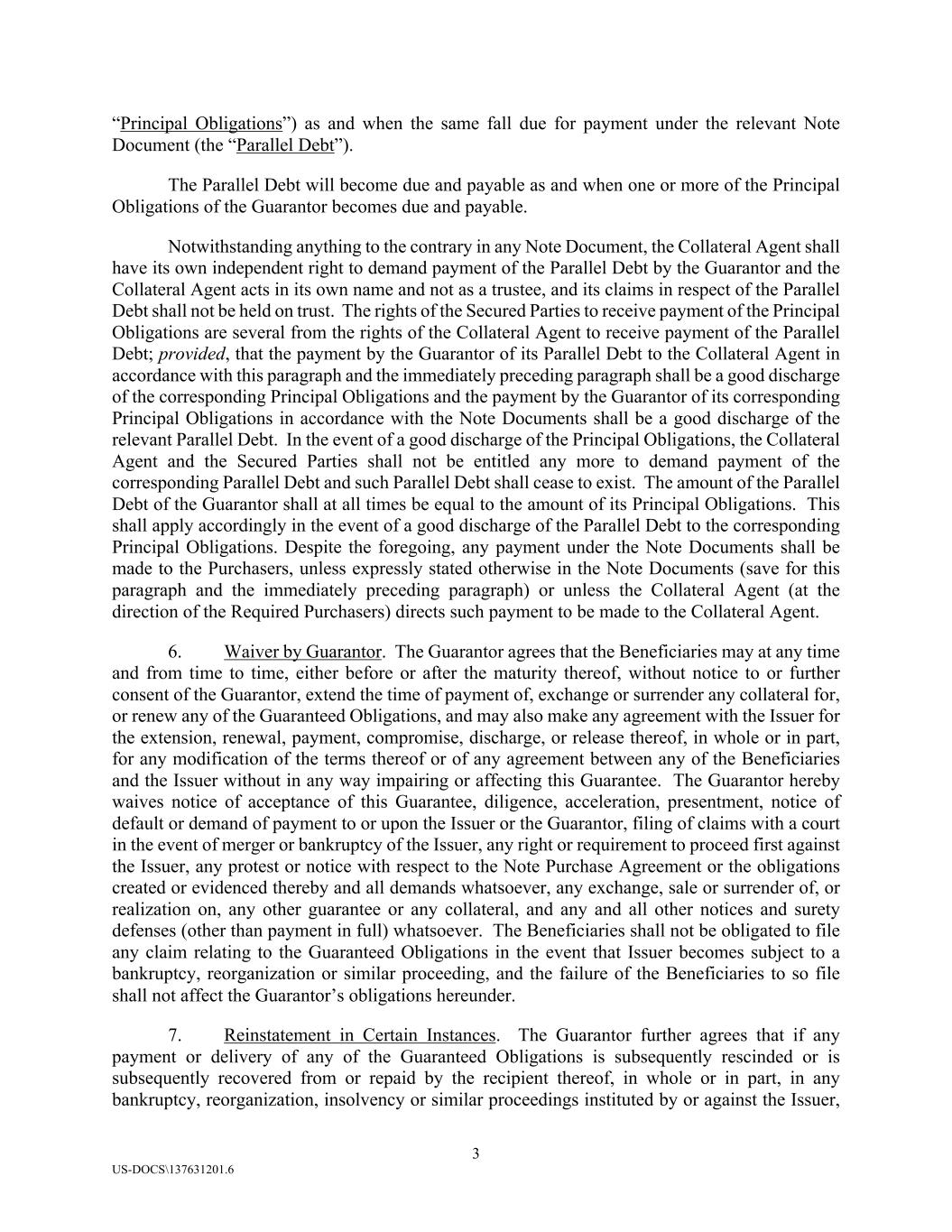 The Company will be required to offer to repurchase Notes from Note Purchasers at the applicable optional redemption price discussed above, together with accrued and unpaid interest, if any, to, but excluding, the applicable repurchase date, in certain circumstances, including following a significant asset disposition or a change of control.
