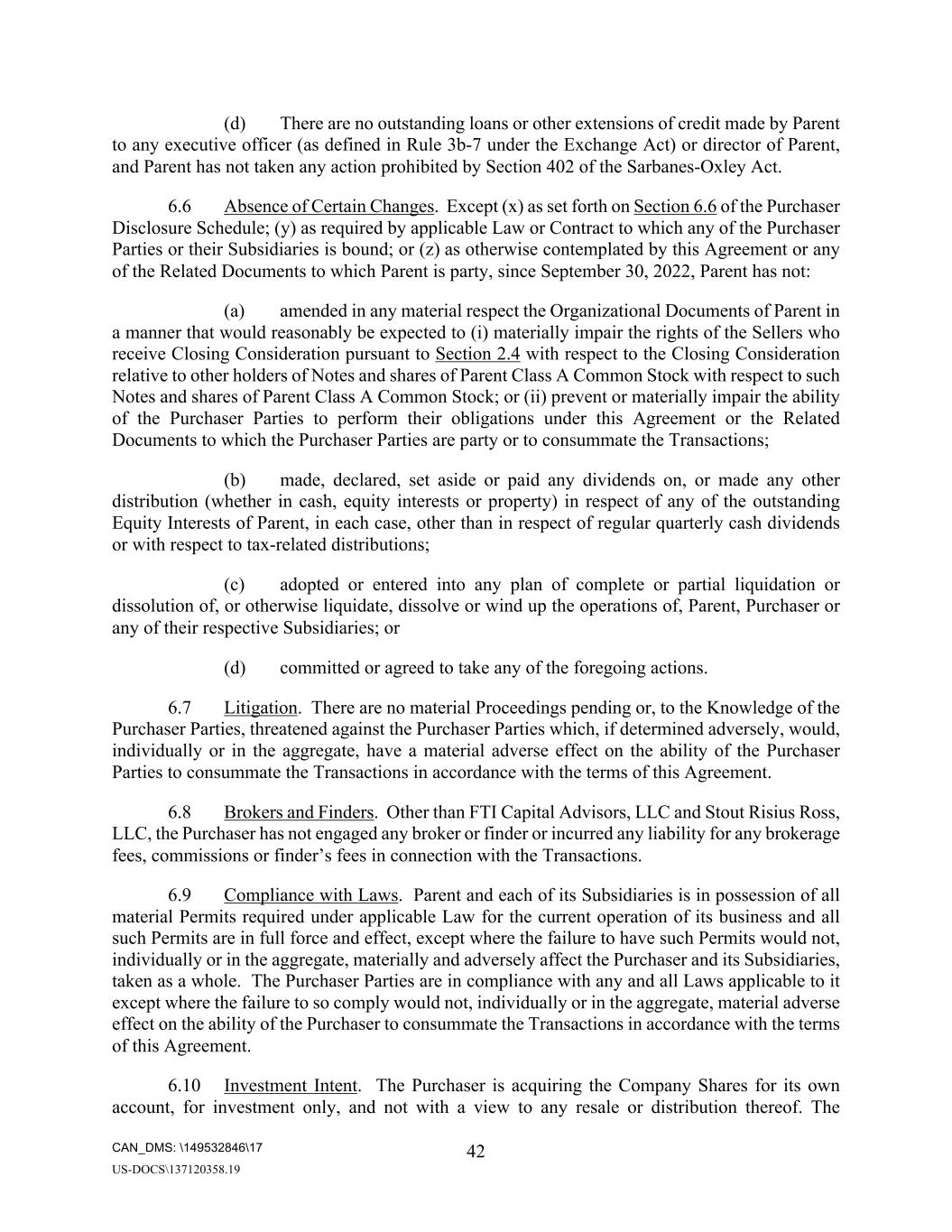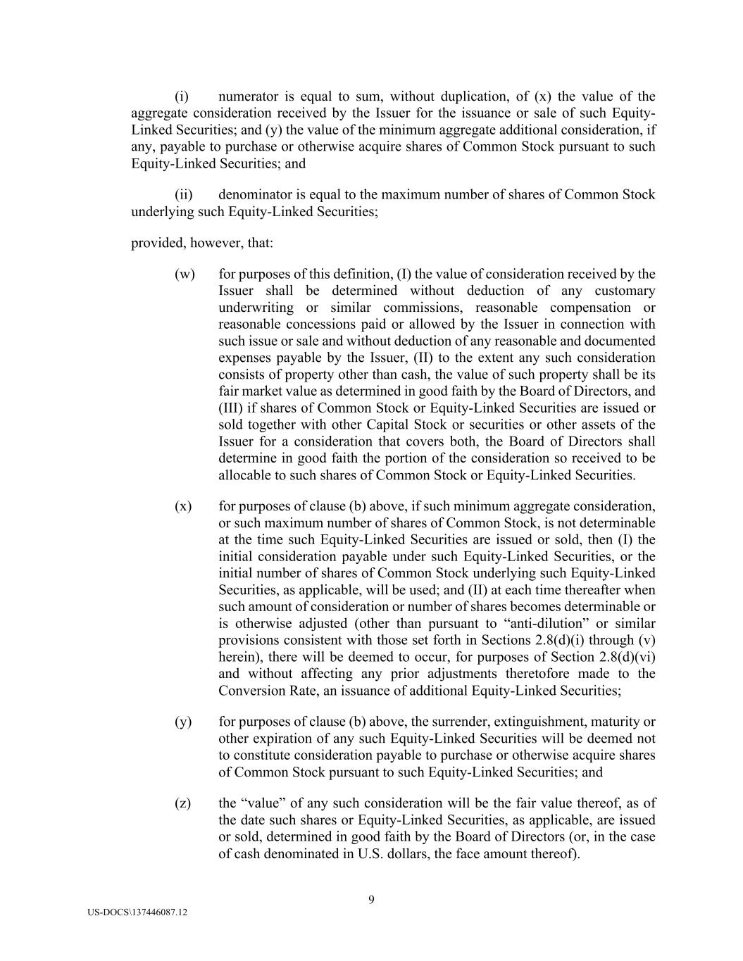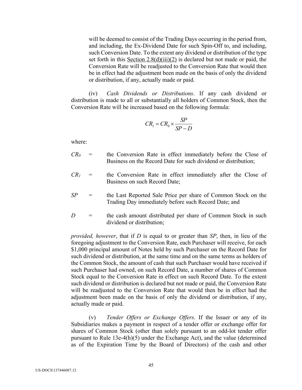 The Voting Agreement will terminate upon the earlier to occur of (a) the date on which the Investors and their affiliates cease to beneficially own, directly or indirectly, 9,860,916 shares of Class A Common Stock (assuming conversion of the Notes into shares of Class A Common Stock in accordance with their terms and subject to appropriate adjustment for any stock splits, stock dividends, combinations, recapitalizations and the like) and (b) mutual written agreement among the parties to the Voting Agreement.