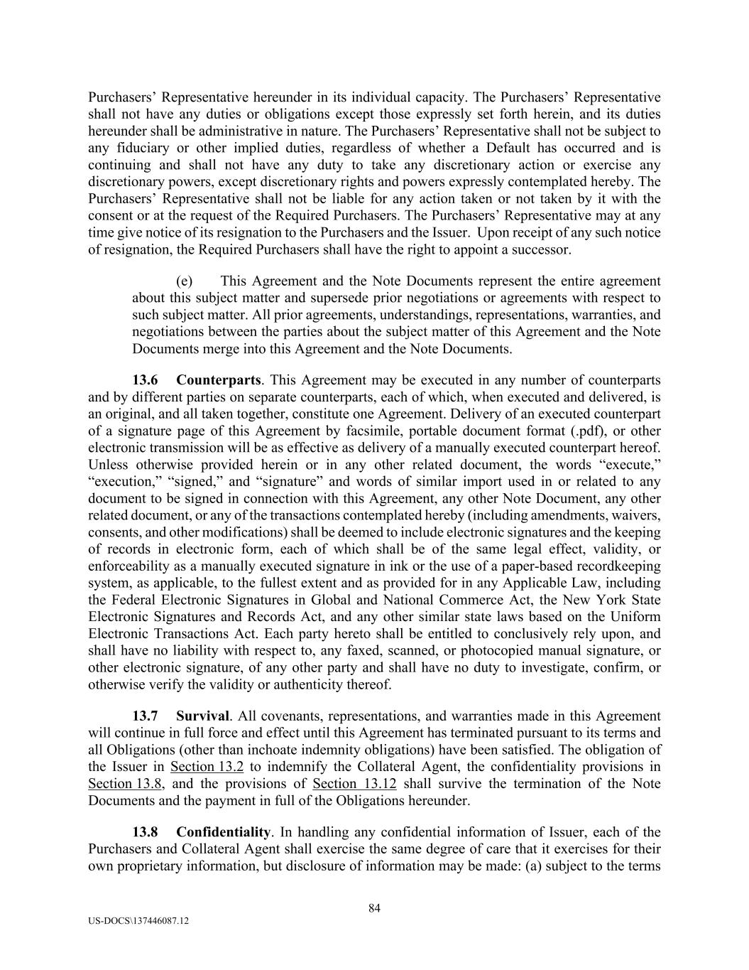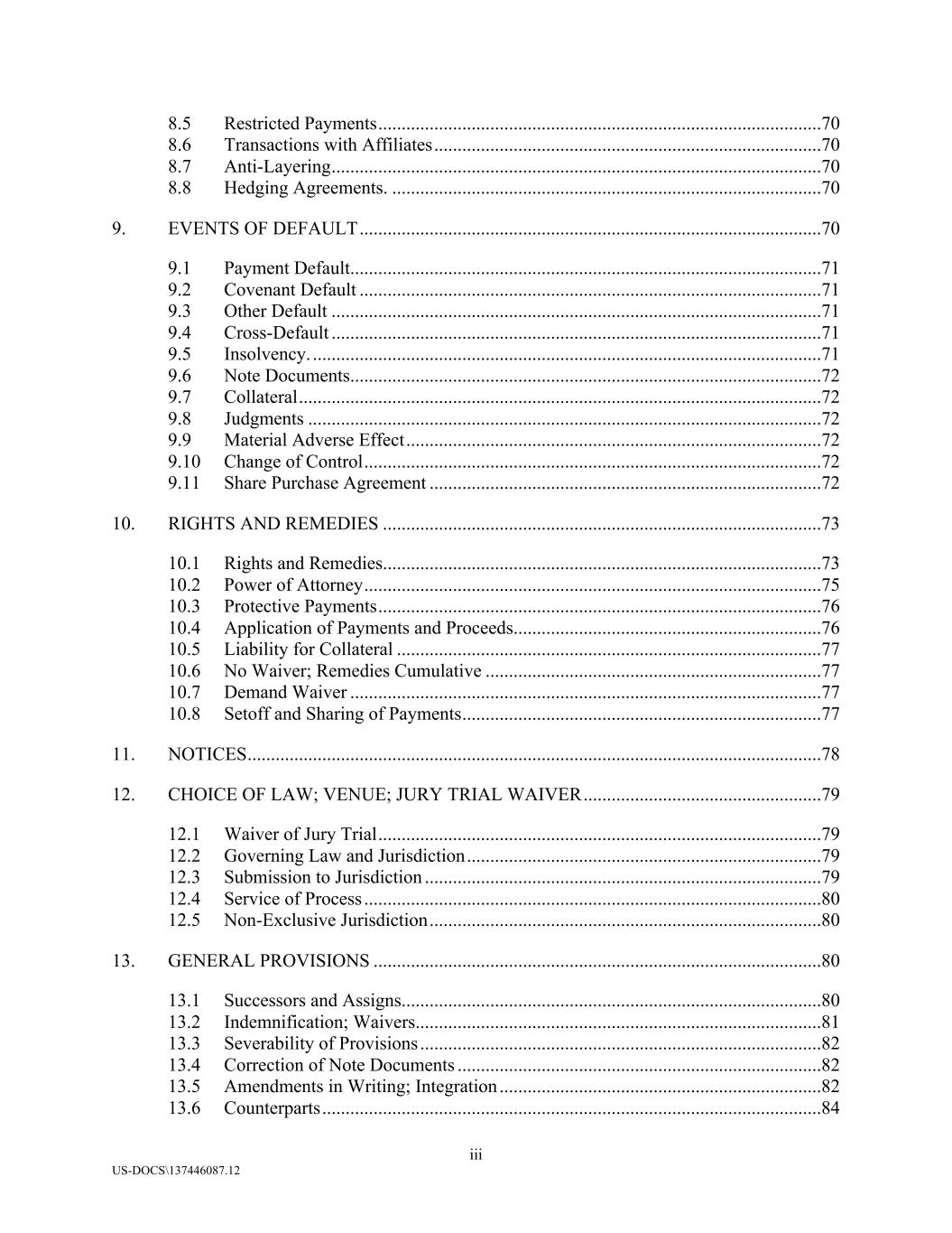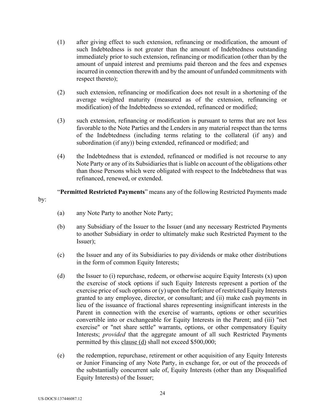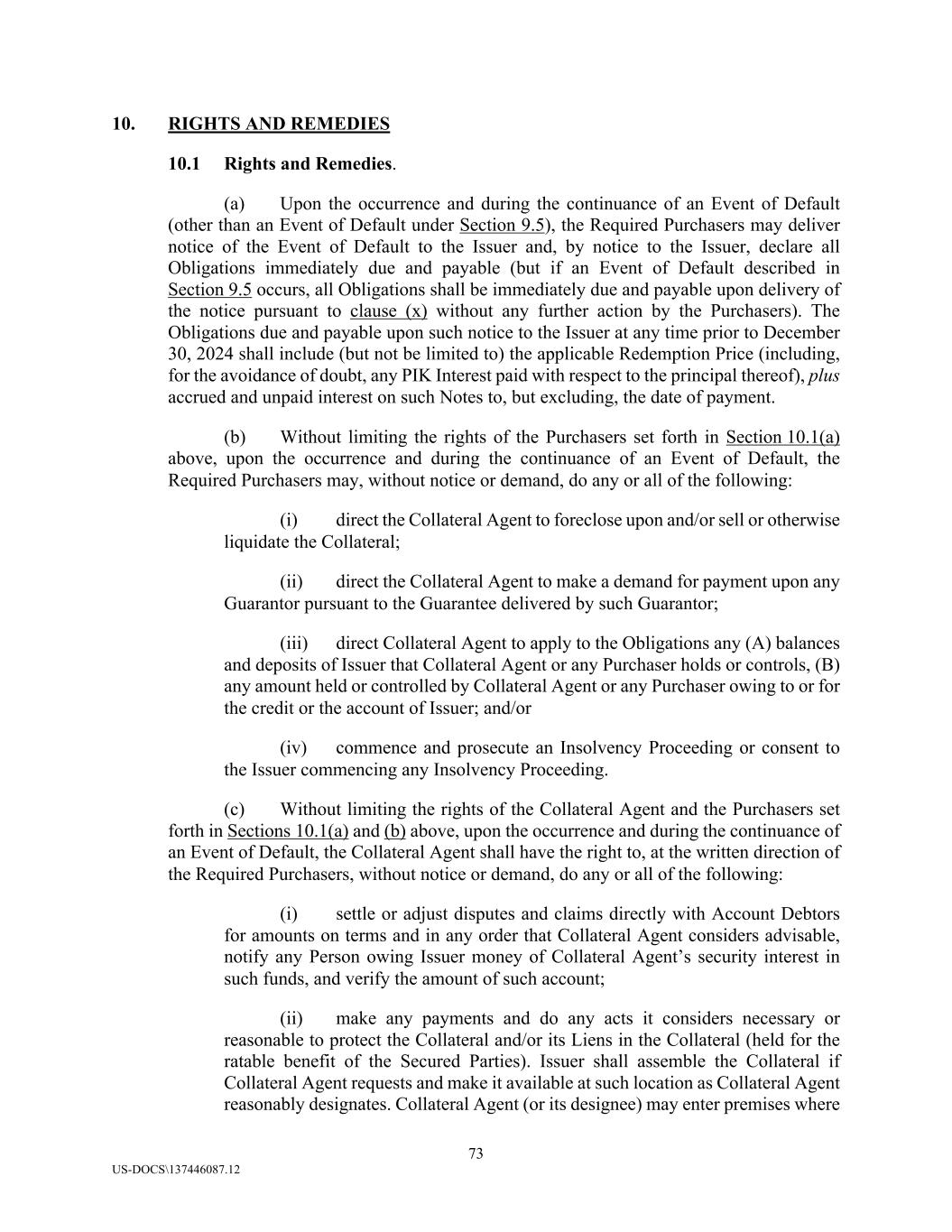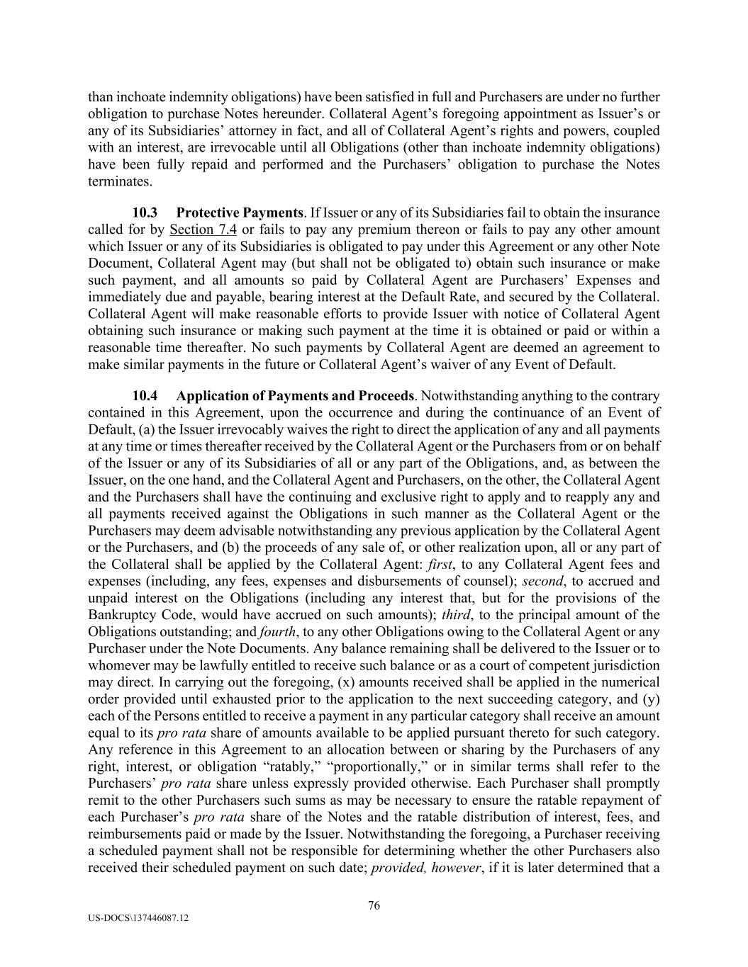The Note Purchase Agreement contains covenants that limit the Company’s (and its subsidiaries’) ability to, among other things: (i) incur additional debt; (ii) pay dividends, redeem stock or make other distributions; (iii) make other restricted payments or investments; (iv) create liens on assets; (v) transfer or sell assets; (vi) engage in mergers or consolidations; (vii) engage in certain transactions with affiliates; (viii) incur indebtedness that is junior in priority to the Amended Loan Agreement and senior to the Note Purchase Agreement; and (ix) enter into certain hedging arrangements. Most of these restrictions are subject to certain minimum thresholds and exceptions. The Note Purchase Agreement also contains events of default (subject, in certain cases, to specified cure periods), after which the Notes be due and payable immediately at the applicable redemption price, including defaults related to payment compliance, covenant compliance, material adverse changes, bankruptcy and insolvency proceedings, cross-defaults to certain other agreements, judgments against the Company, change of control events and lien priority. Upon the occurrence and during the continuance of an event of default, interest will accrue at 18% per annum.