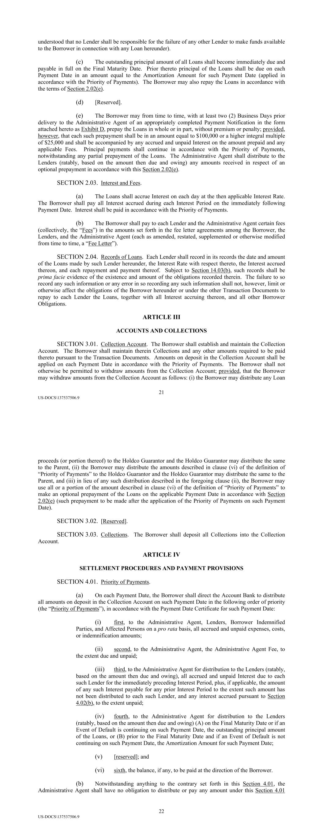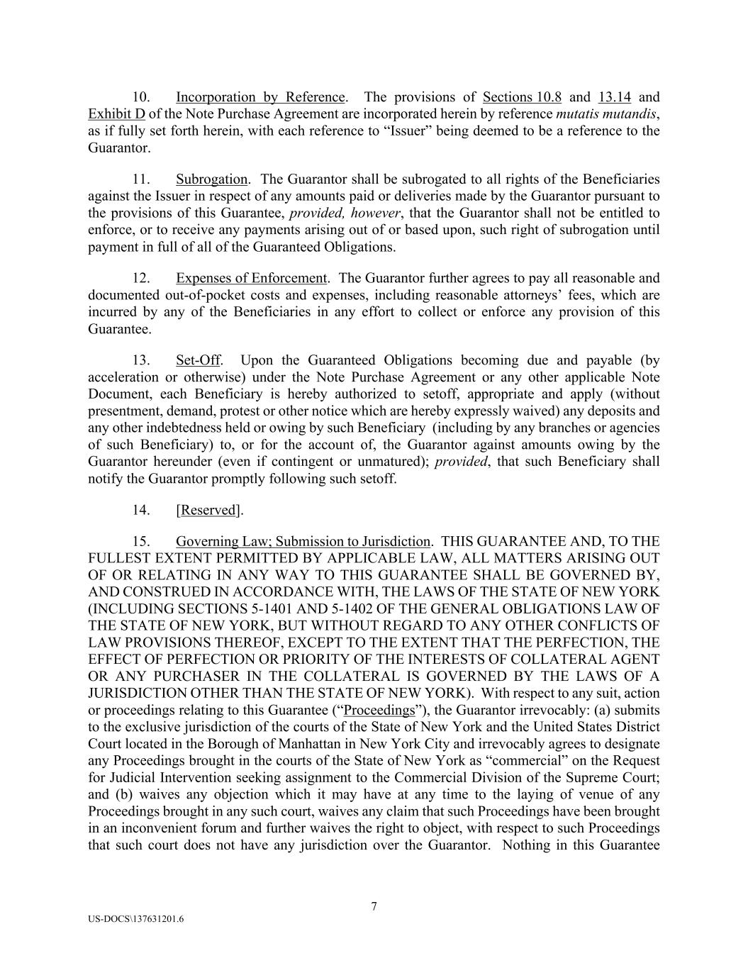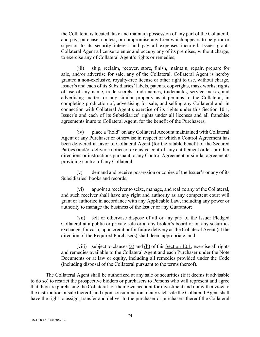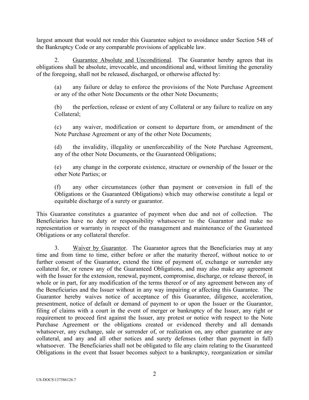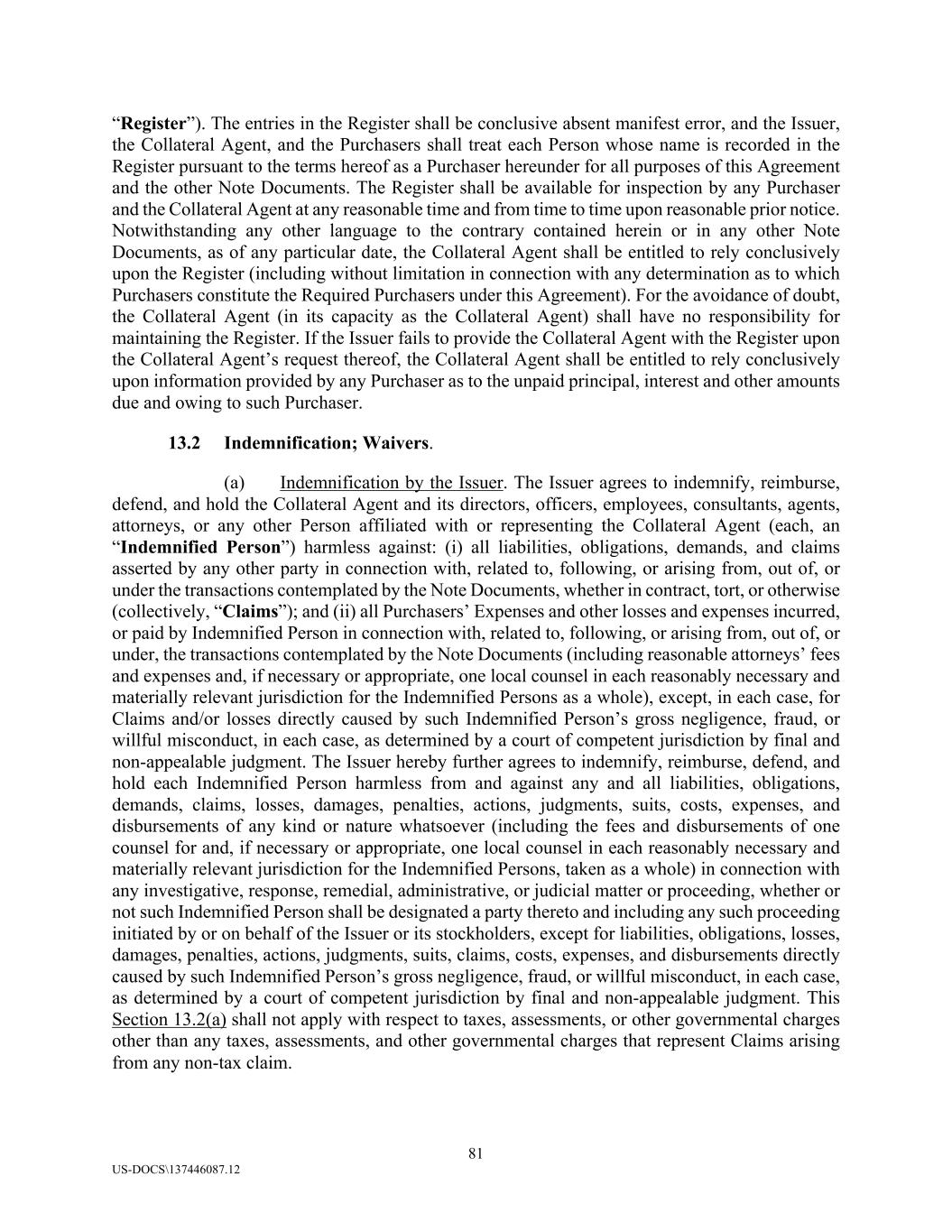 The Note Purchase Agreement contains covenants that limit the Company’s (and its subsidiaries’) ability to, among other things: (i) incur additional debt; (ii) pay dividends, redeem stock or make other distributions; (iii) make other restricted payments or investments; (iv) create liens on assets; (v) transfer or sell assets; (vi) engage in mergers or consolidations; (vii) engage in certain transactions with affiliates; (viii) incur indebtedness that is junior in priority to the Amended Loan Agreement and senior to the Note Purchase Agreement; and (ix) enter into certain hedging arrangements. Most of these restrictions are subject to certain minimum thresholds and exceptions. The Note Purchase Agreement also contains events of default (subject, in certain cases, to specified cure periods), after which the Notes be due and payable immediately at the applicable redemption price, including defaults related to payment compliance, covenant compliance, material adverse changes, bankruptcy and insolvency proceedings, cross-defaults to certain other agreements, judgments against the Company, change of control events and lien priority. Upon the occurrence and during the continuance of an event of default, interest will accrue at 18% per annum.