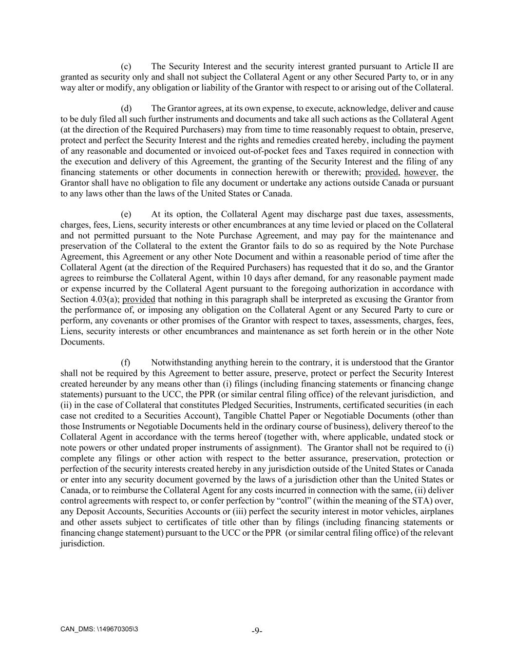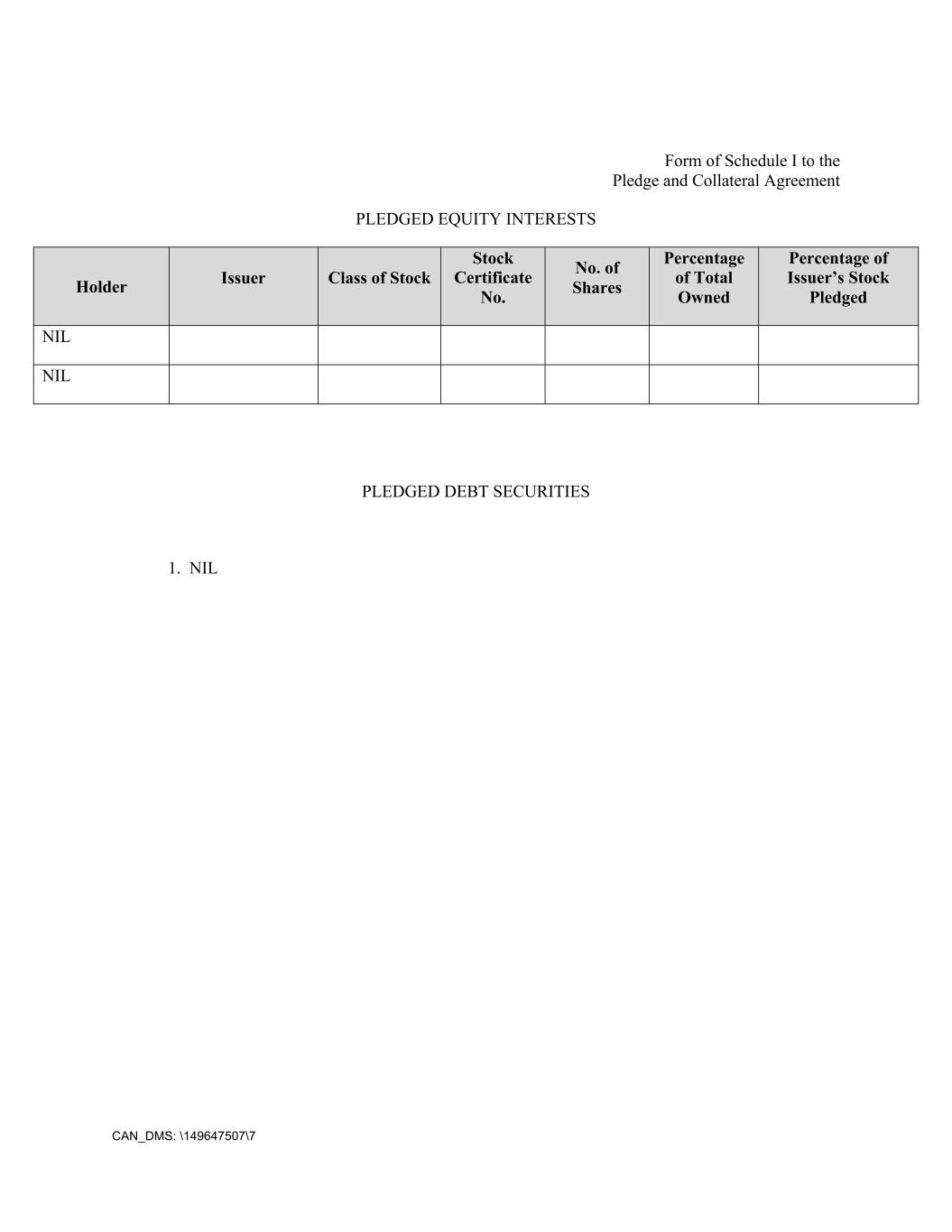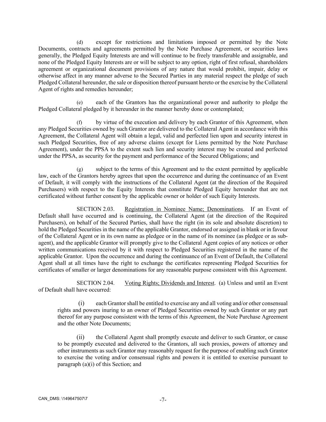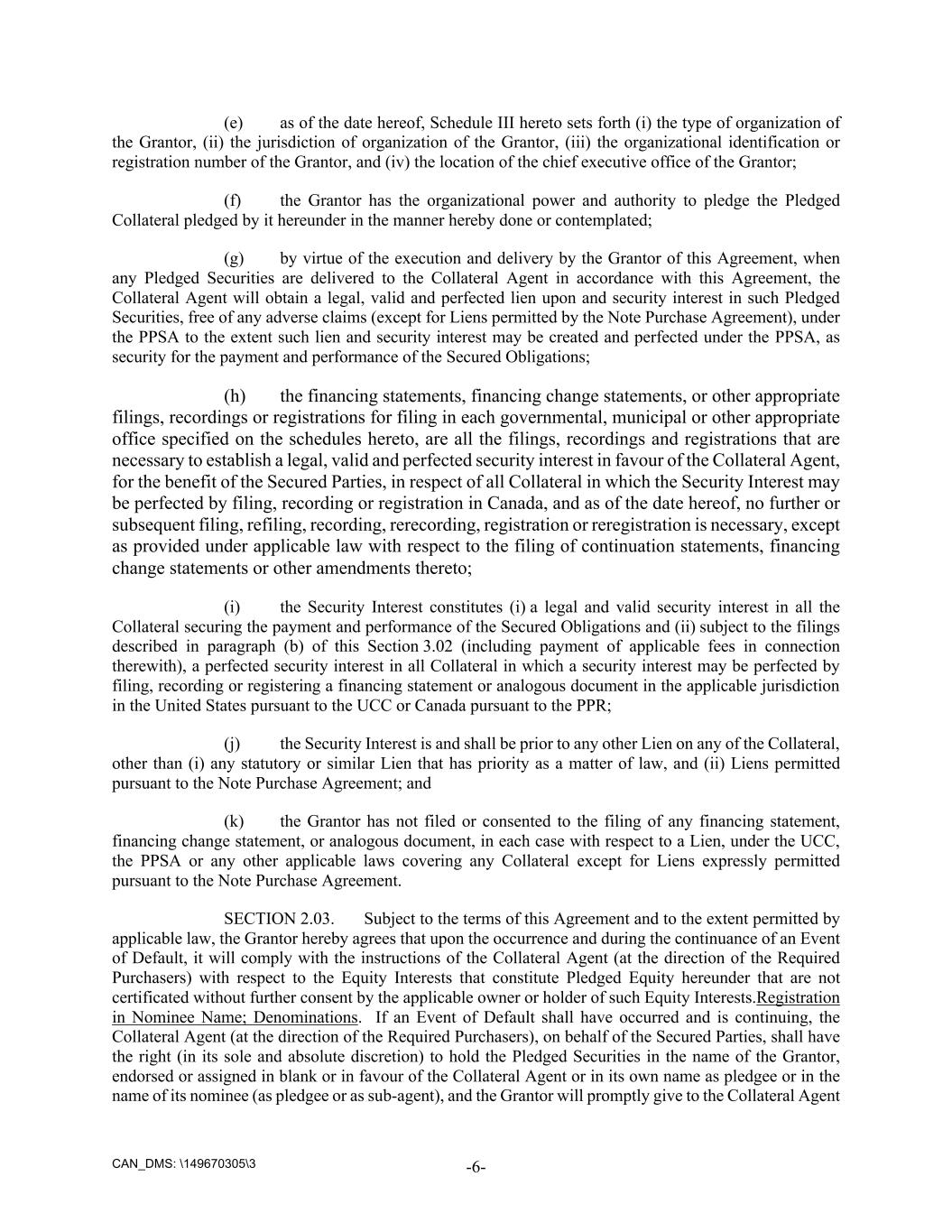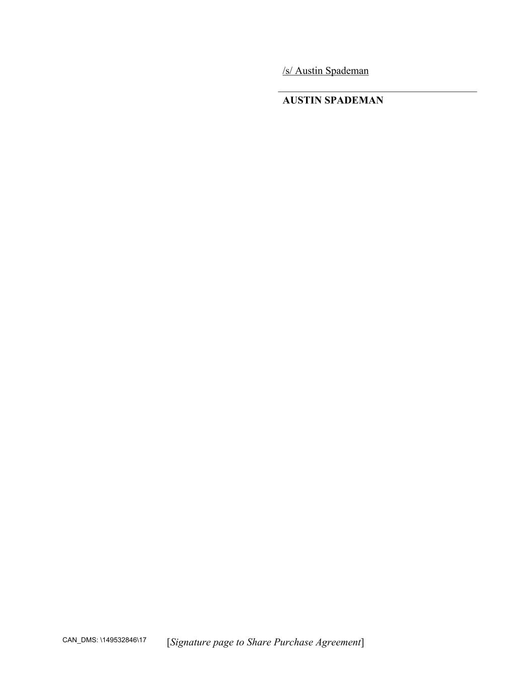 None of the Securities or the Preferred Share have been or will be registered under the Securities Act or may be offered or sold in the United States absent registration or an applicable exemption from registration requirements. The Company does not intend to file a shelf registration statement for the resale of the Securities or the Preferred Share. This filing does not constitute an offer to sell or the solicitation of an offer to buy any securities.