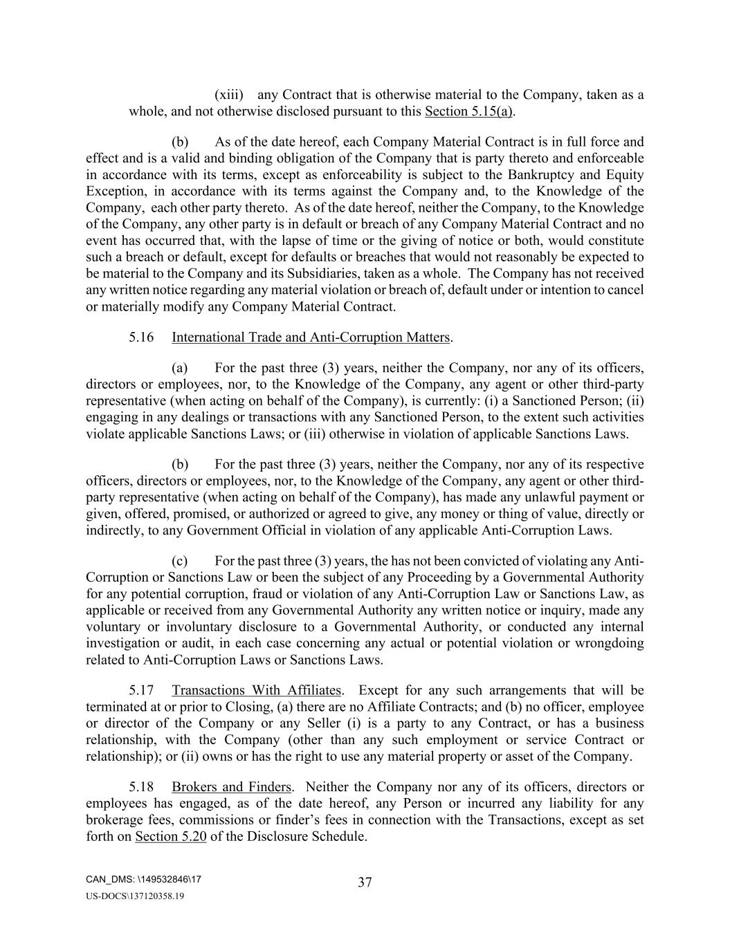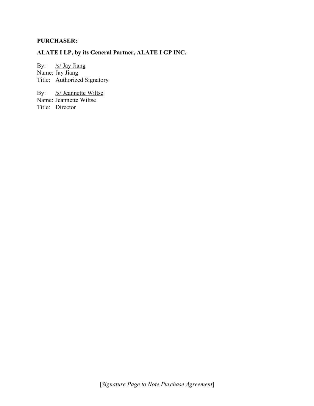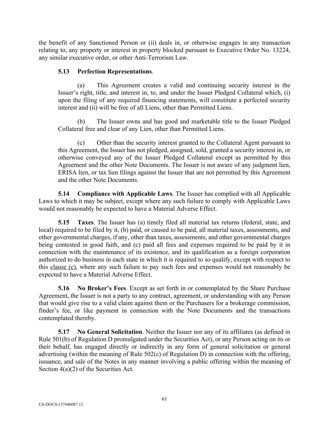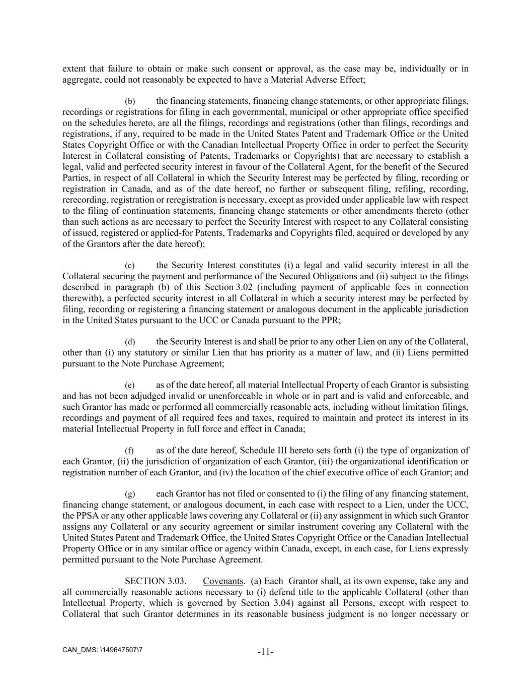 None of the Securities or the Preferred Share have been or will be registered under the Securities Act or may be offered or sold in the United States absent registration or an applicable exemption from registration requirements. The Company does not intend to file a shelf registration statement for the resale of the Securities or the Preferred Share. This filing does not constitute an offer to sell or the solicitation of an offer to buy any securities.