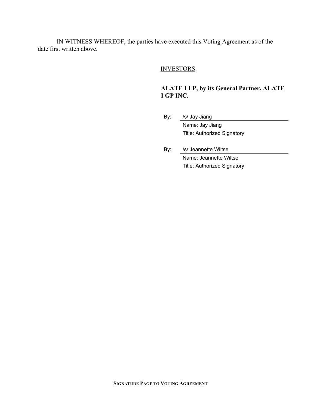 The foregoing description of the Voting Agreement is not complete and is qualified in its entirety by reference to the full text of the Voting Agreement, a copy of which is filed as Exhibit 10.8 to this Current Report and is incorporated by reference herein.