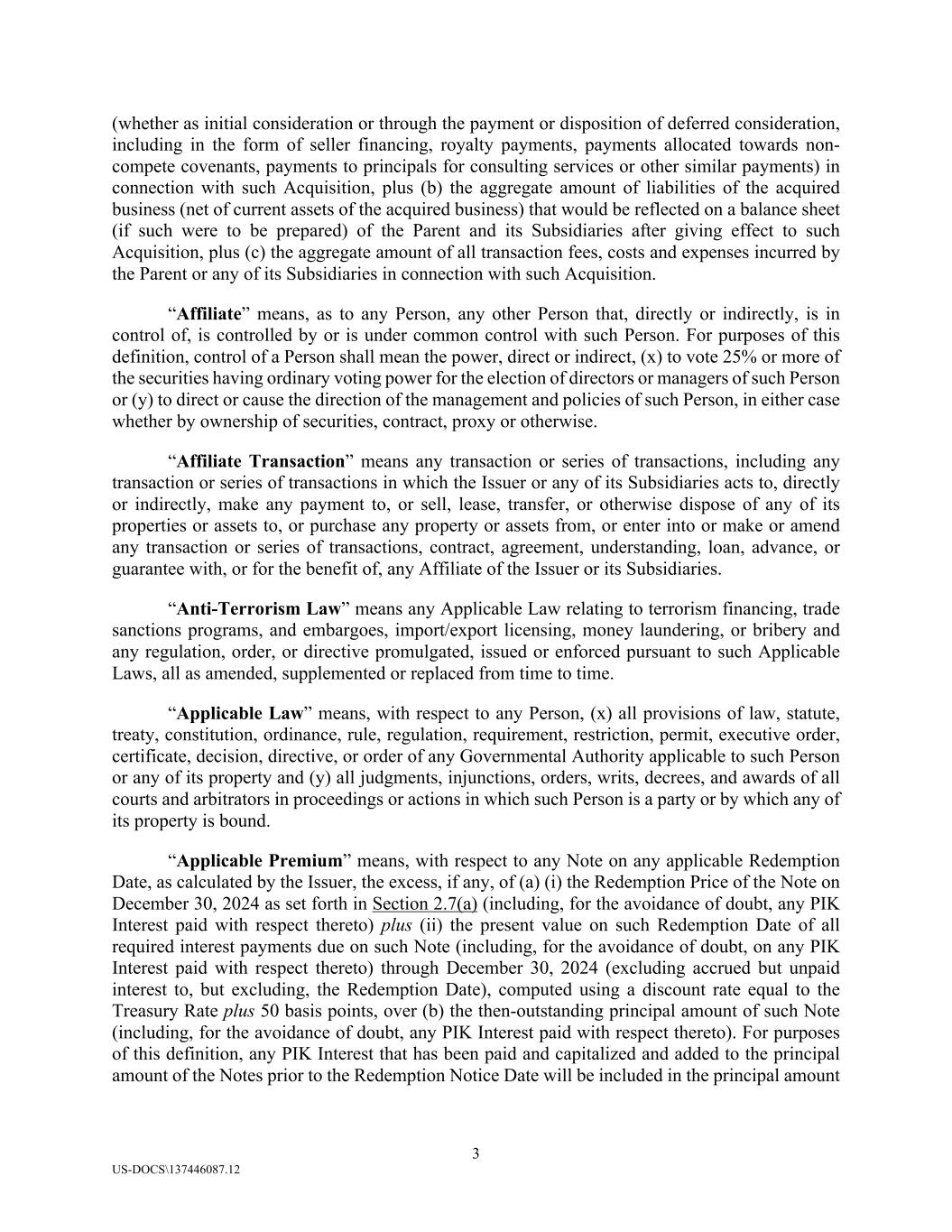 Interest on the Notes is payable semi-annually in cash or, at the Company’s option, in kind, in arrears on June 30 and December 30 of each year, commencing on June 30, 2023. The Notes will mature on December 30, 2027.