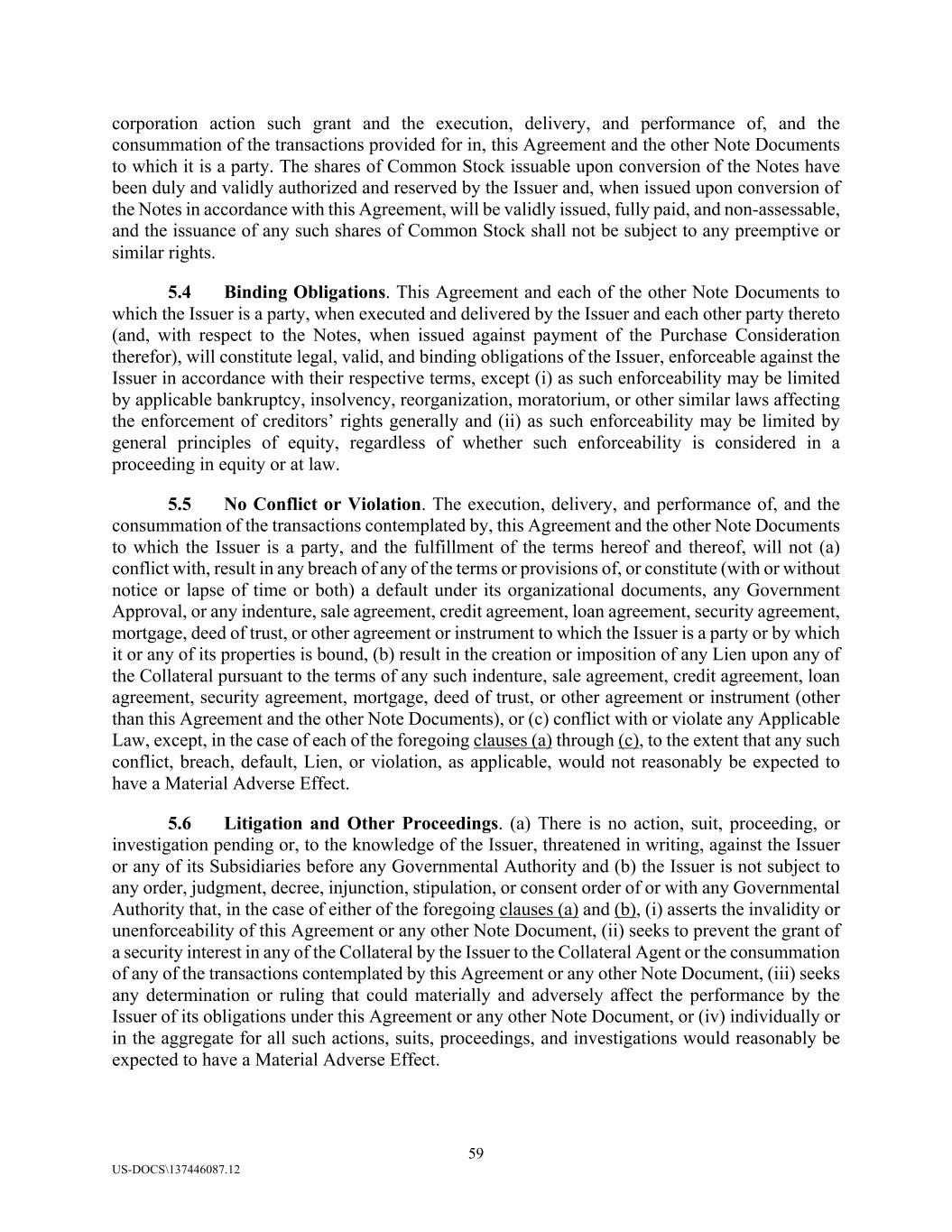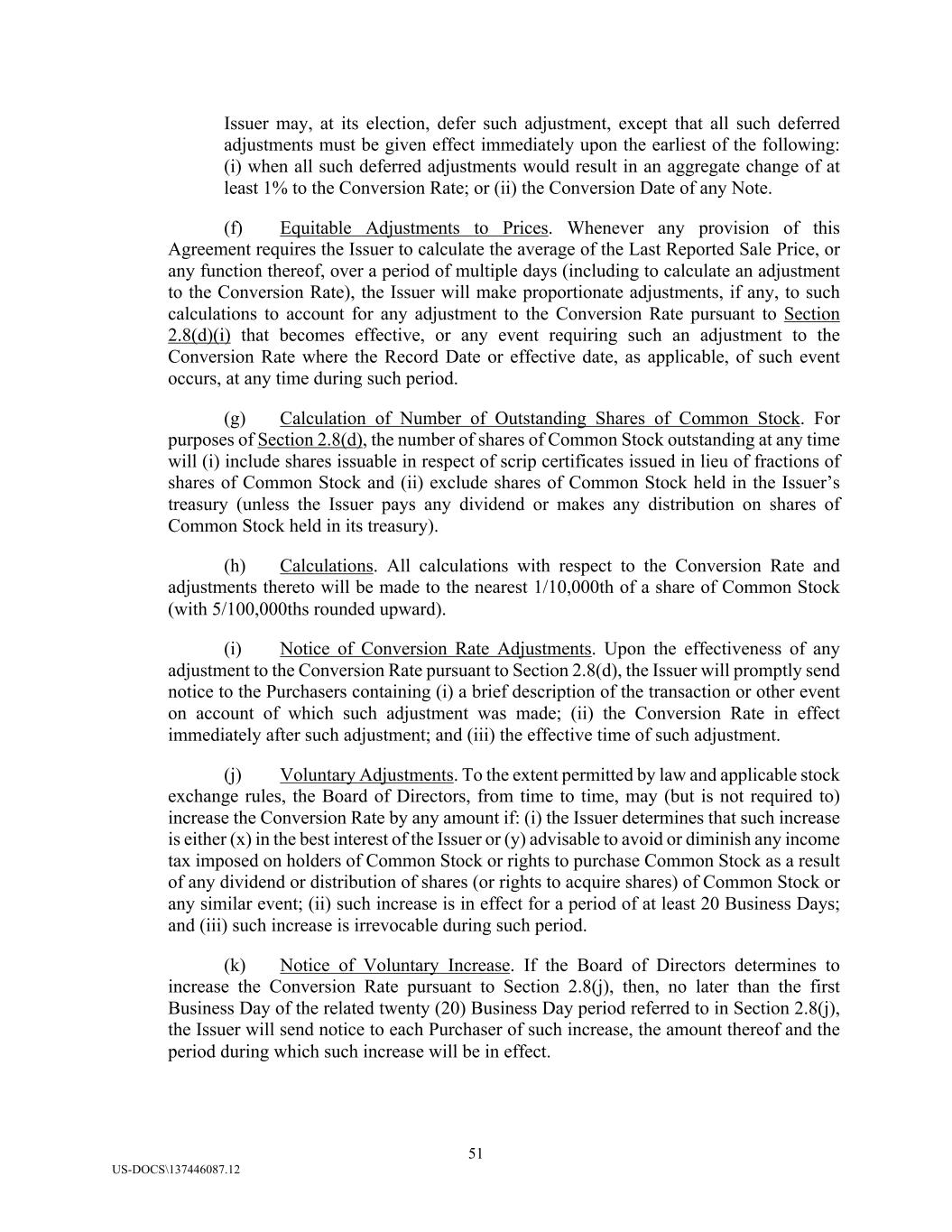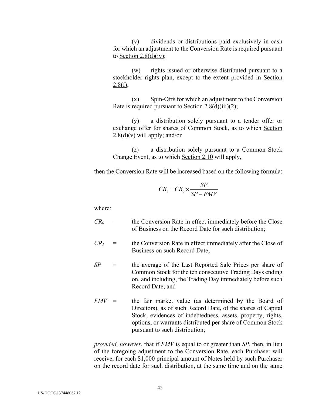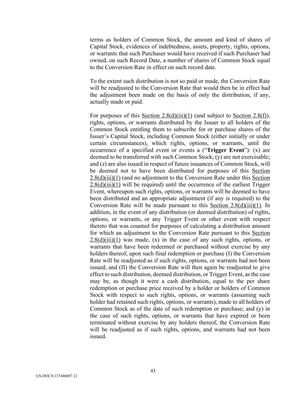 The Note Purchasers are entitled to convert the Notes into shares of the Company’s Class A common stock, par value $0.0001 per share (the “Class A Common Stock”), at any time at a conversion rate of 3,473.4283 shares of Class A Common Stock per $1,000 principal amount of the Notes, equivalent to a conversion price of approximately $0.2879 per share, subject to specified anti-dilution adjustments, including adjustments for the Company’s issuance of Class A Common Stock below the conversion price. In addition, following certain corporate events that occur prior to the maturity date, the Company will, in certain circumstances, increase the conversion rate for a holder who elects to convert its Notes in connection with such corporate event up to a maximum of 710.8696 shares per $1,000 principal amount of Notes. In certain circumstances, conversion will be limited unless the Company obtains stockholder approval to issue such shares.