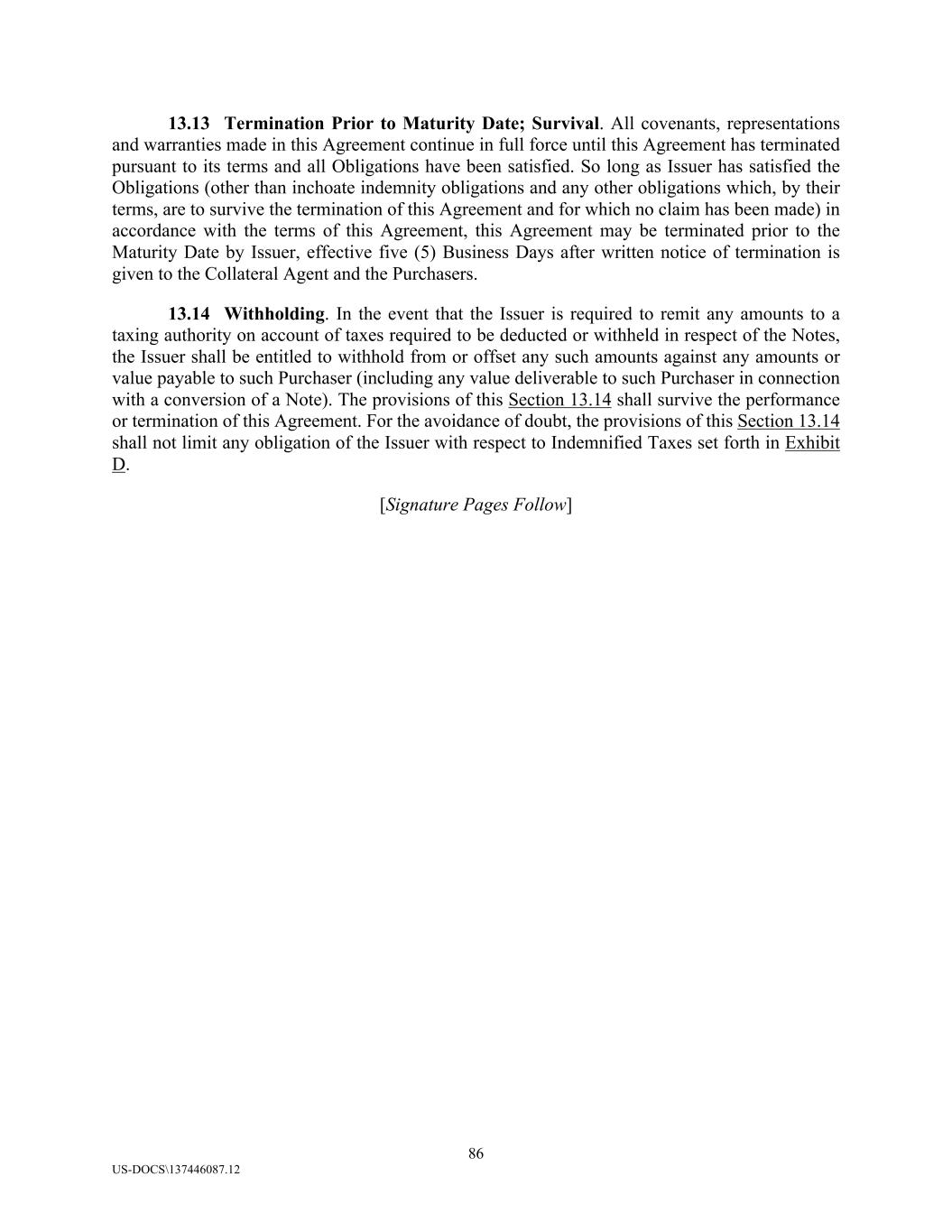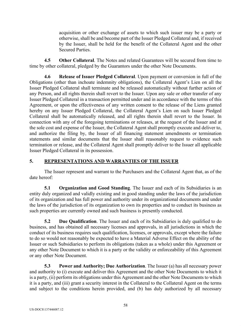 agreements, copies of which are filed as Exhibits 4.1, 10.1, 10.2, 10.3, 10.4, 10.5, 10.6 and 10.7, respectively, to this Current Report on Form 8-K (this “Current Report”) and are incorporated by reference herein.