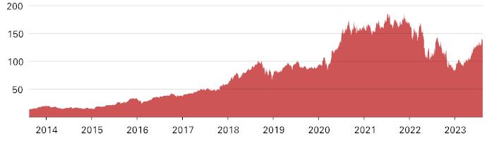 The following graph sets forth the historical performance of AAPL based on the daily historical closing values from August 15, 2013 through August 15, 2023. We obtained the closing values below from the Bloomberg Professional® service. We have not undertaken any independent review of, or made any due diligence inquiry with respect to, the information obtained from the Bloomberg Professional® service.![]() |
