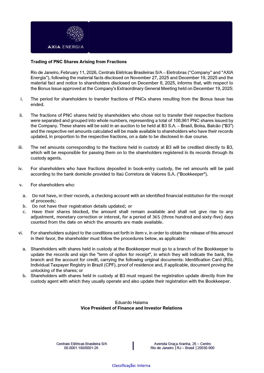 This document may contain estimates and projections that are not statements of past events but reflect our management’s beliefs and expectations and may constitute forward-looking statements under Section 27A of the Securities Act of 1933, as amended, and Section 21E of the Securities and Exchange Act of 1934, as amended. The words “believes”, “may”, “can”, “estimates”, “continues”, “anticipates”, “intends”, “expects”, and similar expressions are intended to identify estimates that necessarily involve known and unknown risks and uncertainties. Known risks and uncertainties include, but are not limited to: general economic, regulatory, political, and business conditions in Brazil and abroad; fluctuations in interest rates, inflation, and the value of the Brazilian Real; changes in consumer electricity usage patterns and volumes; competitive conditions; our level of indebtedness; the possibility of receiving payments related to our receivables; changes in rainfall and water levels in reservoirs used to operate our hydroelectric plants; our financing and capital investment plans; existing and future government regulations; and other risks described in our annual report and other documents filed with the CVM and SEC. Estimates and projections refer only to the date they were expressed, and we do not assume any obligation to update any of these estimates or projections due to new information or future events. Future results of the Company’s operations and initiatives may differ from current expectations, and investors should not rely solely on the information contained herein. This material contains calculations that may not reflect precise results due to rounding.