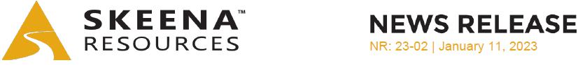 Vancouver, BC (January 11, 2023) Skeena Resources Limited (TSX: SKE, NYSE: SKE) (“Skeena” or the “Company”) announces that, effective immediately, Skeena’s Chief Operating Officer (“COO”), Shane Williams, has left the Company to pursue other endeavours. Randy Reichert, President & CEO, will temporarily assume the duties of COO in addition to his normal role.