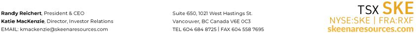 On behalf of the Board of Directors of Skeena Resources Limited,