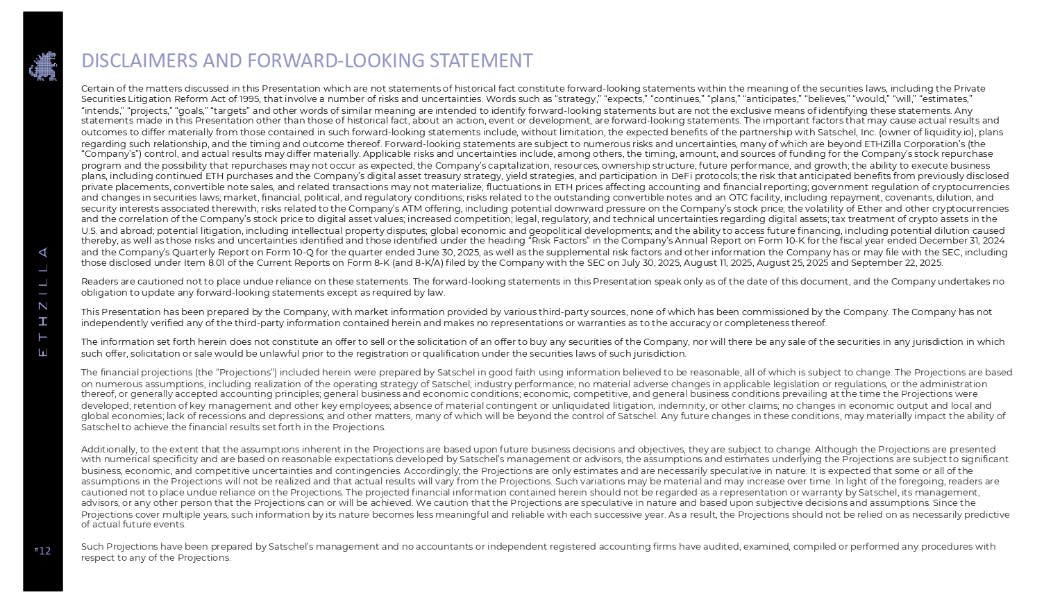 The Company also published a presentation relating to the transactions discussed above on its website https://ethzilla.com, under “Investors – Presentations” (which information from such website is not incorporated by reference into this Current Report on Form 8-K), a copy of which presentation is furnished as Exhibit 99.2 to this Current Report on Form 8-K and is incorporated into this Item 7.01 by reference.