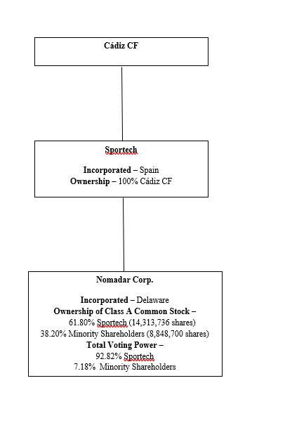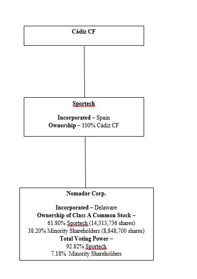 In addition to our Class A common stock, we have 5,000,000 shares of Class B common stock issued and outstanding. Each share of Class B common stock is entitled to twenty (20) votes per share on all matters put toward a vote of our common stockholders. All shares of Class B common stock are held by Sport City Cádiz S.L., a company incorporated under the laws of Spain (“Sportech”). Assuming Sportech sells no shares of Class A common stock being registered hereunder, Sportech will hold approximately 92.82% of the voting power of the Company. Assuming the sale of all shares of Class A common stock that are held by Sportech and being registered hereunder, Sportech will continue to hold 5,000,000 shares of Class B common stock, representing voting power equal to 100,000,000 shares of Class A common stock, or approximately 81.19% of our voting power. As a result of Sportech’s ownership of the Class B common stock, if Sportech sells all of its shares of Class A common stock being registered hereunder, Sportech will continue to hold a majority of the voting power of the Company’s common stock, and the holders of our Class A common stock will hold a minority voting interest.