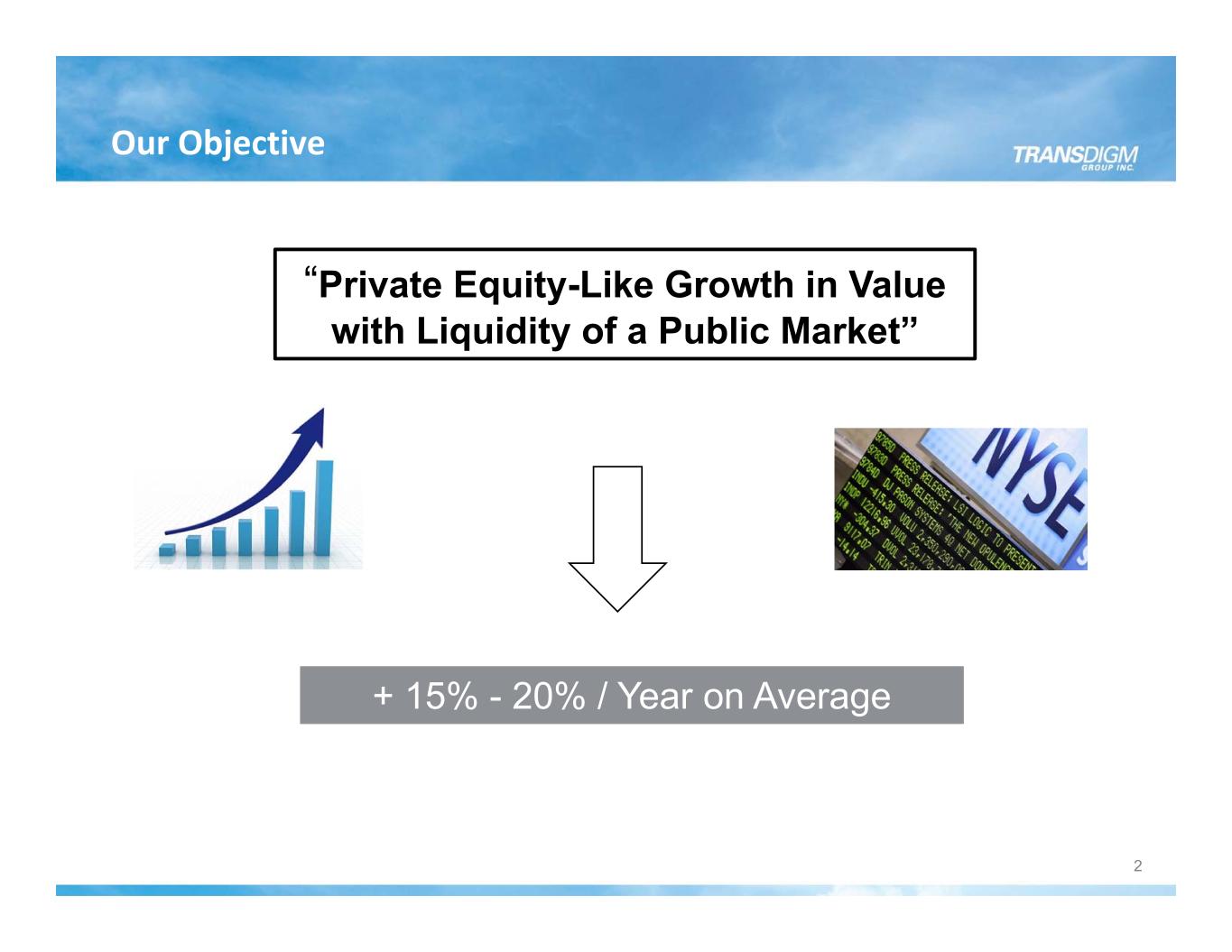 “Private Equity-Like Growth in Value with Liquidity of a Public Market” + 15% - 20% / Year on Average Our Objective 2